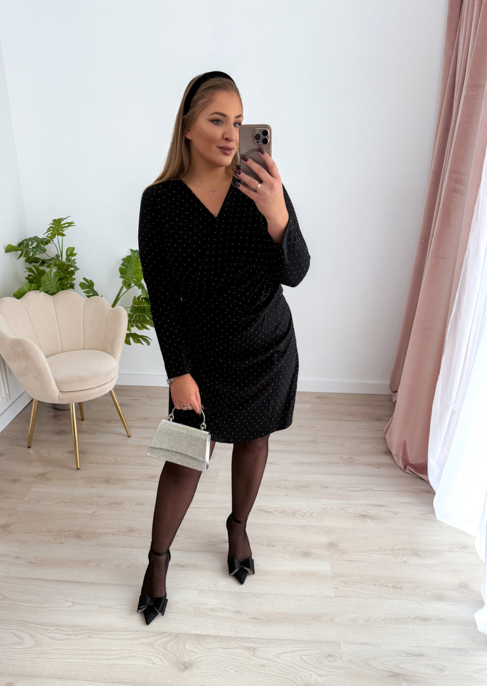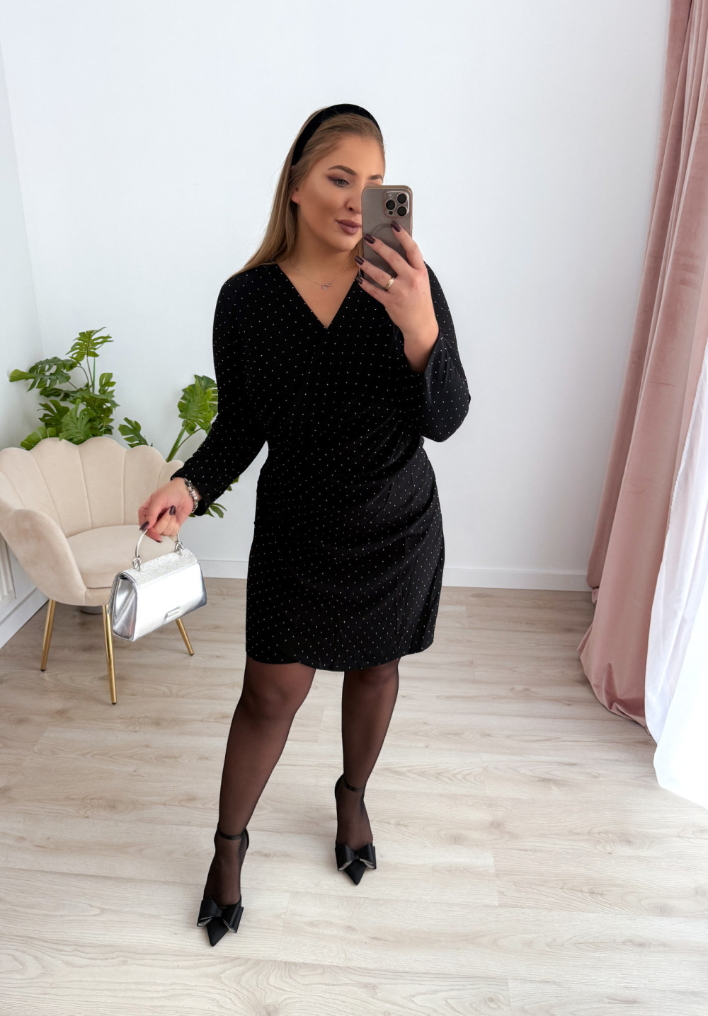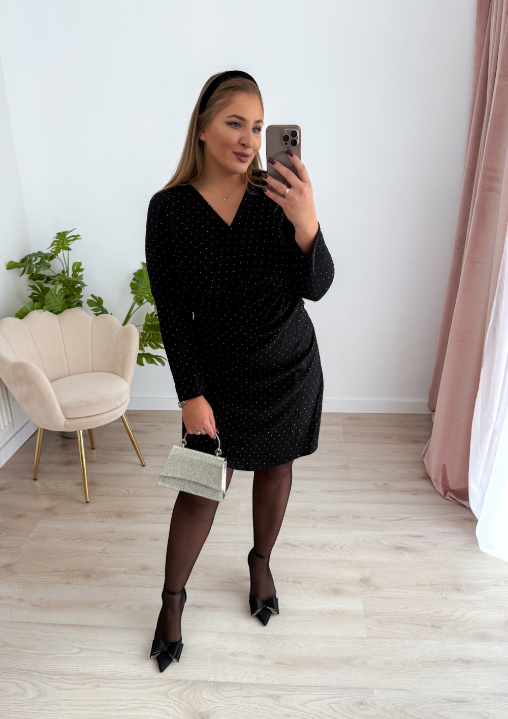 Sukienka z drapowaniem ozdobiona diamencikami Carmen - czarna