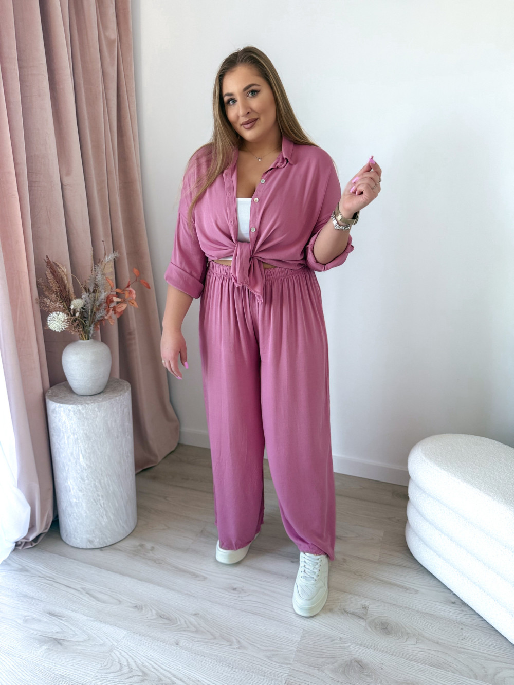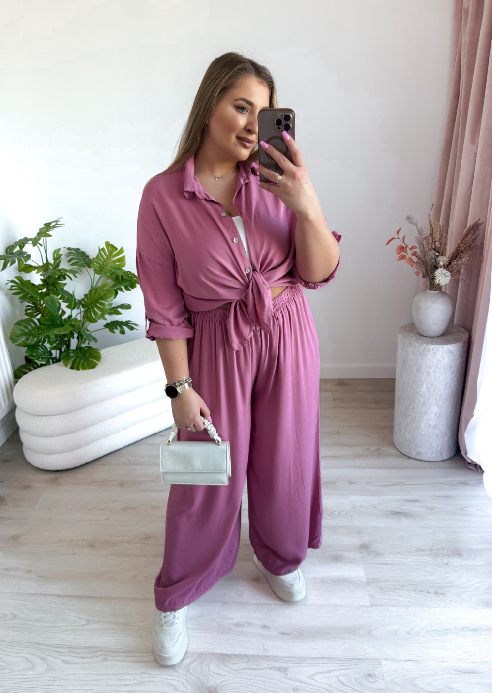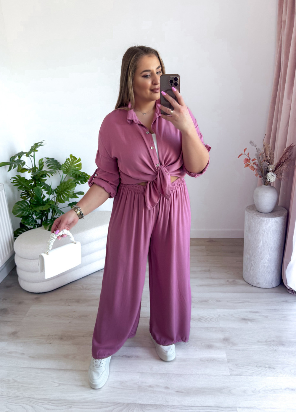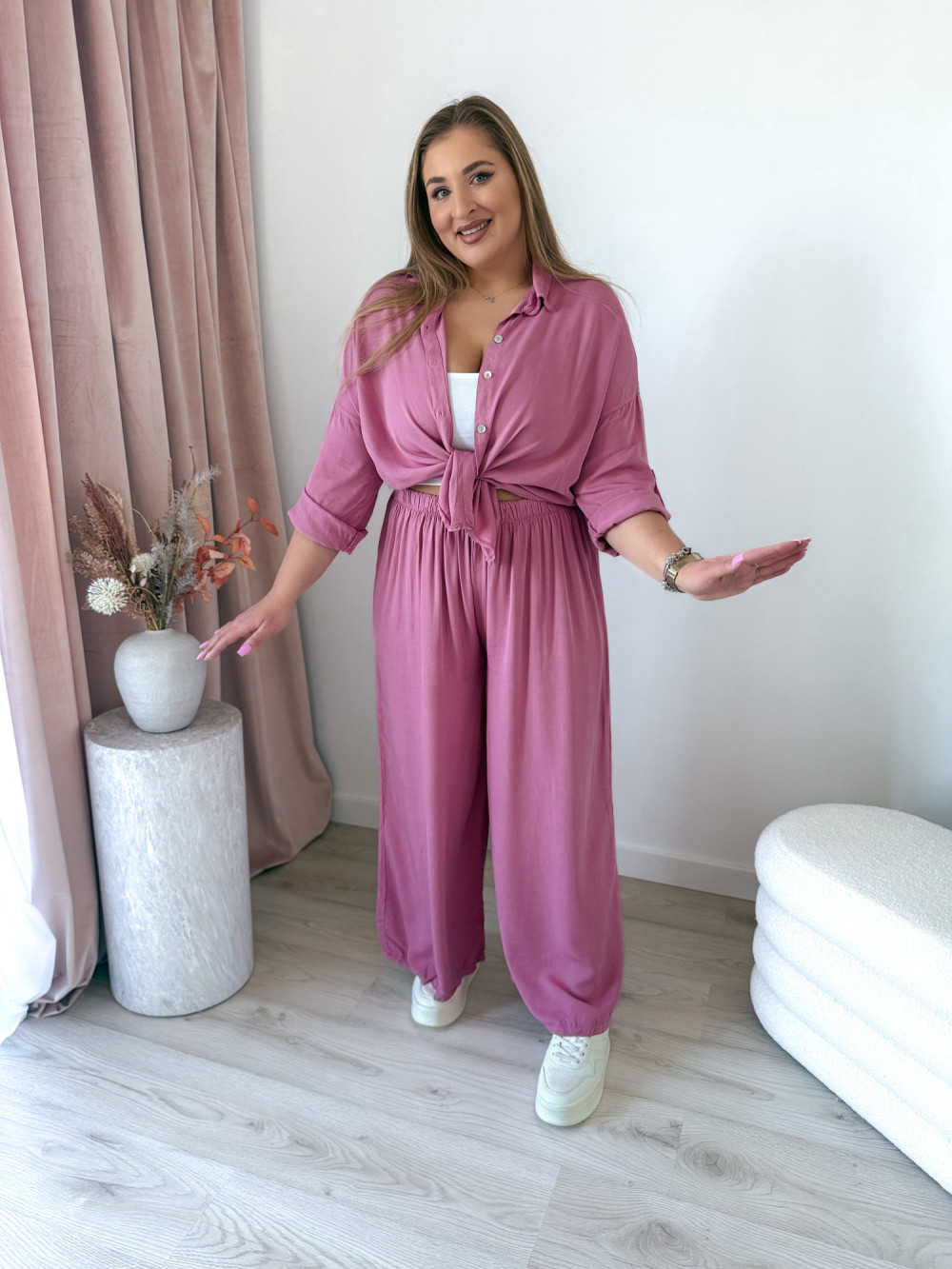 PREORDER Komplet wiskoza-lyocel koszula+spodnie Shannon - jagoda (wysyłka za ok. 5-7 dni)