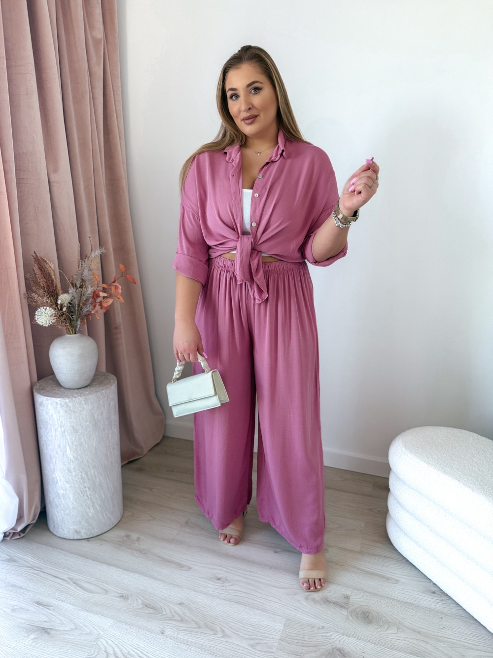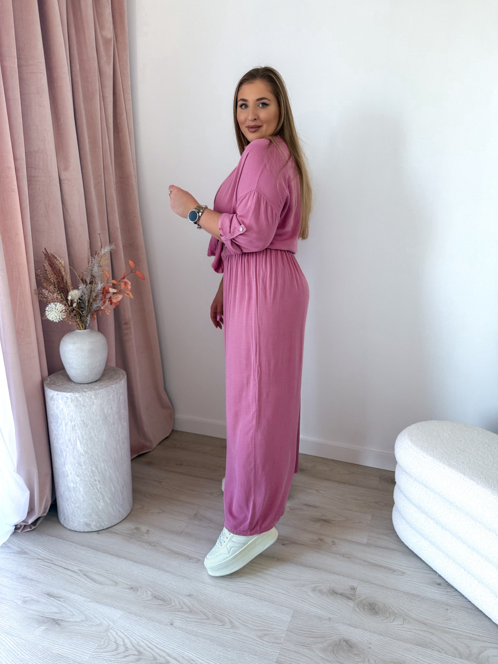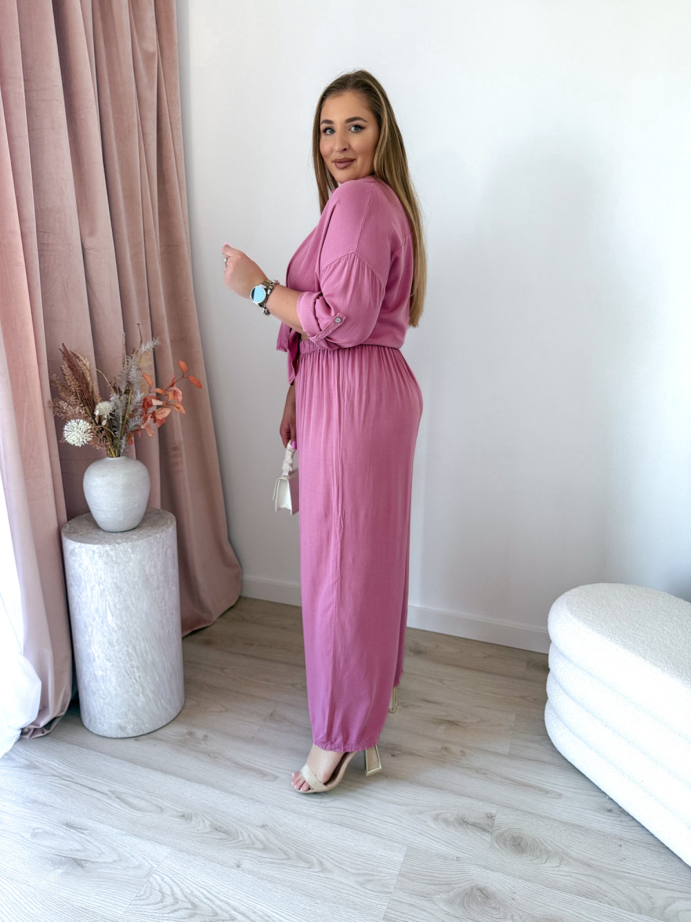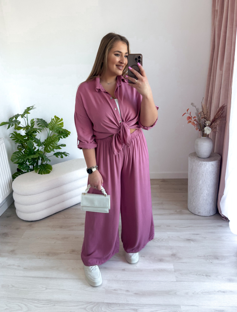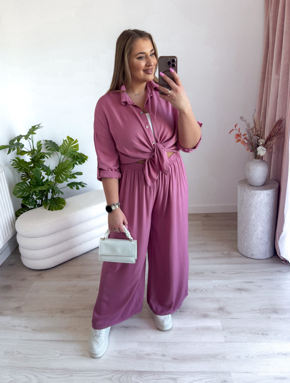 PREORDER Komplet wiskoza-lyocel koszula+spodnie Shannon - jagoda (wysyłka za ok. 5-7 dni)