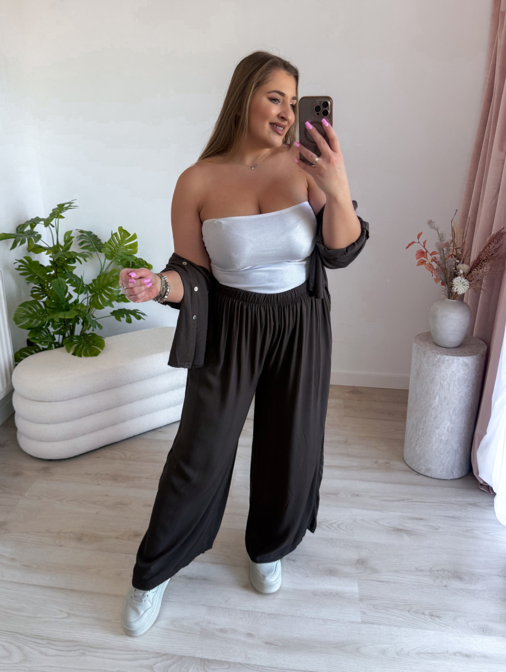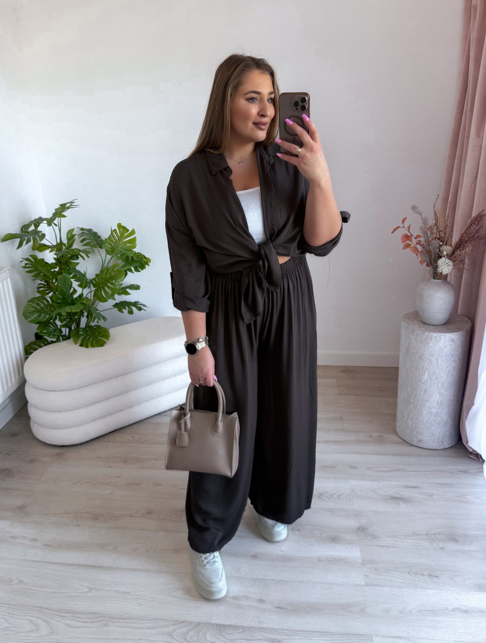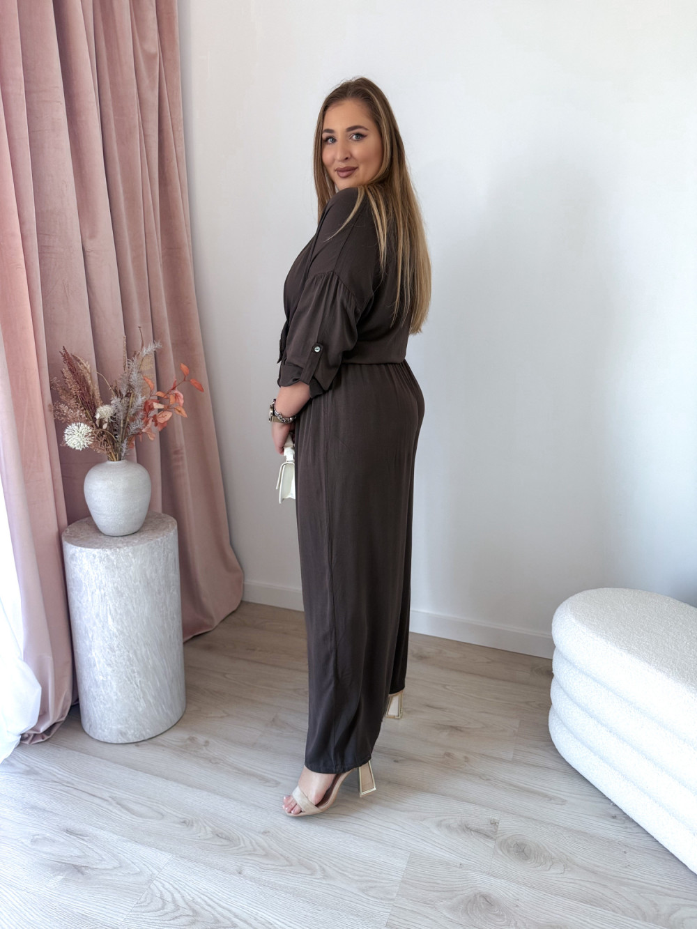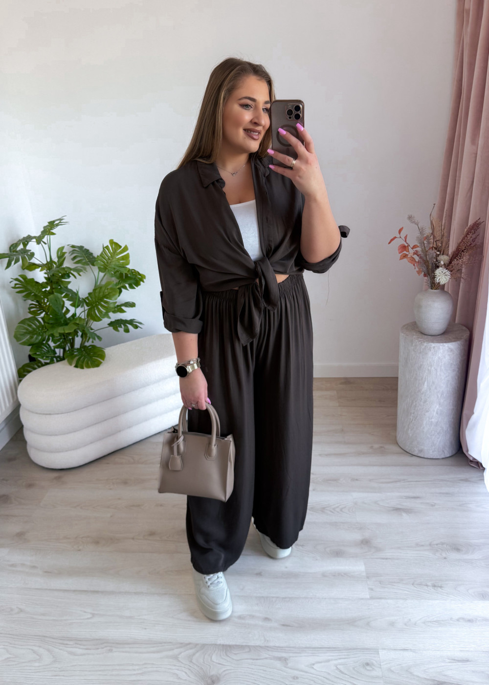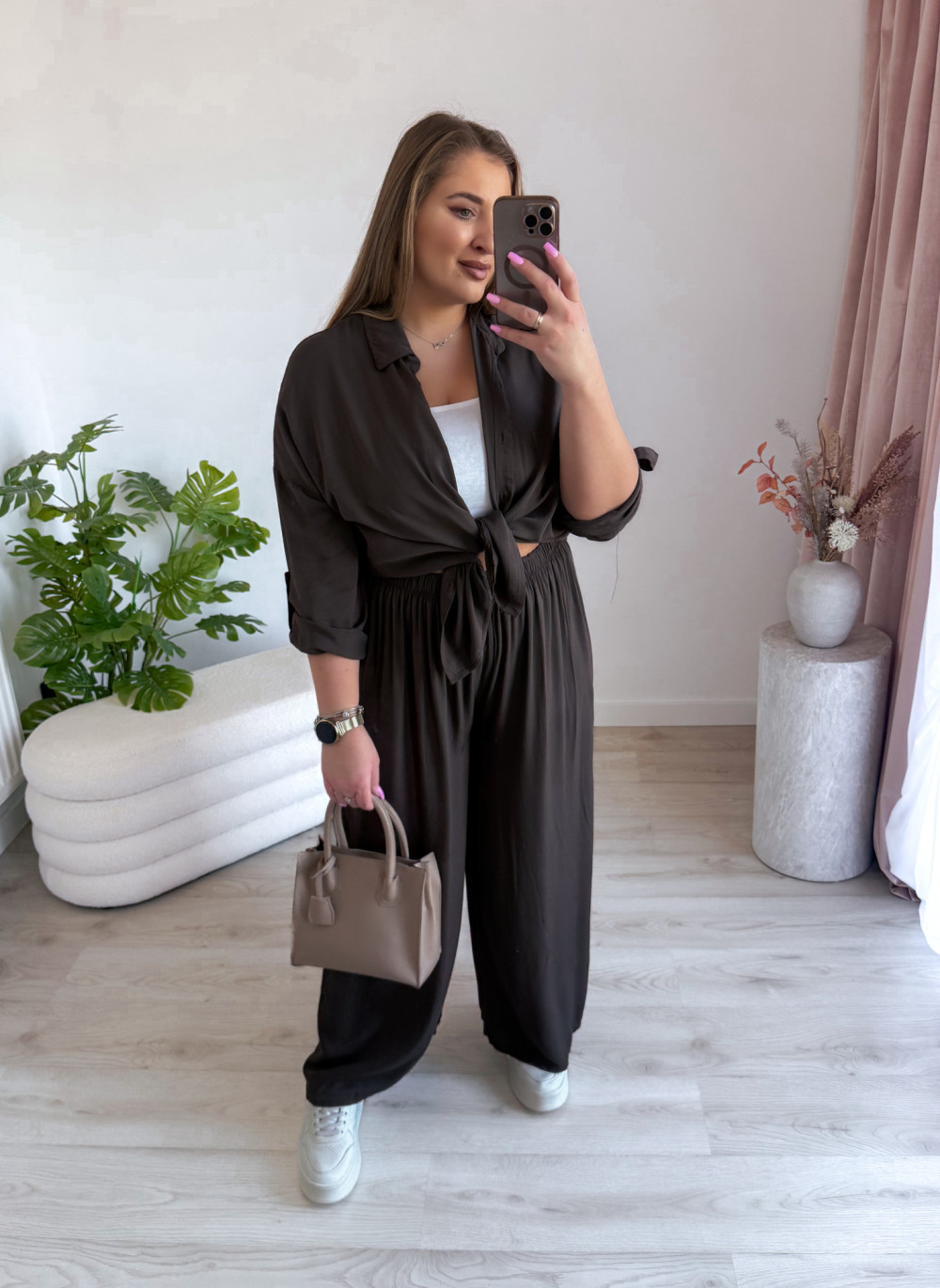 PREORDER Komplet wiskoza-lyocel koszula+spodnie Shannon - czekolada (wysyłka za ok. 5-7 dni)