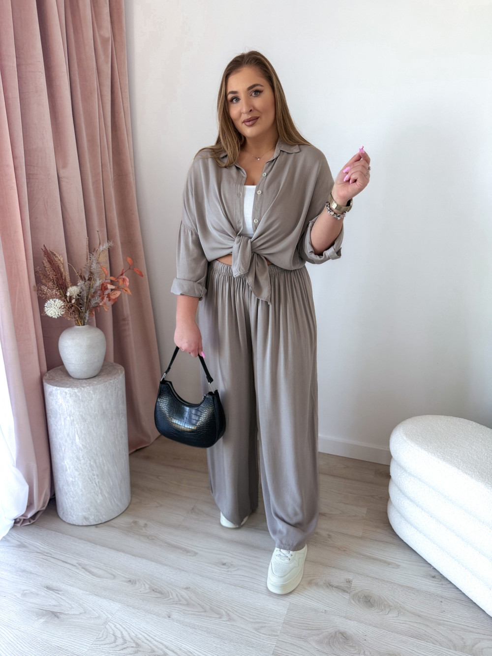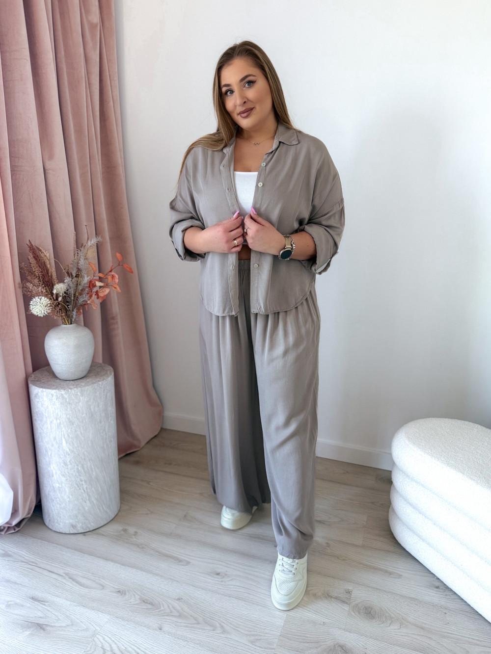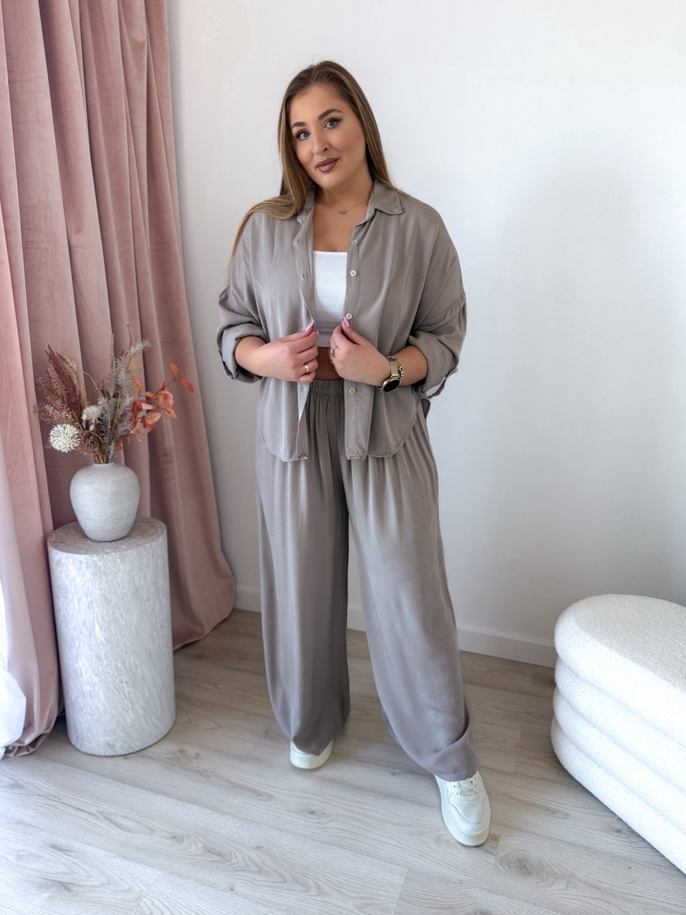 Stylowy komplet koszula + spodnie – wygoda i elegancja w jednym! Ten zestaw to idealne połączenie luzu i szyku, które sprawdzi się zarówno na co dzień, jak i na wyjątkowe okazje.