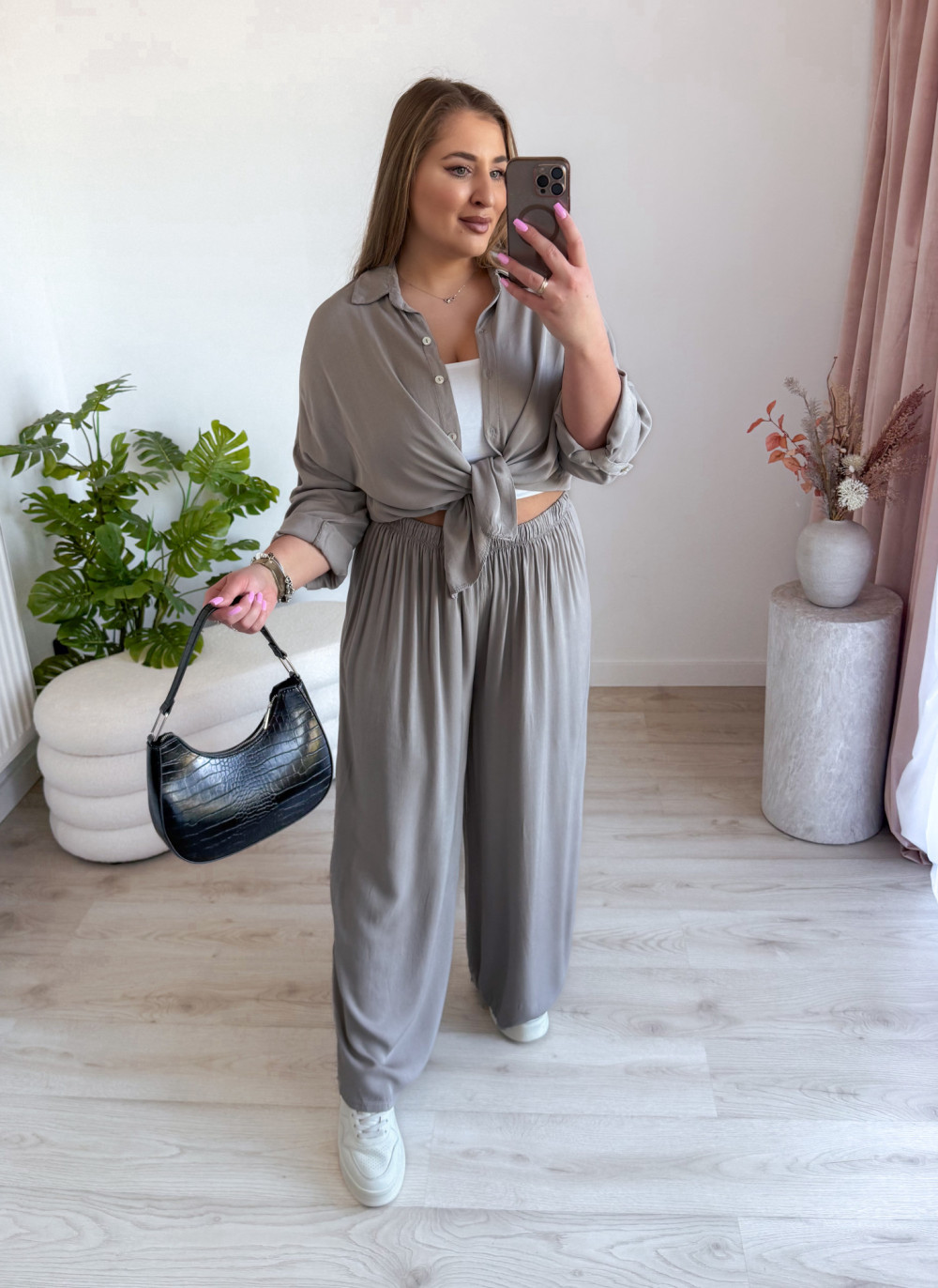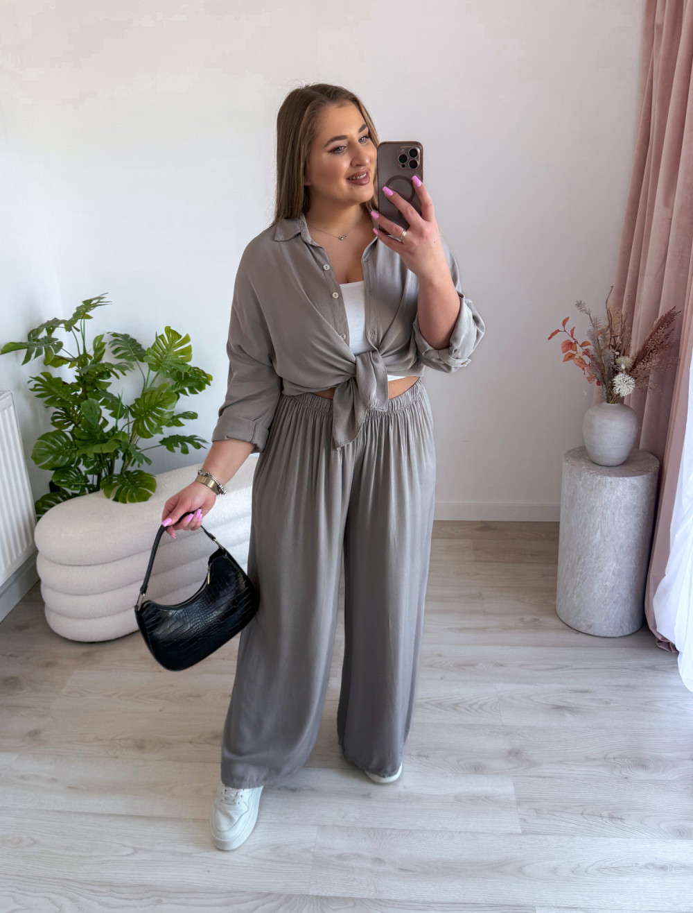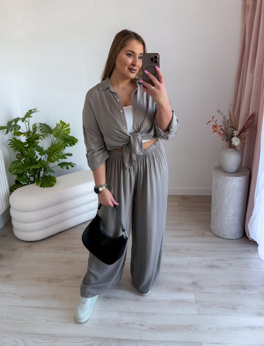 Stylowy komplet koszula + spodnie – wygoda i elegancja w jednym! Ten zestaw to idealne połączenie luzu i szyku, które sprawdzi się zarówno na co dzień, jak i na wyjątkowe okazje.