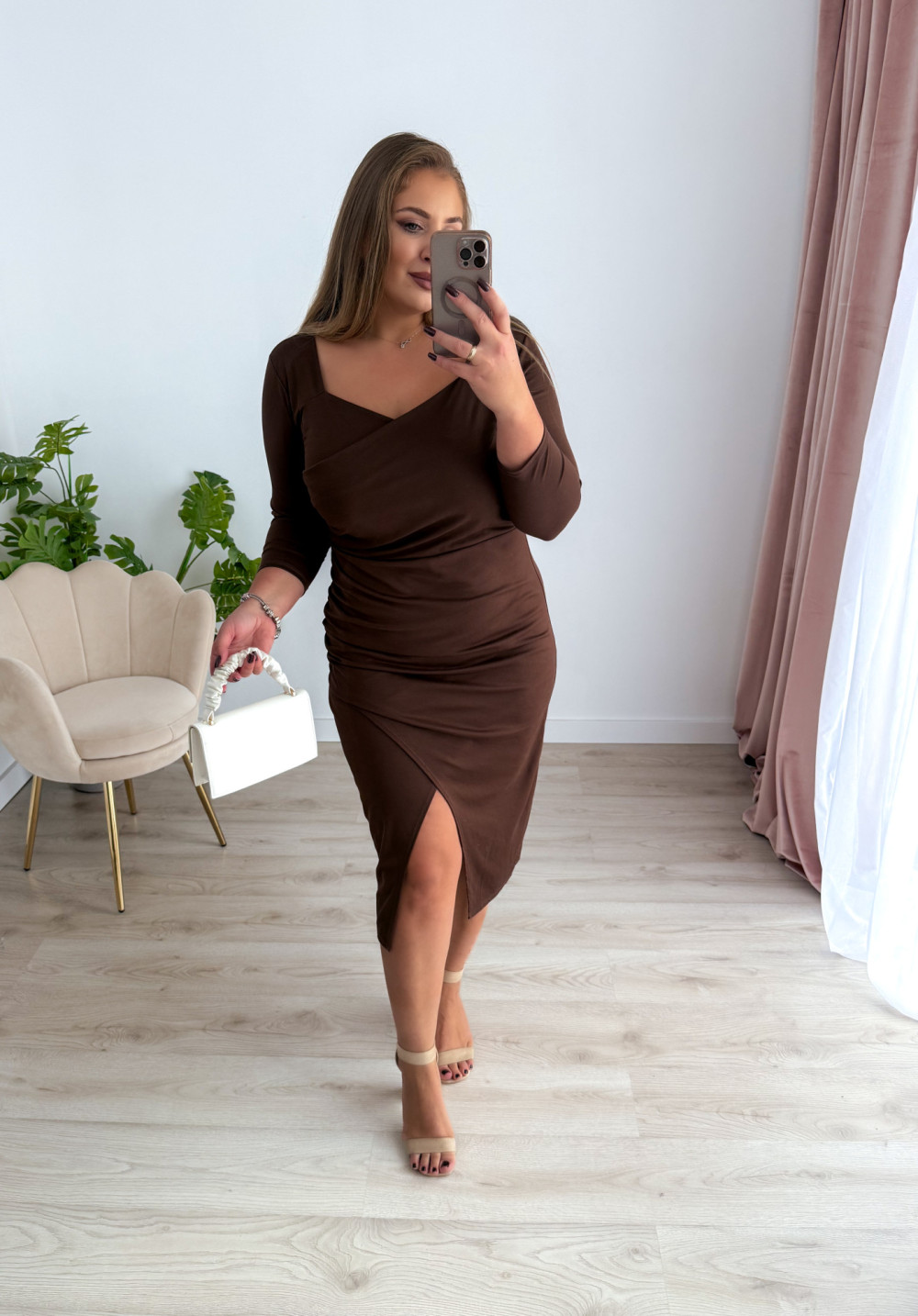 Sukienka midi z zakładanym dekoltem Francesca - czekolada