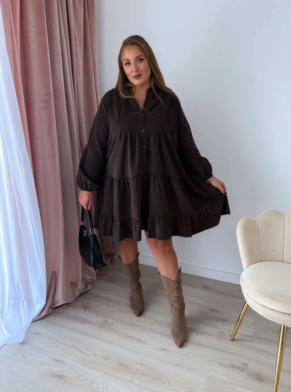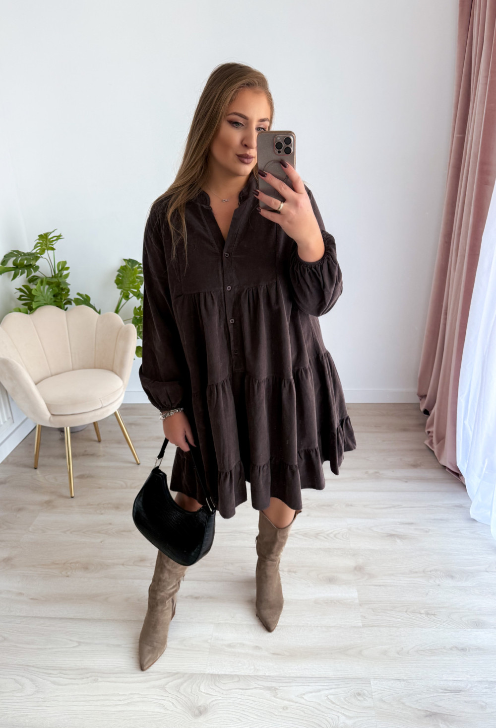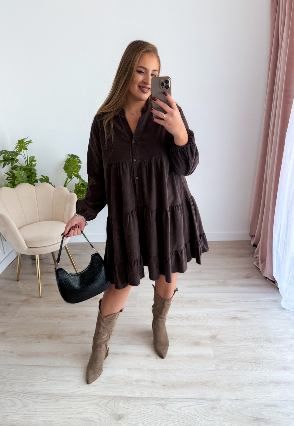 PREORDER Sukienka luźna sztruksowa Valley - czekolada (dostawa 7-8.10.)