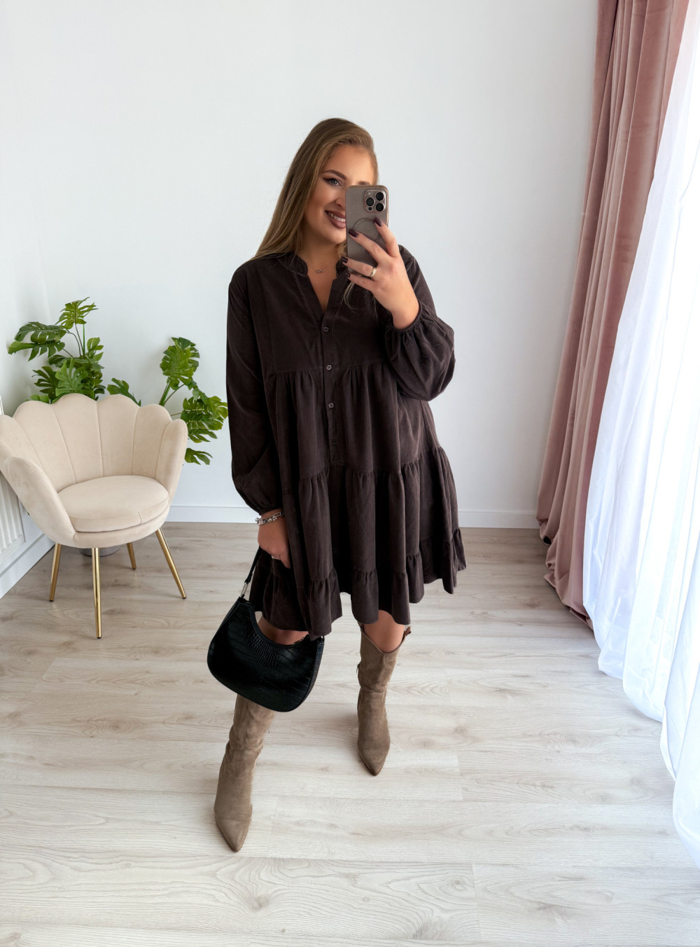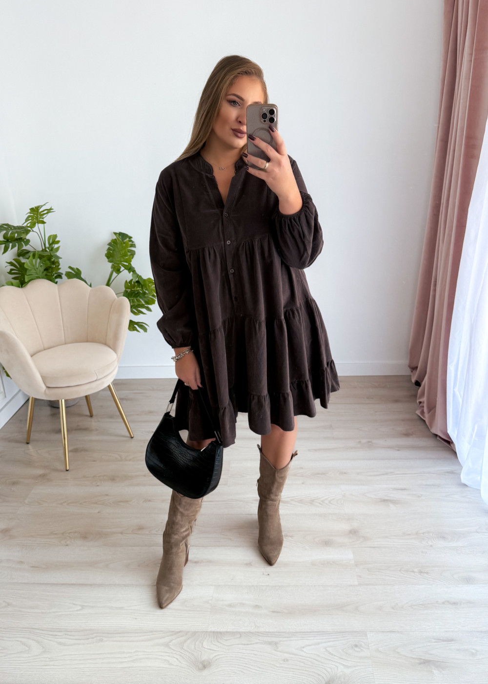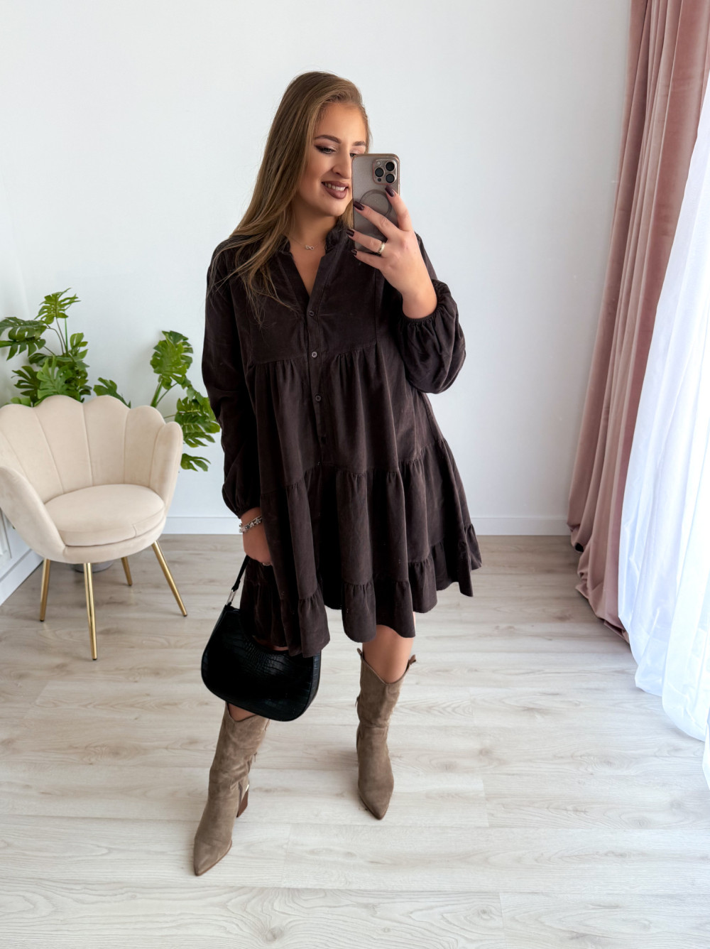 PREORDER Sukienka luźna sztruksowa Valley - czekolada (dostawa 7-8.10.)