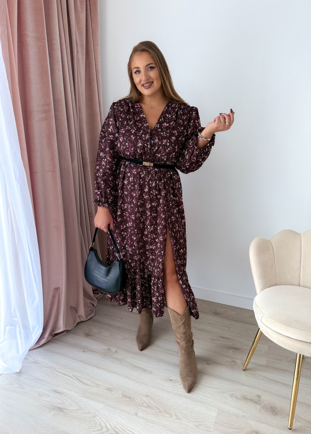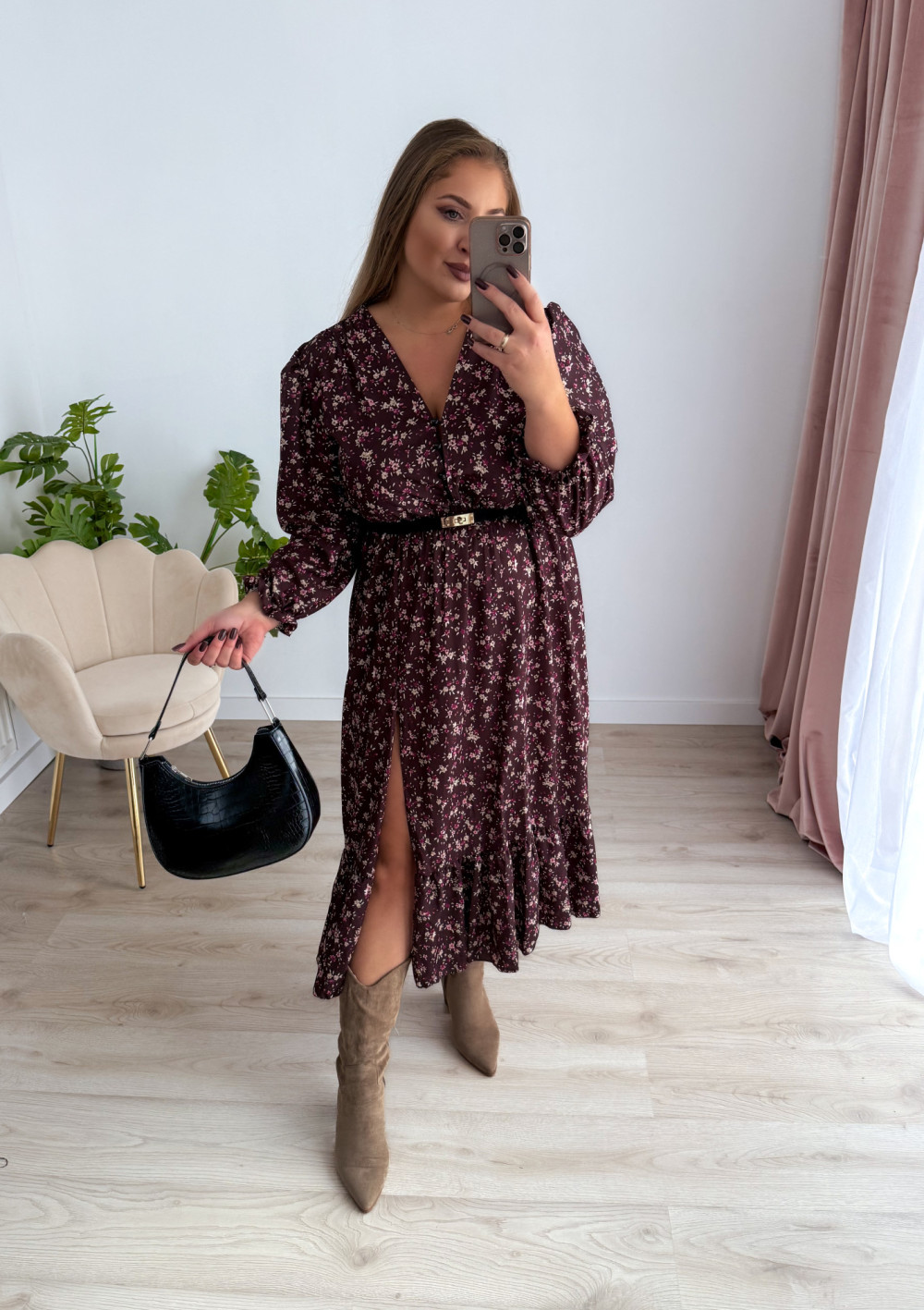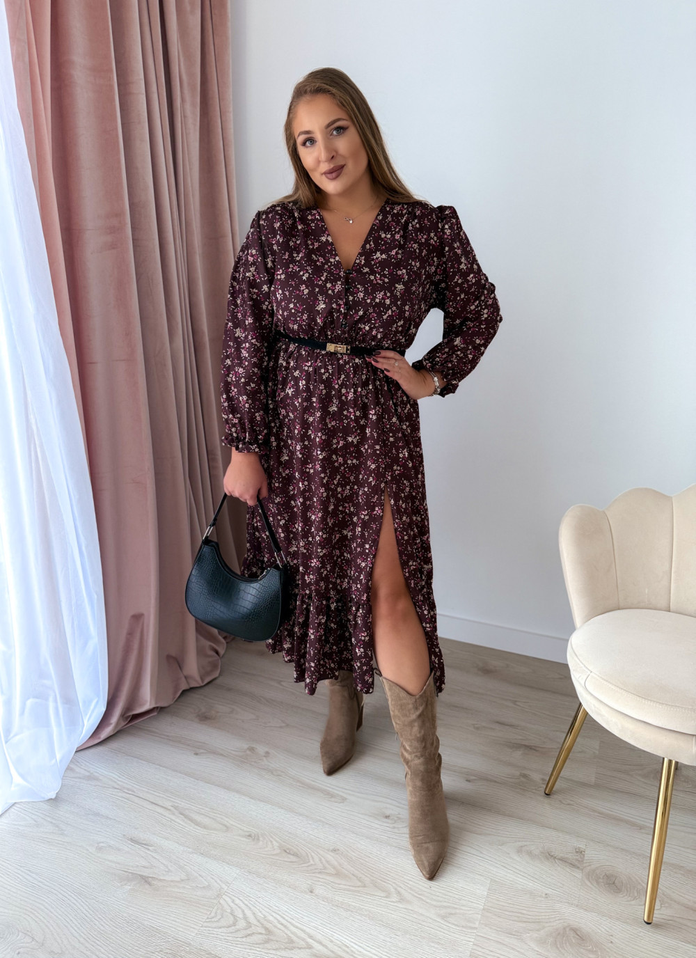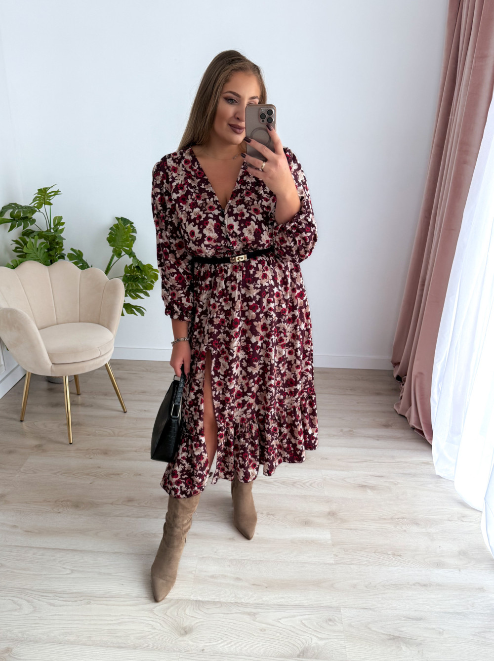 Sukienka midi plus size czekoladowa w kwiatki Missouri