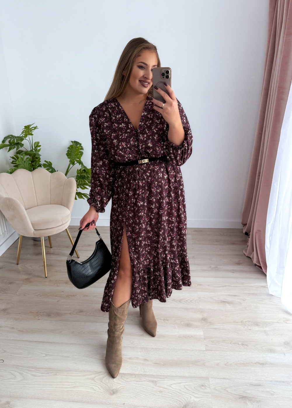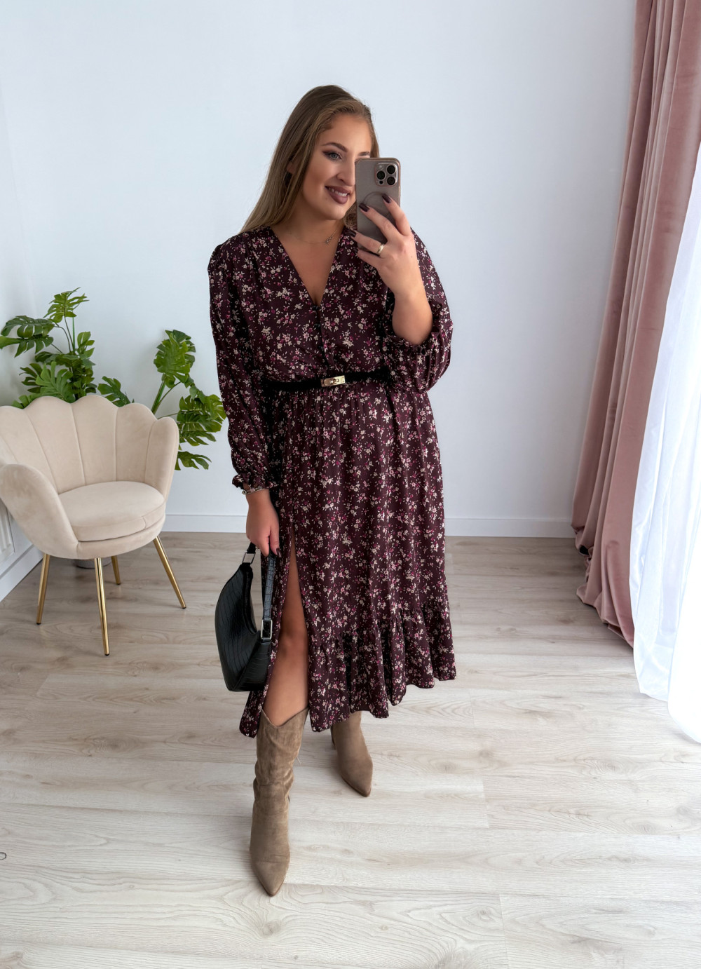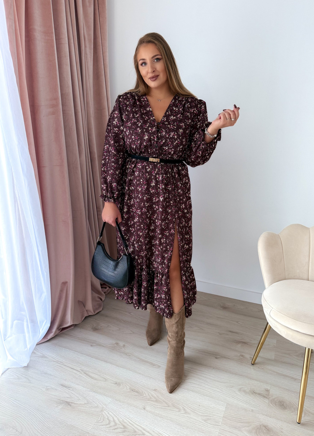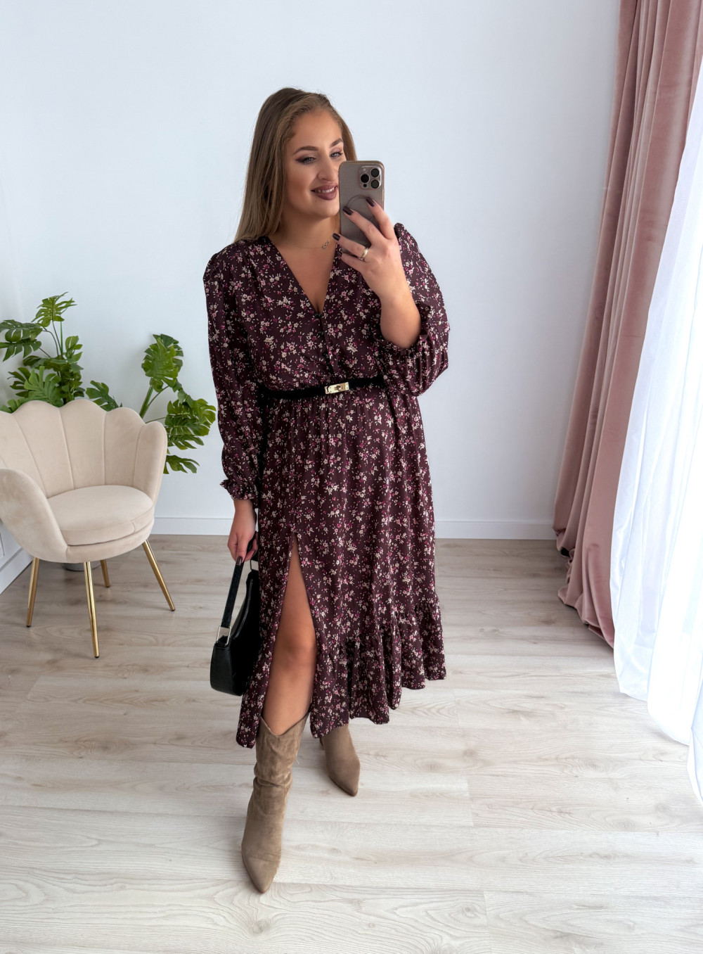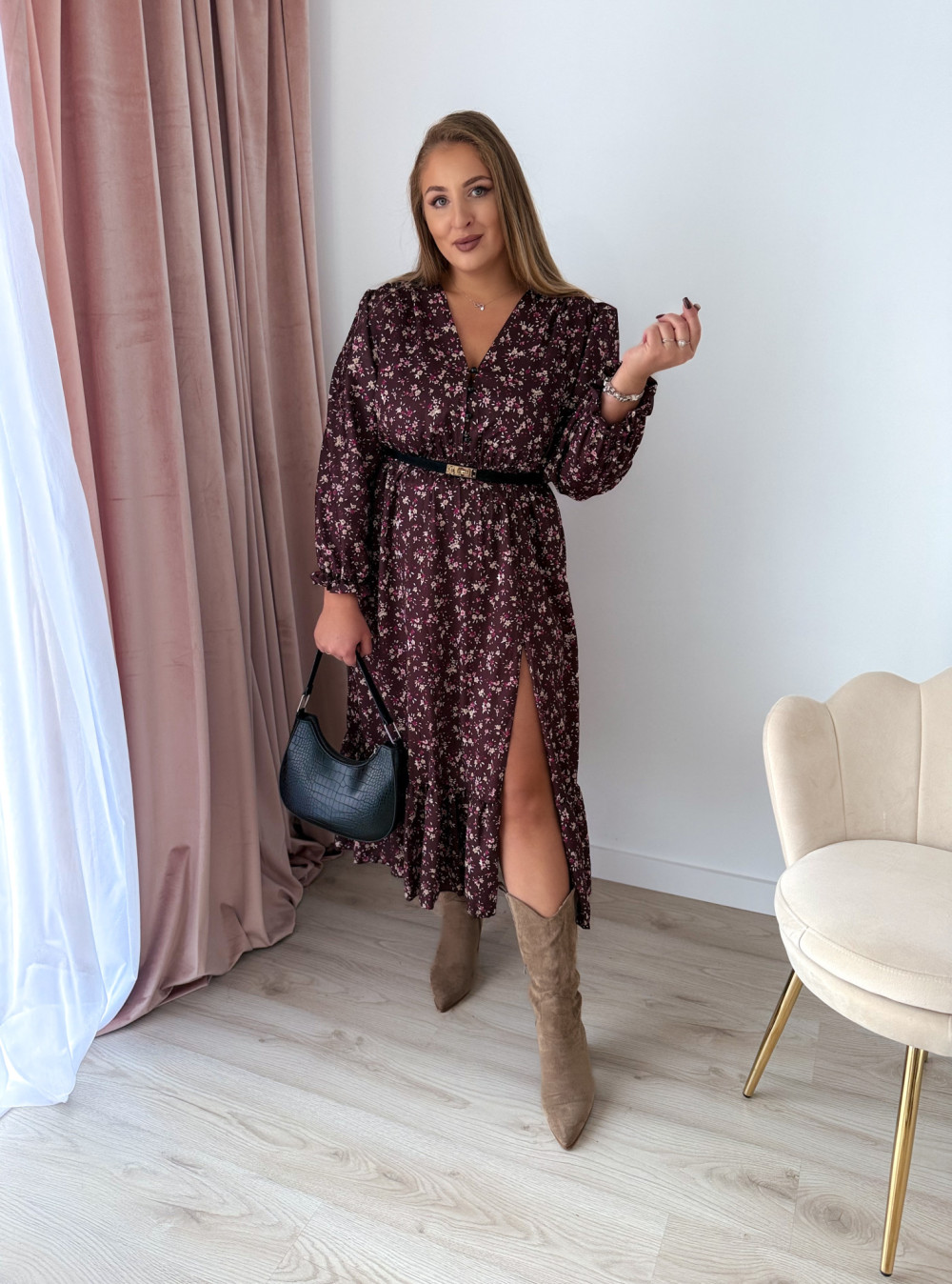 Sukienka midi plus size czekoladowa w kwiatki Missouri