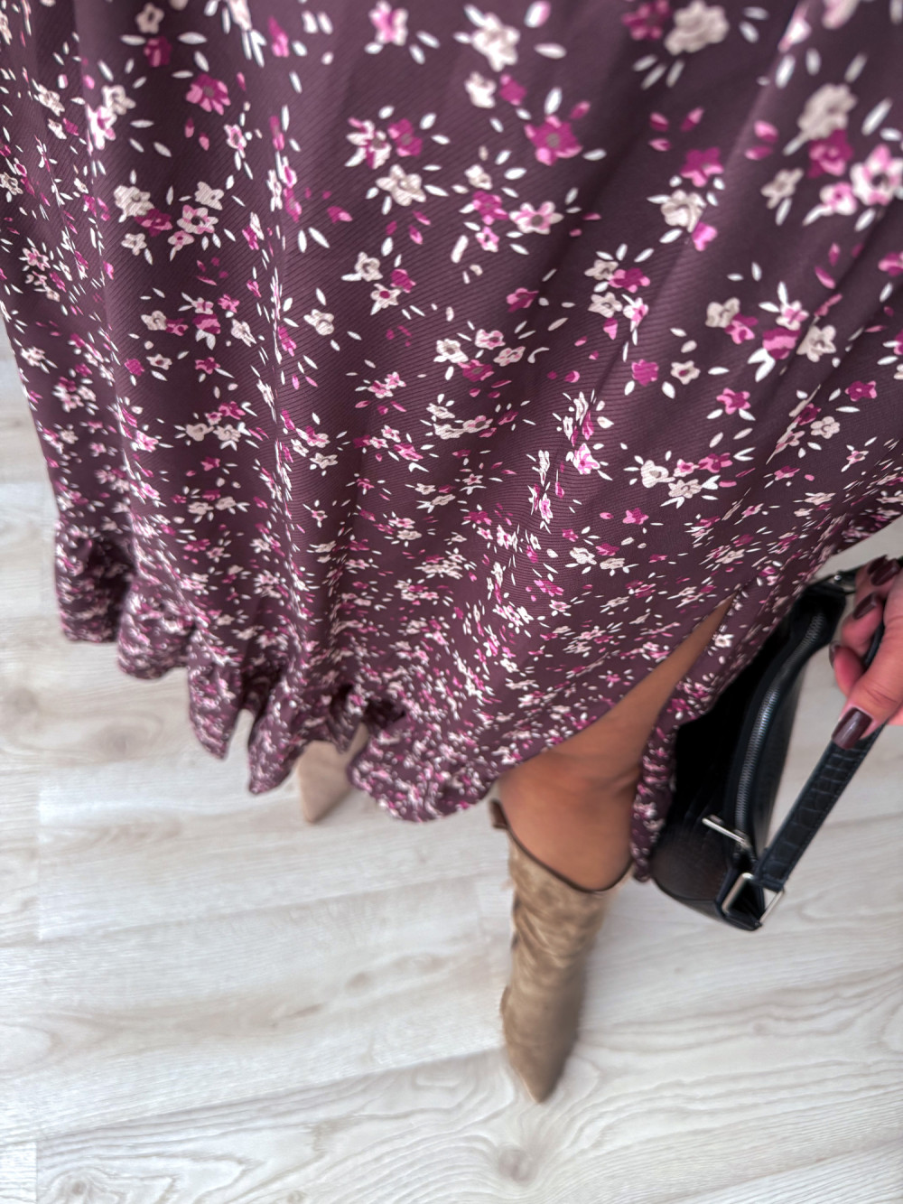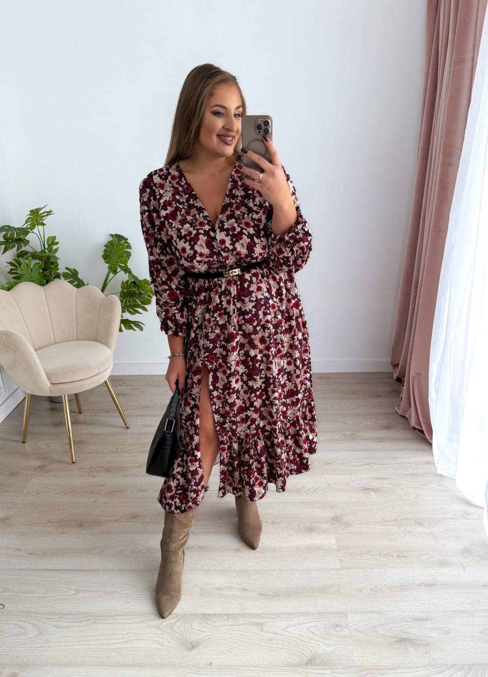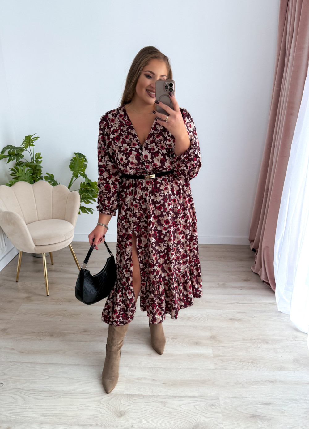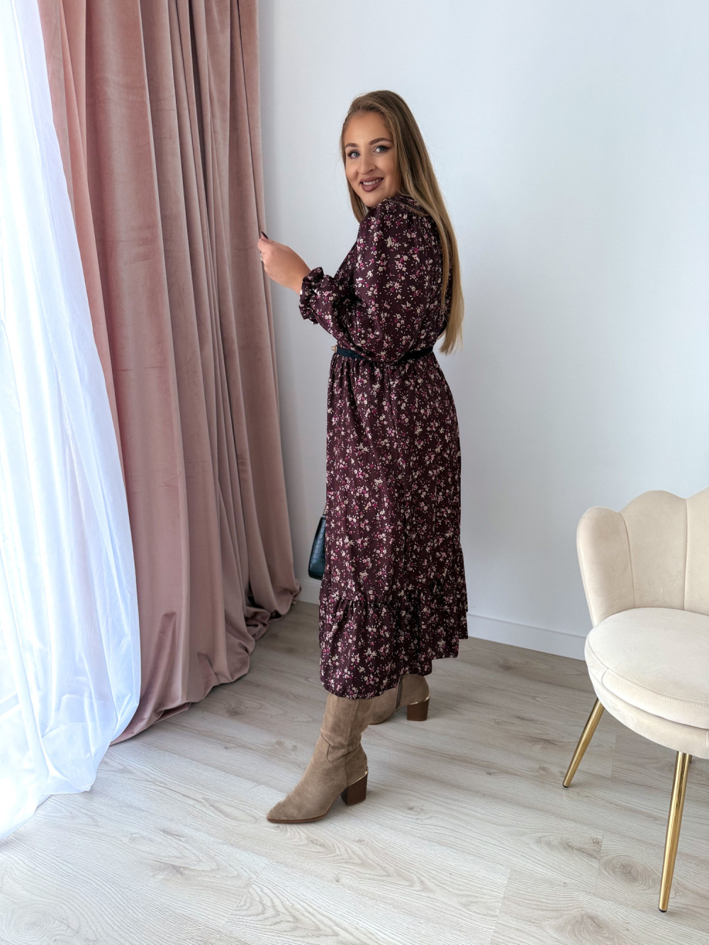 Sukienka midi plus size czekoladowa w kwiatki Missouri