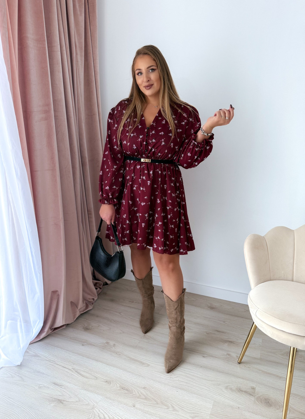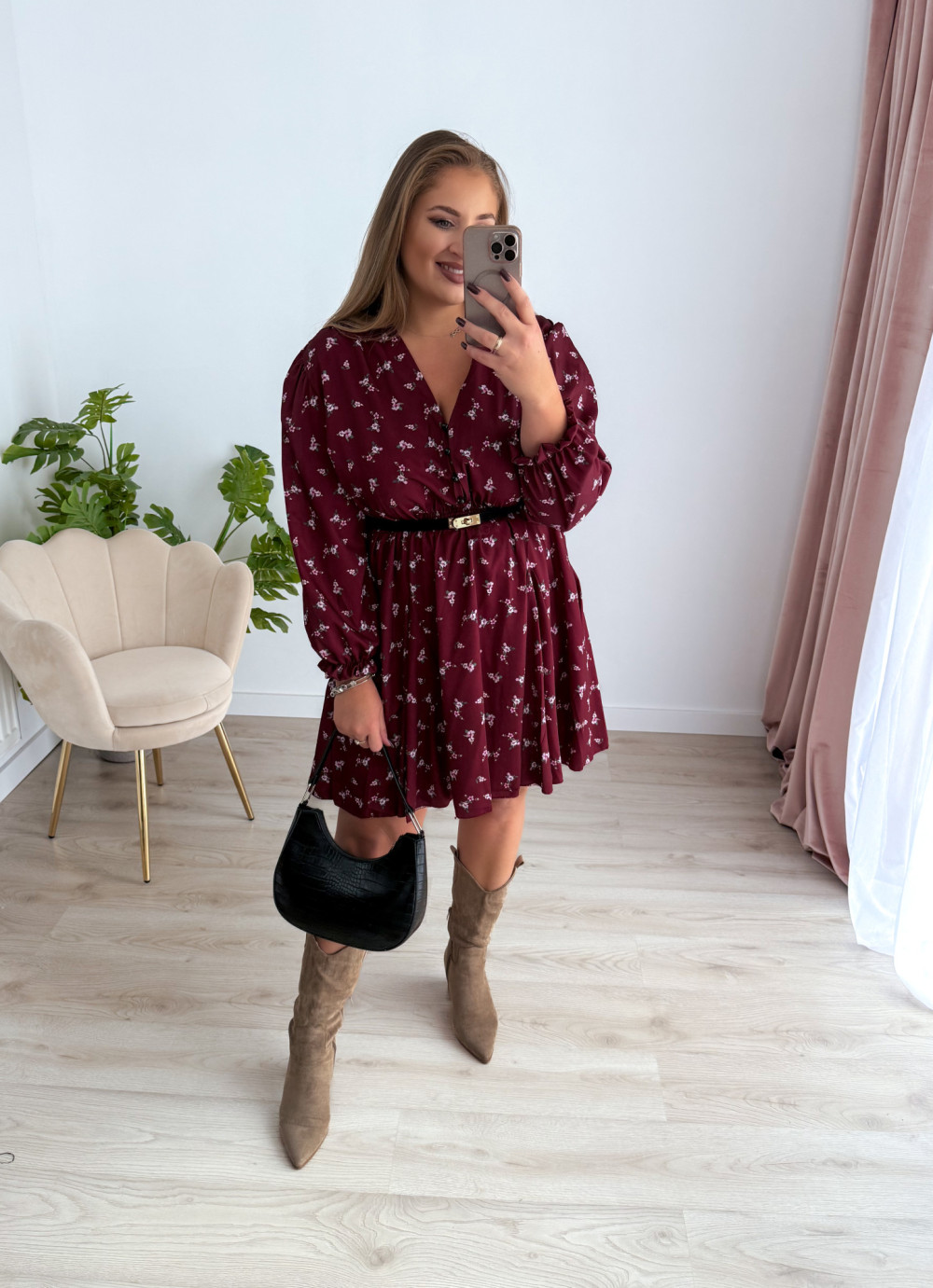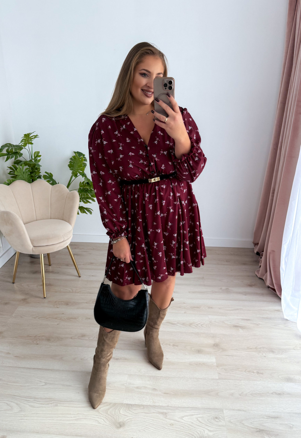 Sukienka krótka plus size bordowa w kwiatki Sienna