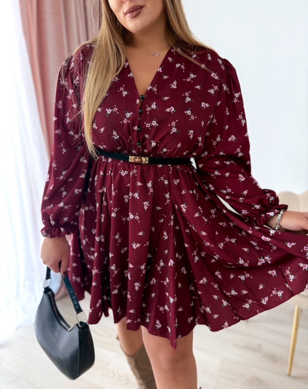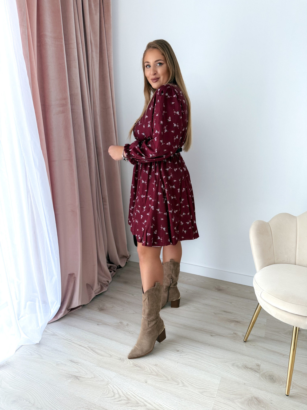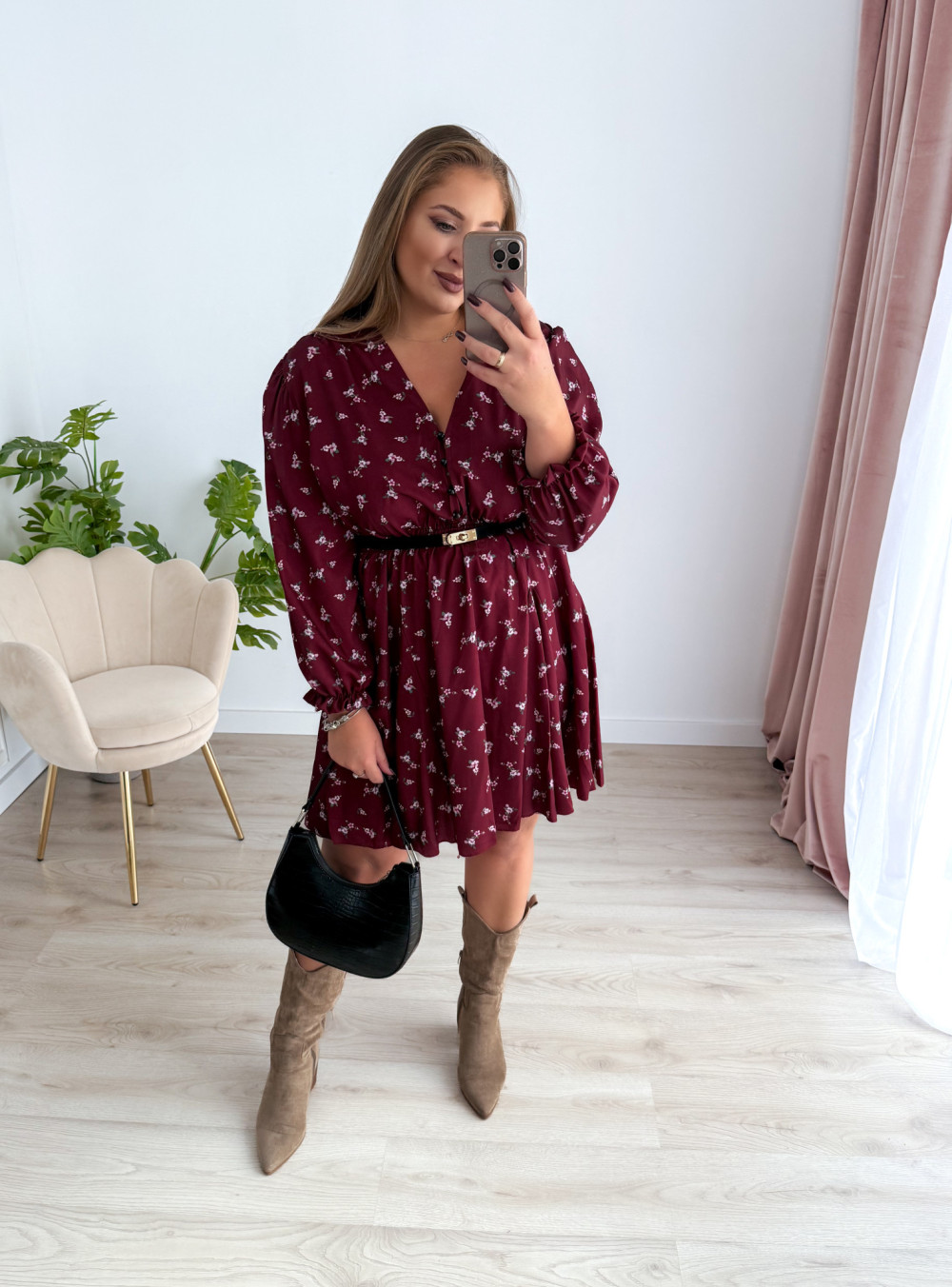 Sukienka krótka plus size bordowa w kwiatki Sienna