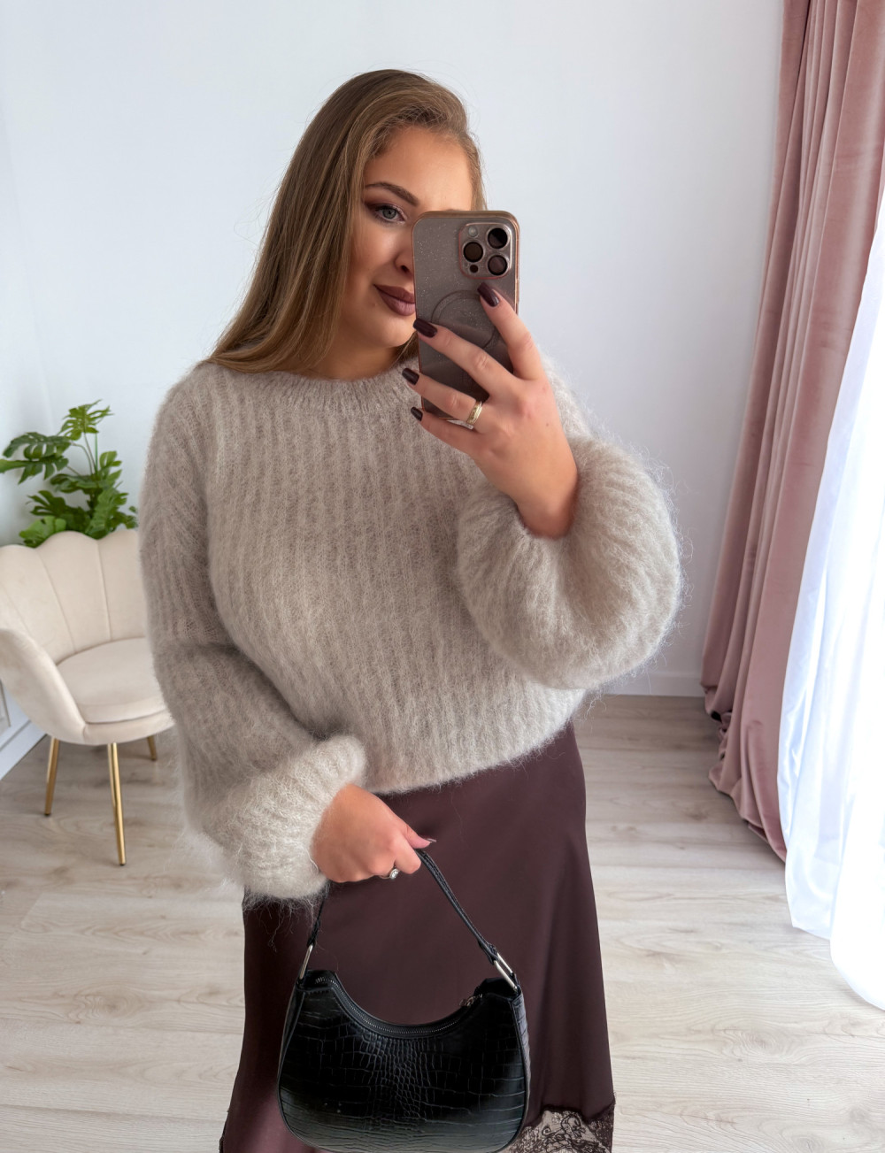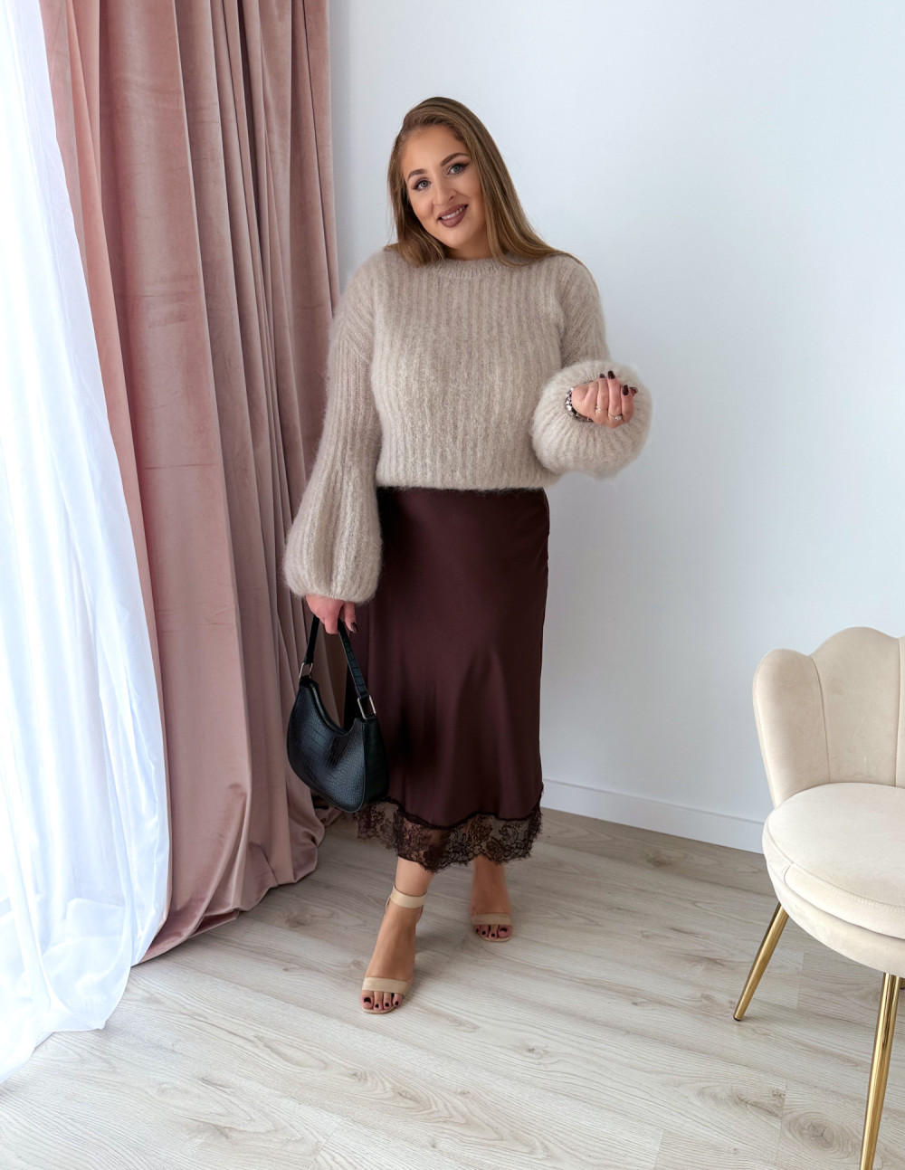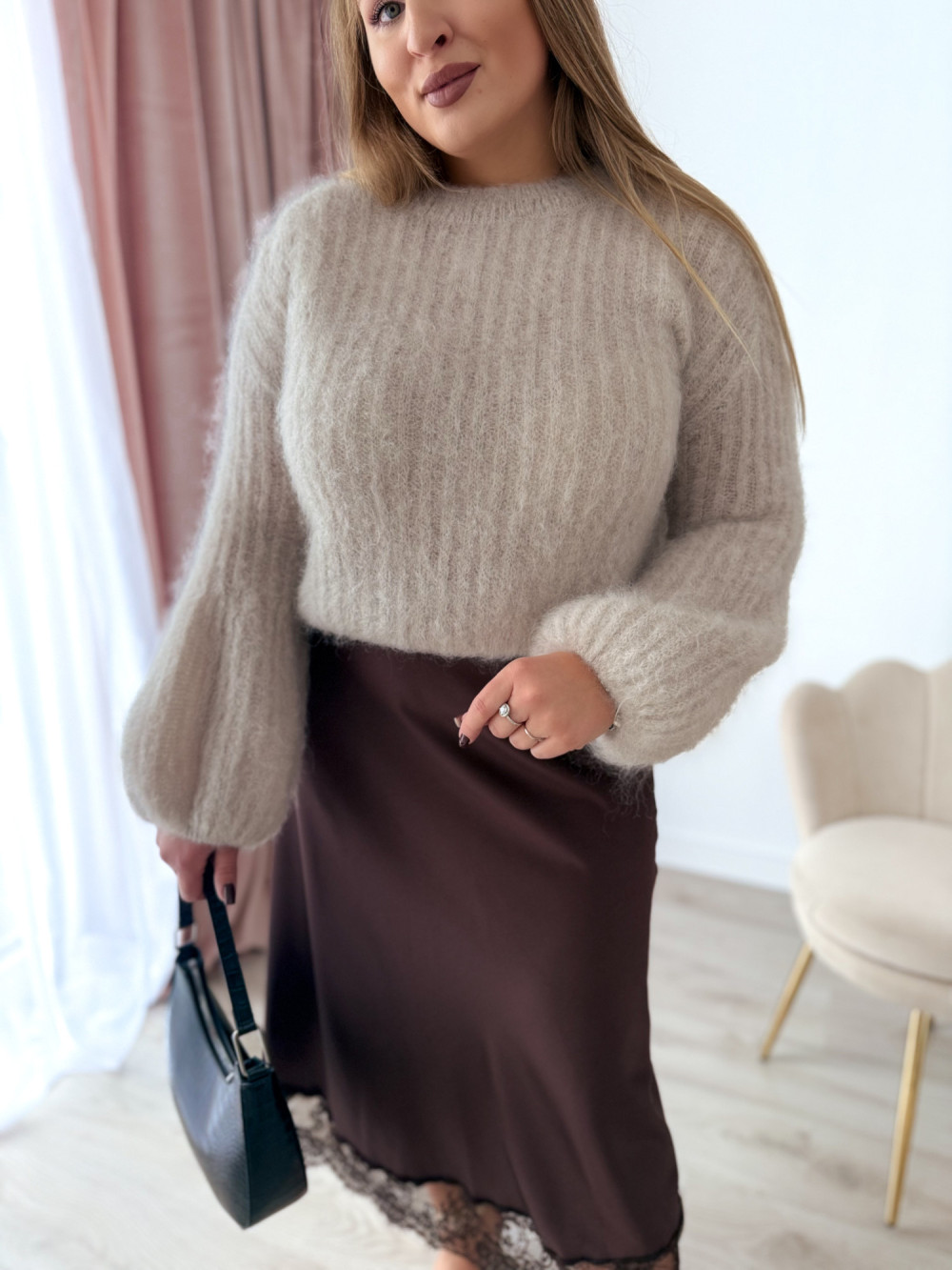 To sweter, który podkreśla styl, a przy tym daje poczucie wyjątkowego luksusu i kobiecości.