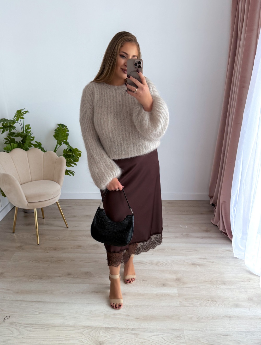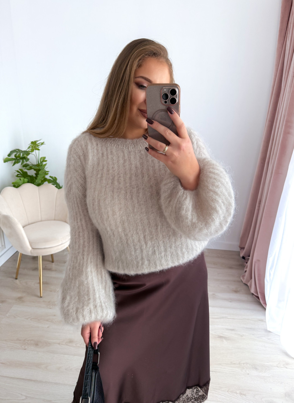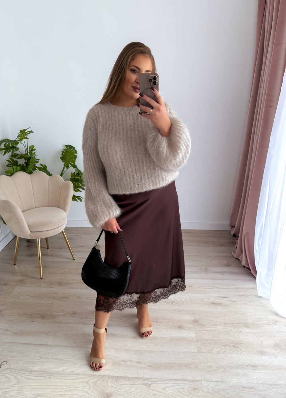To sweter, który podkreśla styl, a przy tym daje poczucie wyjątkowego luksusu i kobiecości.
