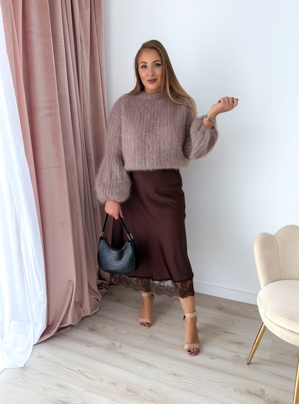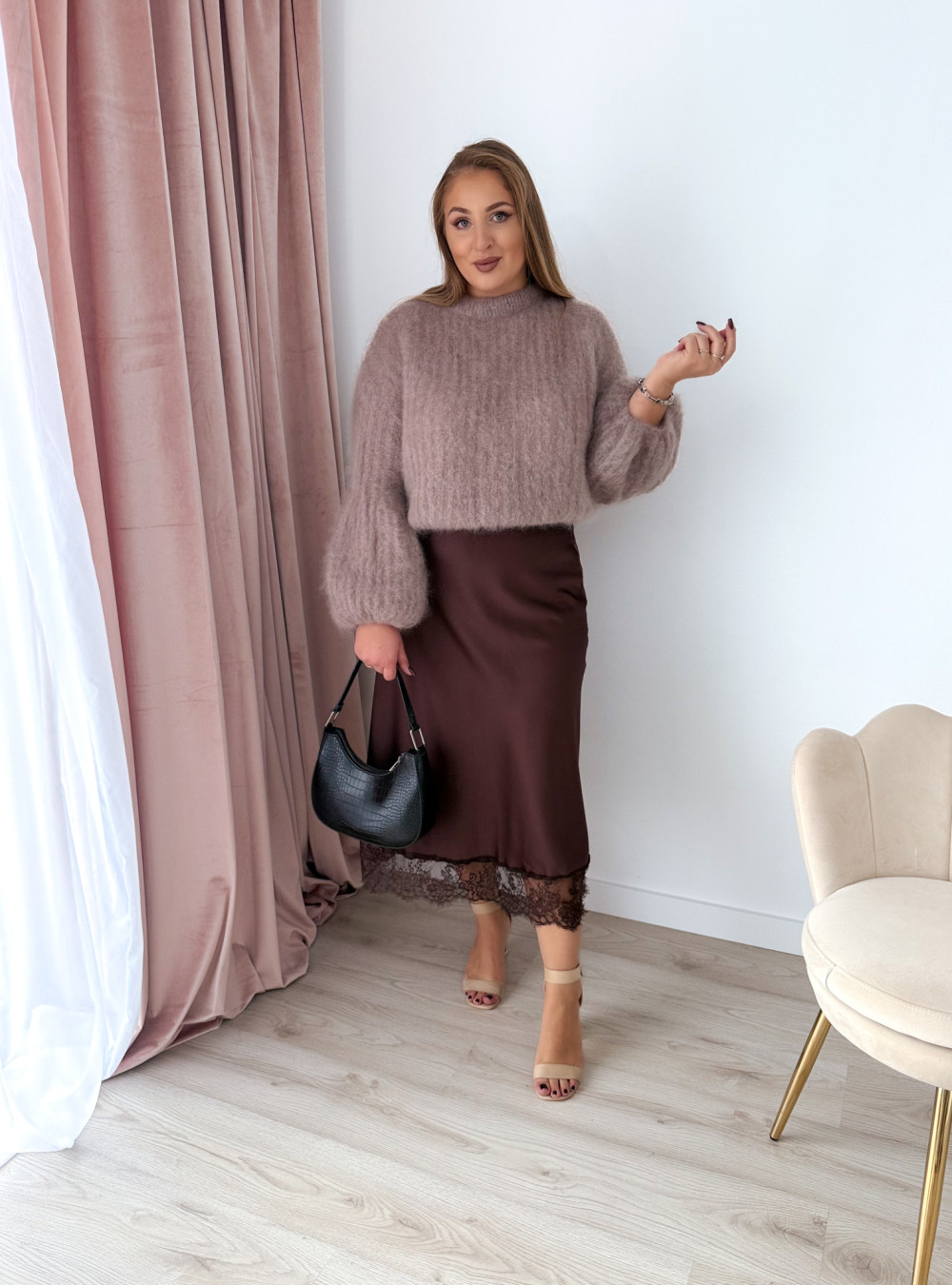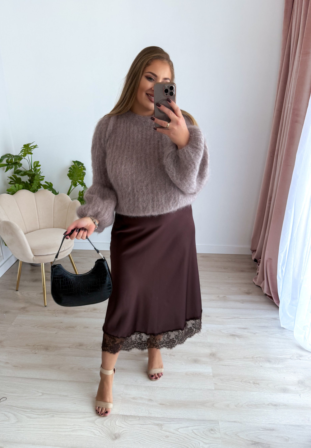 Spódnica midi satynowa z koronką Zaraya - czekolada
