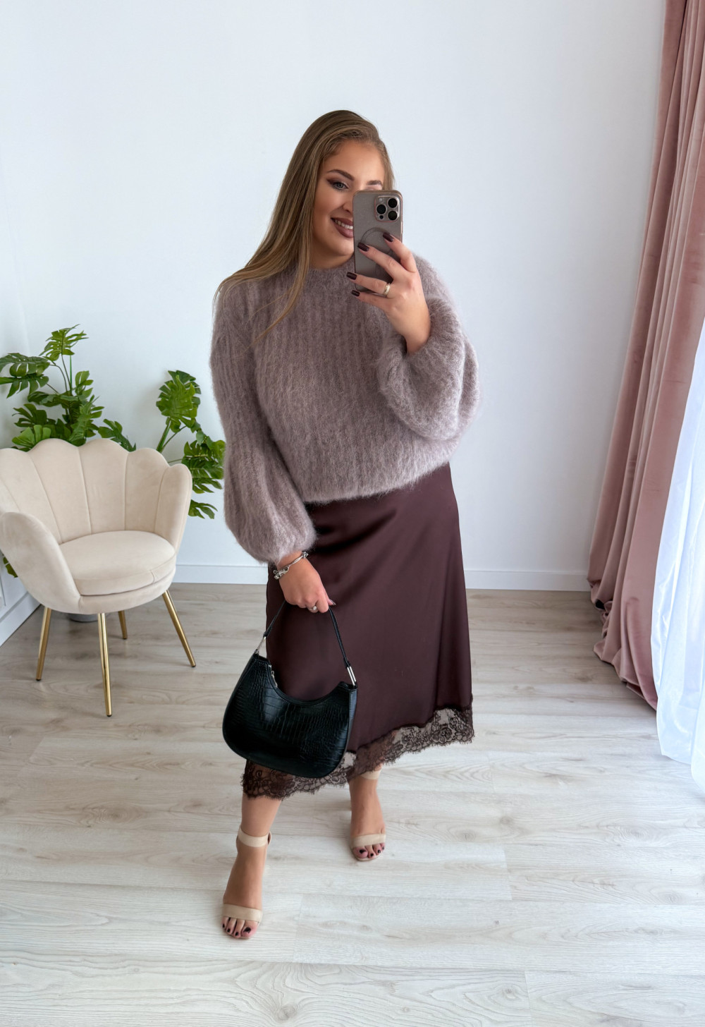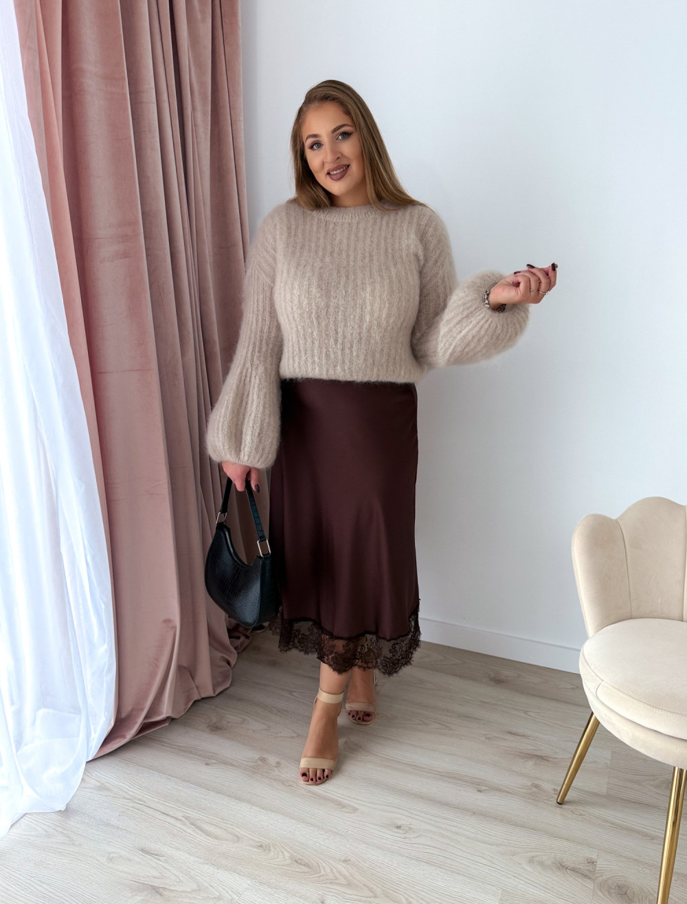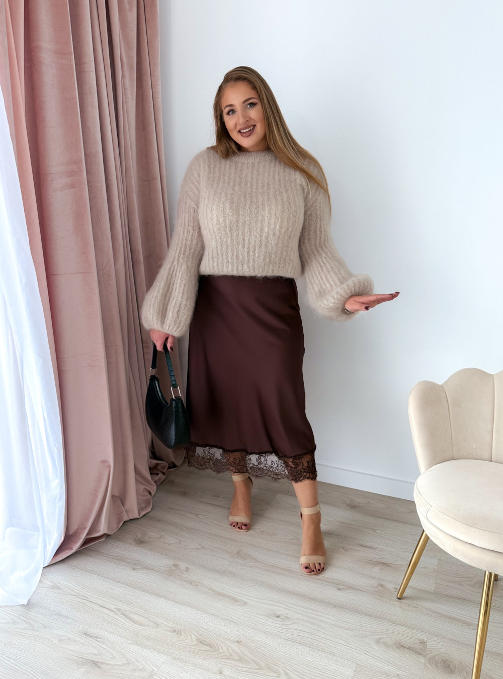 Spódnica midi satynowa z koronką Zaraya - czekolada