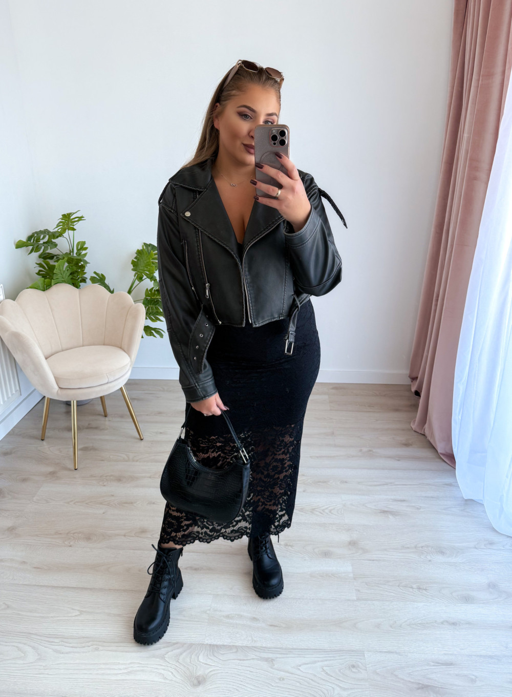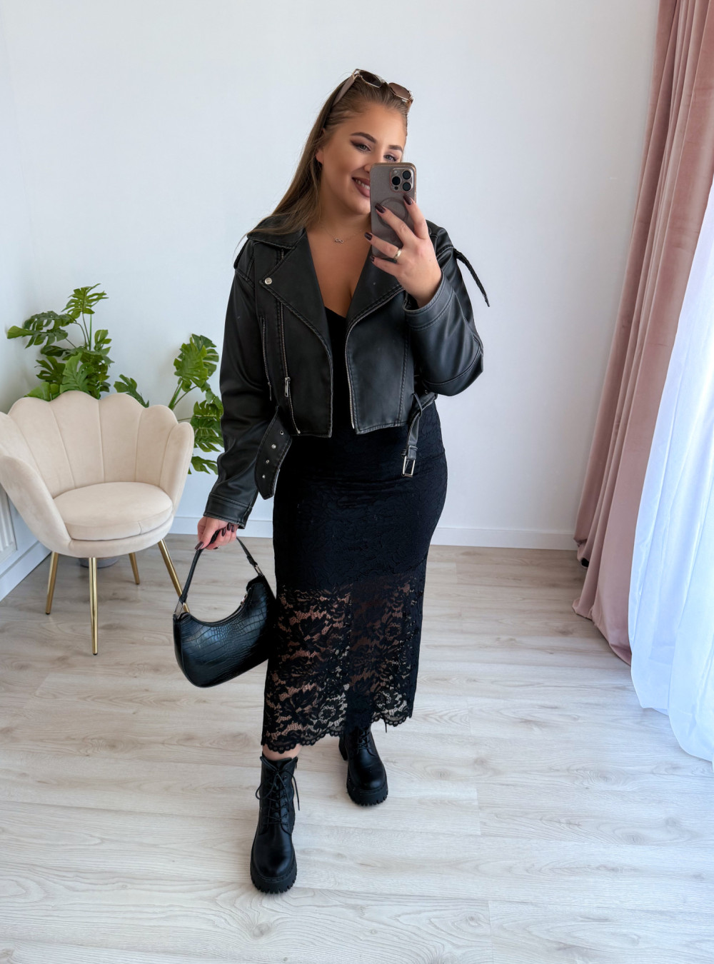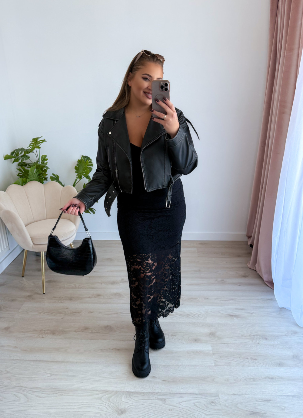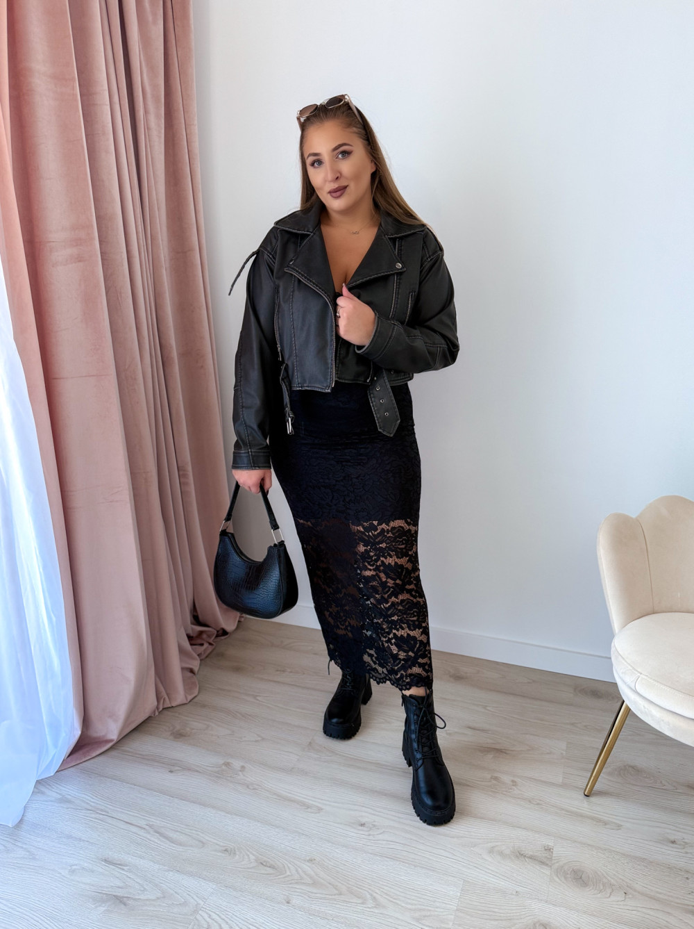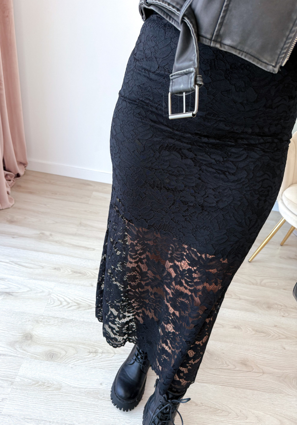 Koronkowa spódnica maxi to elegancja i wygoda w jednym – idealna propozycja na jesienne stylizacje. Elastyczna koronka pięknie się układa, a podszewka do kolan zapewnia komfort noszenia i subtelne wykończenie.