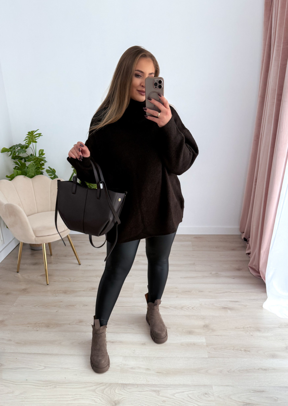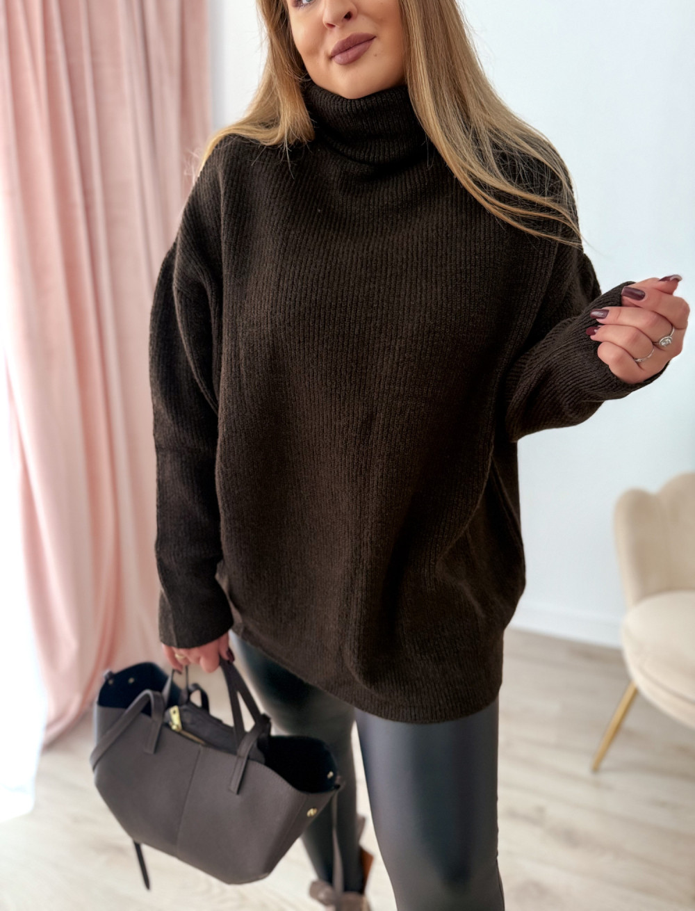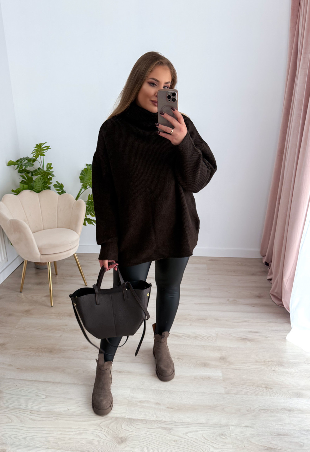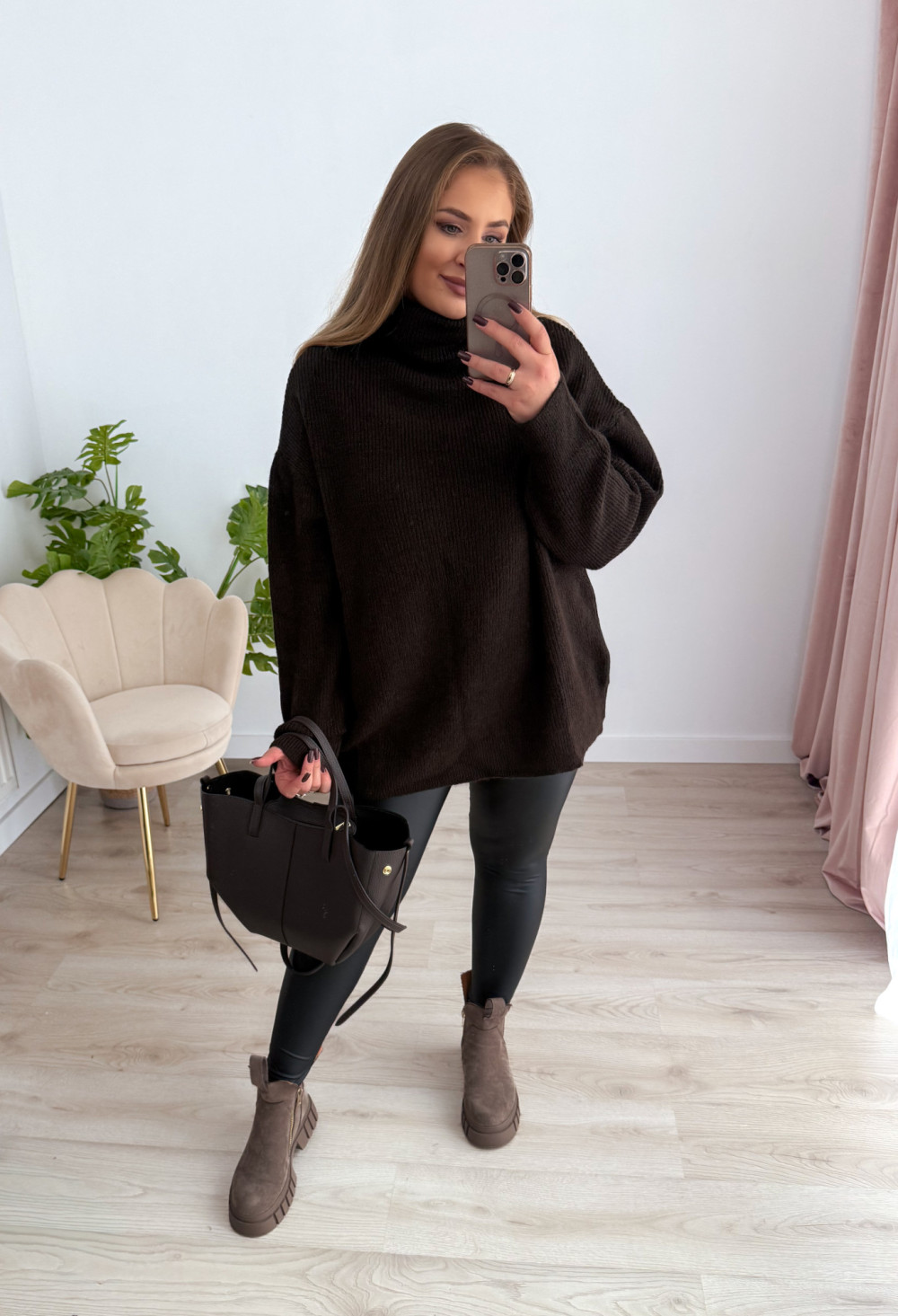 Stylowy i wygodny sweter-tunika z golfem to idealny wybór na chłodniejsze dni. Wykonany z miękkiej dzianiny o wysokiej zawartości akrylu, zapewnia komfort oraz elegancki wygląd w każdej stylizacji. Dłuższy fason sprawia, że doskonale prezentuje się zarówno z legginsami, jak i dopasowanymi spodniami.