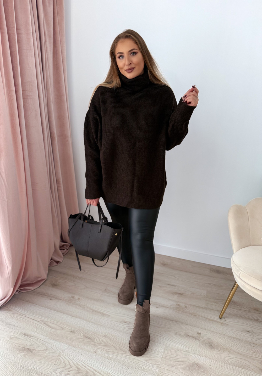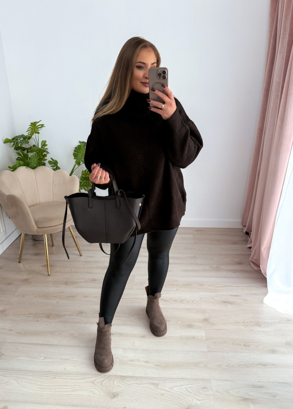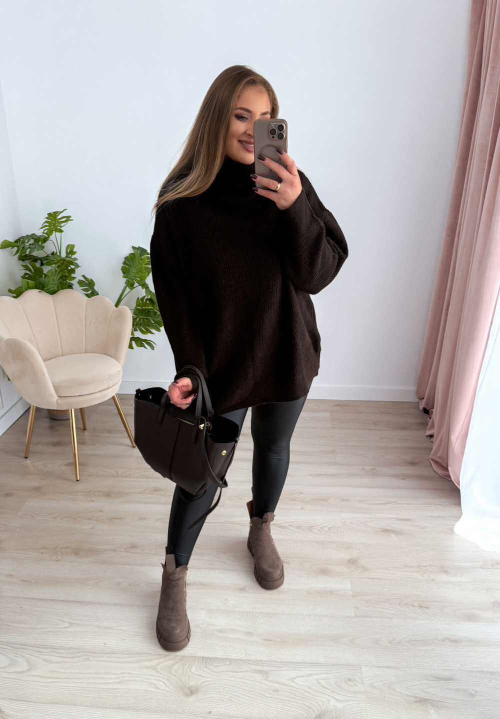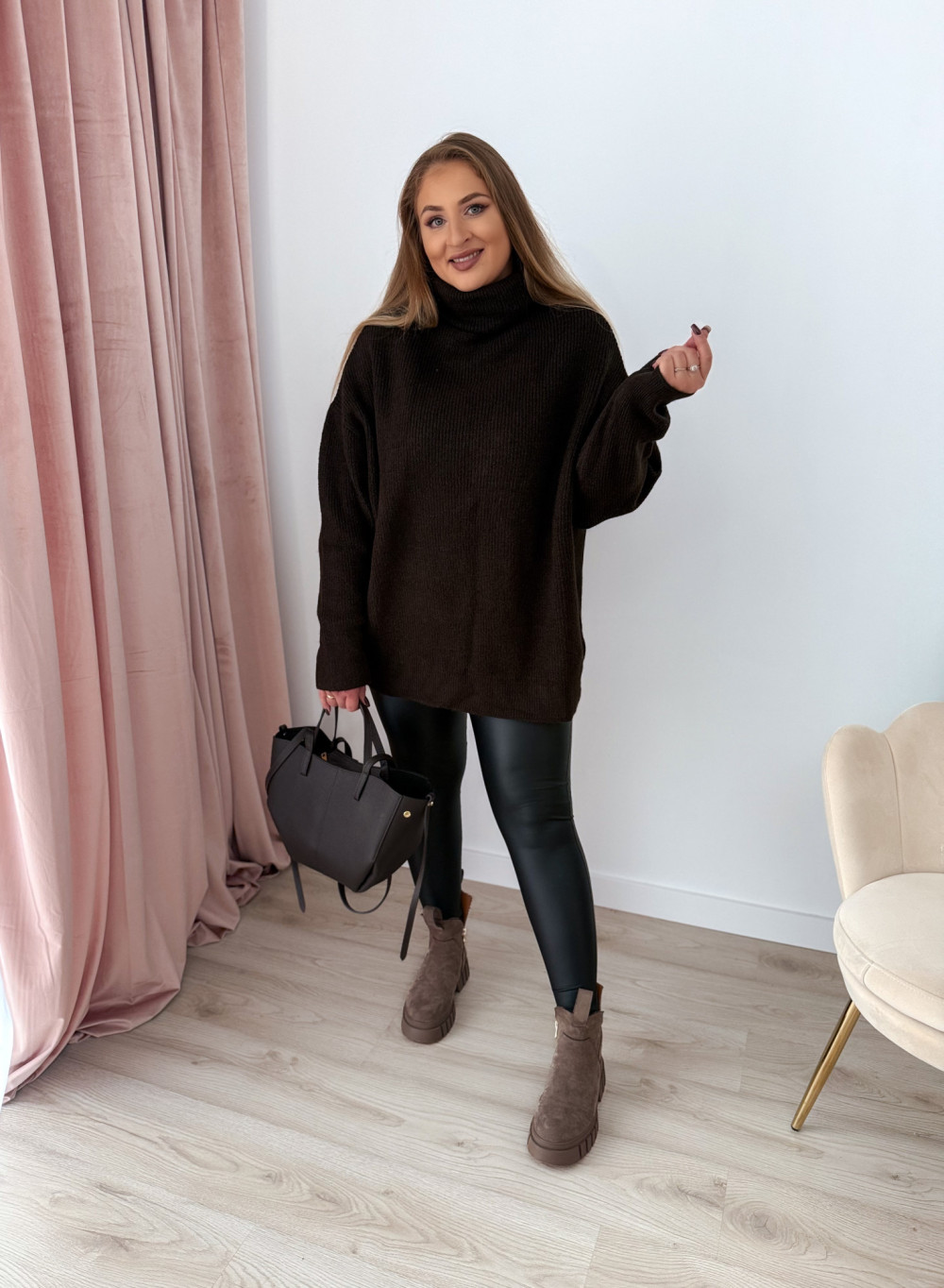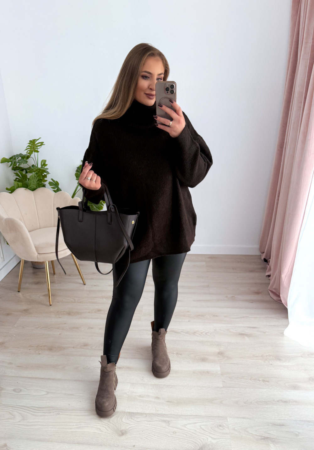 Stylowy i wygodny sweter-tunika z golfem to idealny wybór na chłodniejsze dni. Wykonany z miękkiej dzianiny o wysokiej zawartości akrylu, zapewnia komfort oraz elegancki wygląd w każdej stylizacji. Dłuższy fason sprawia, że doskonale prezentuje się zarówno z legginsami, jak i dopasowanymi spodniami.