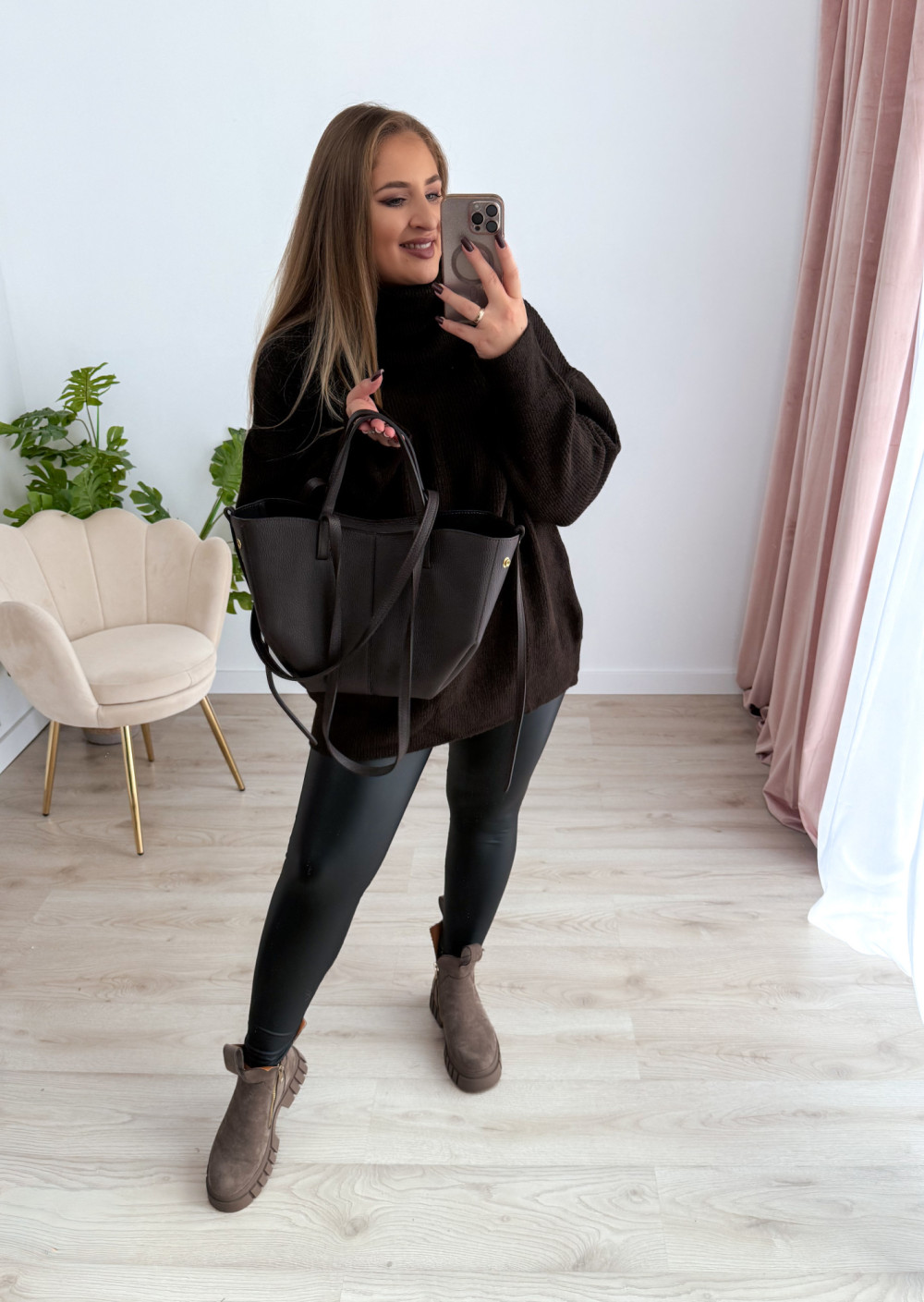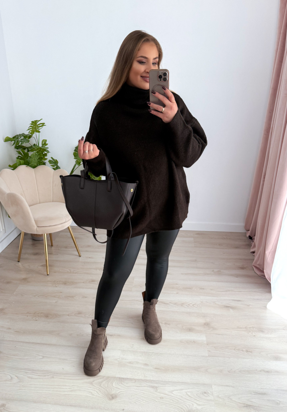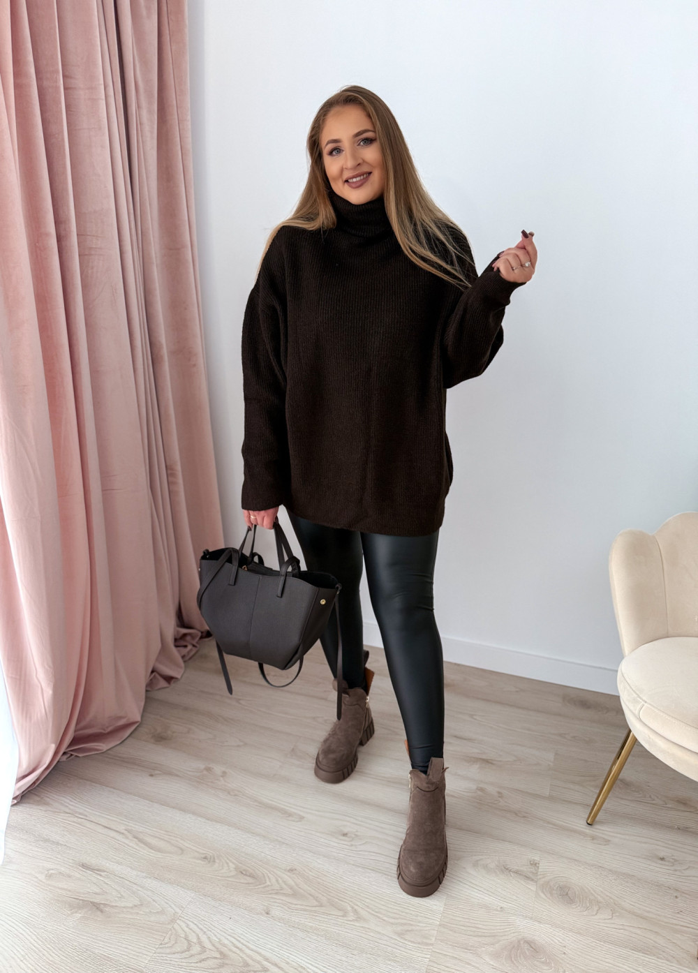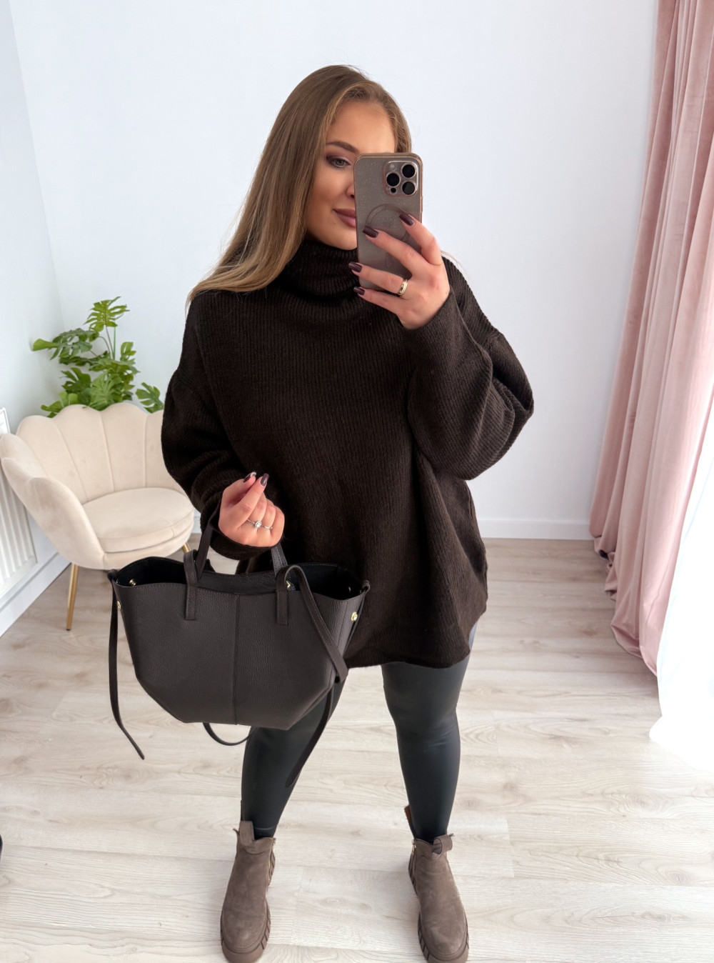Stylowy i wygodny sweter-tunika z golfem to idealny wybór na chłodniejsze dni. Wykonany z miękkiej dzianiny o wysokiej zawartości akrylu, zapewnia komfort oraz elegancki wygląd w każdej stylizacji. Dłuższy fason sprawia, że doskonale prezentuje się zarówno z legginsami, jak i dopasowanymi spodniami.