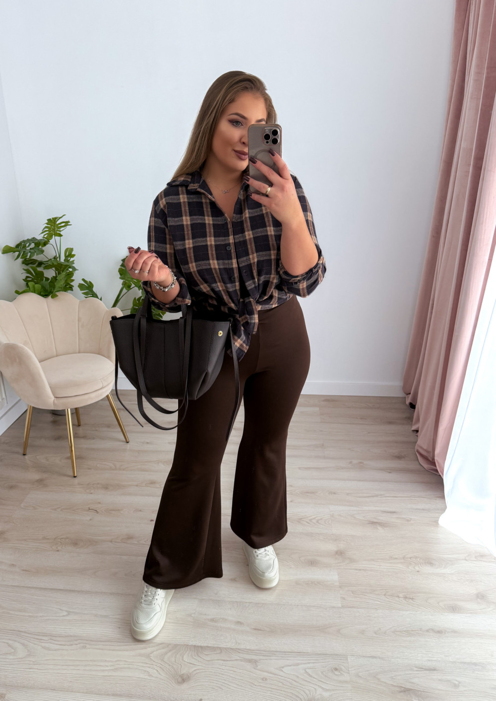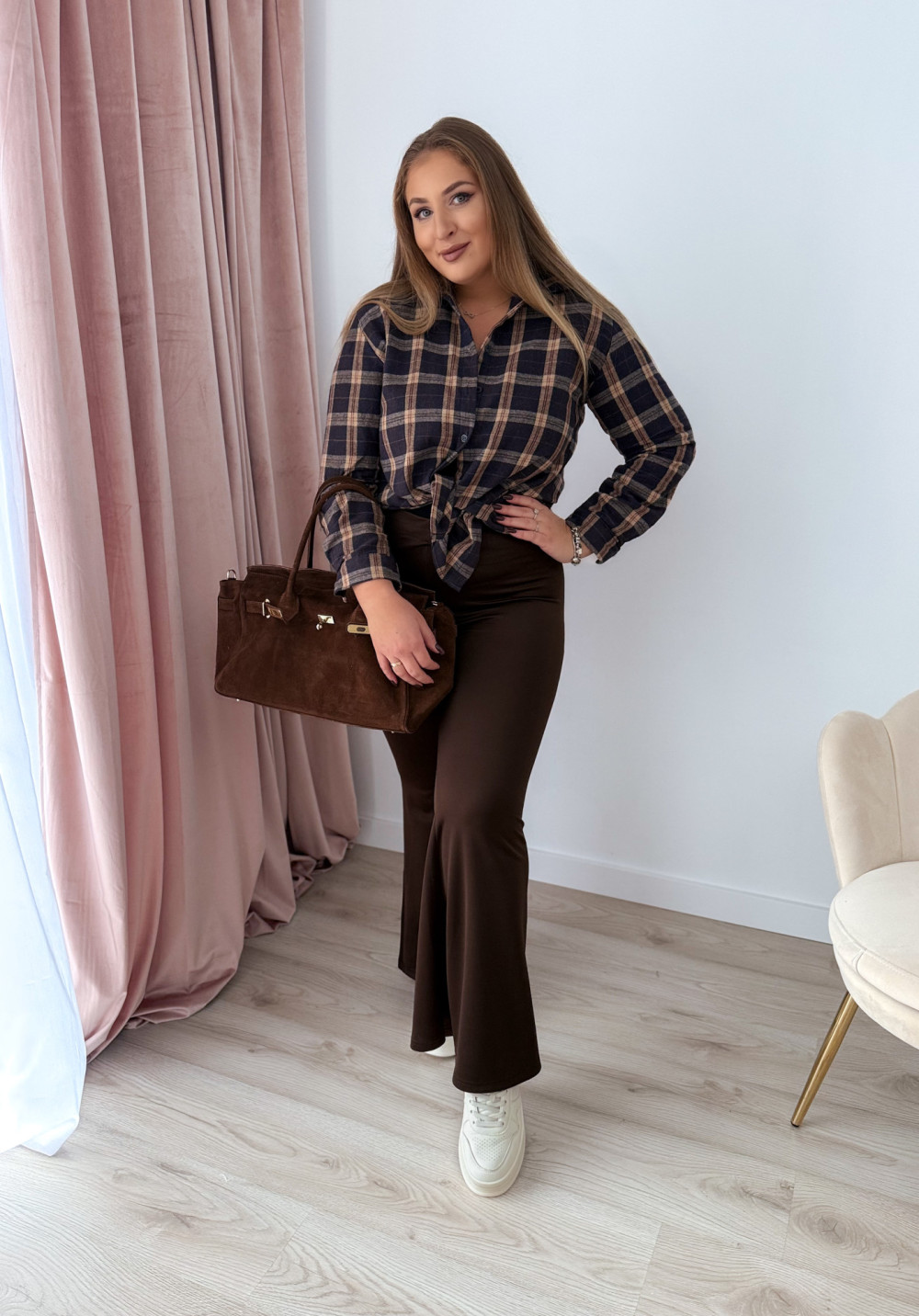 Koszula w czekoladowo-beżową kratę bawełniana flanelowa Mavis