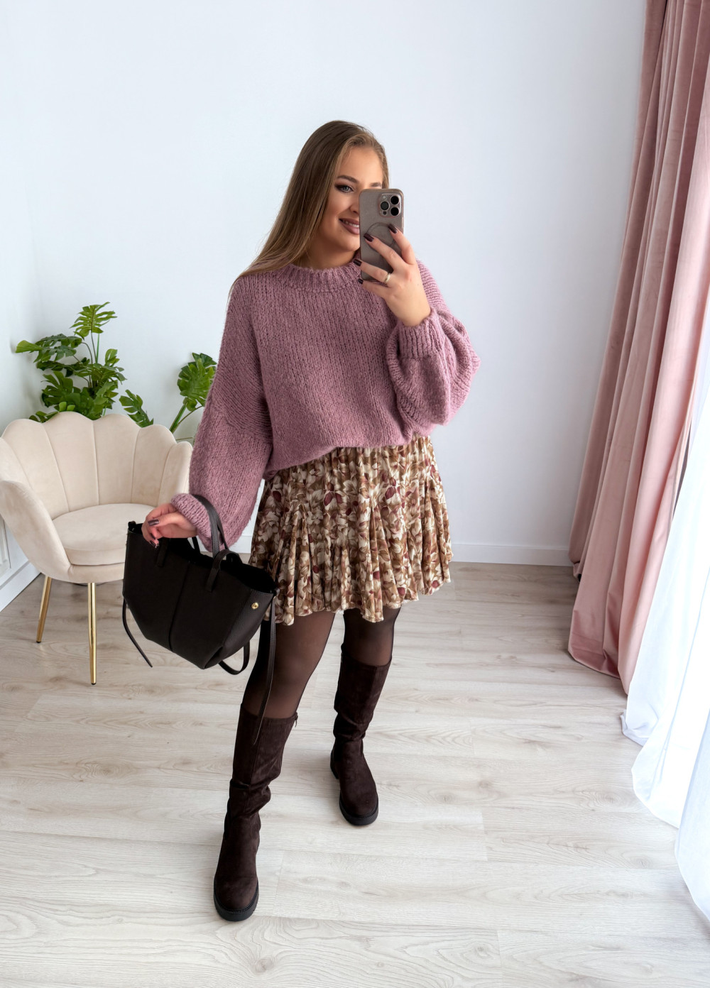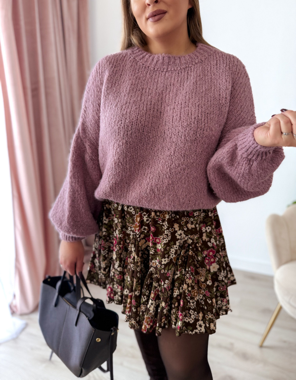 Sweter oversize z wełną i szerokimi rękawami Pippi - wrzos