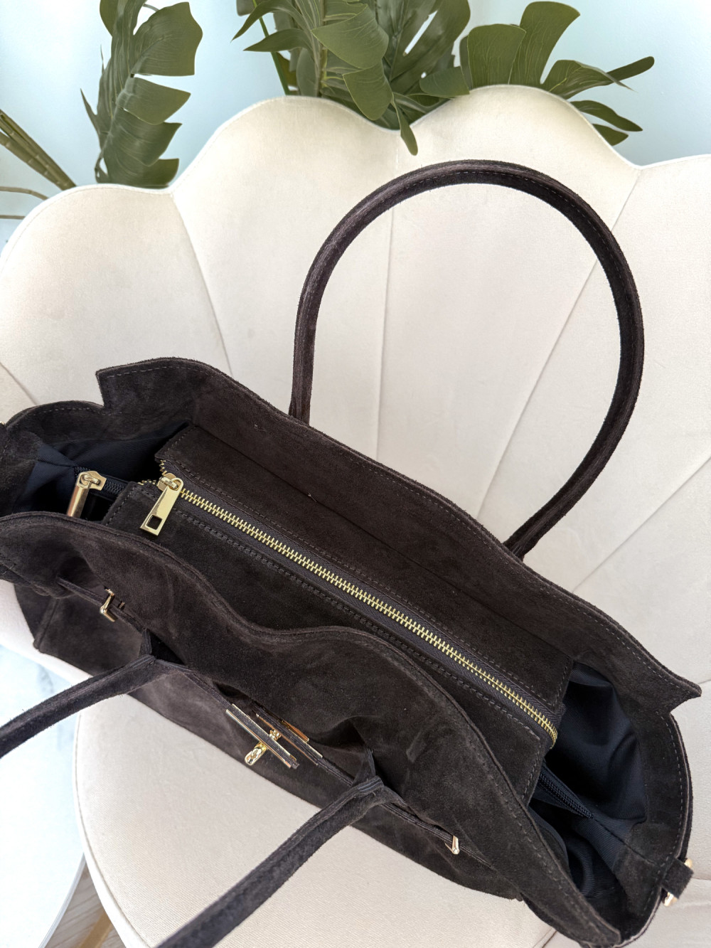 Elegancka i funkcjonalna torebka typu shopper wykonana z wysokiej jakości naturalnej skóry zamszowej to idealny wybór dla kobiet, które cenią klasykę i wygodę. Miękka w dotyku skóra, staranne wykończenie i ponadczasowy fason sprawiają, że torebka doskonale dopełni zarówno codzienne, jak i eleganckie stylizacje.