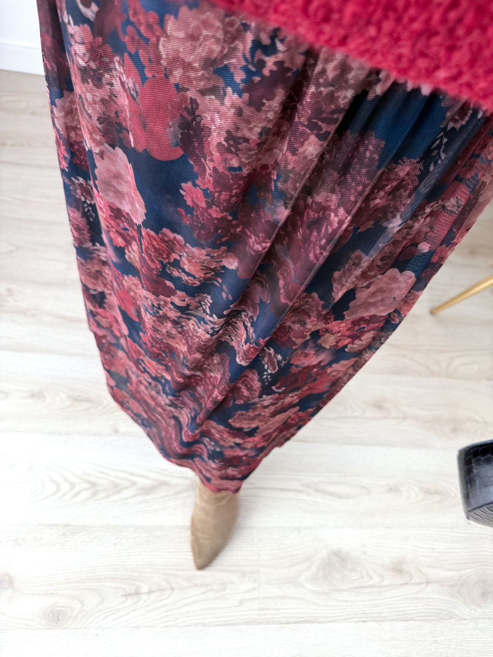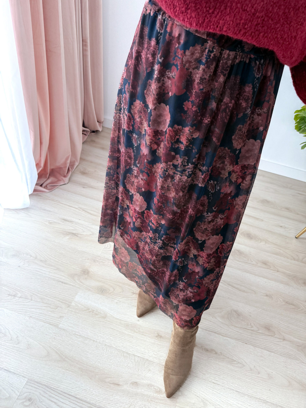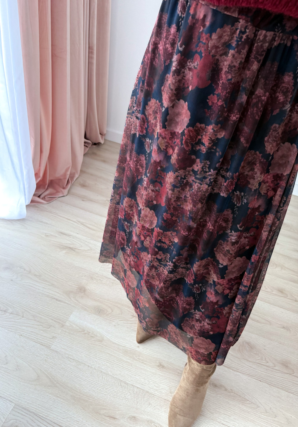 Spódnica maxi siateczkowa czarna w jesienne kwiaty Mariella