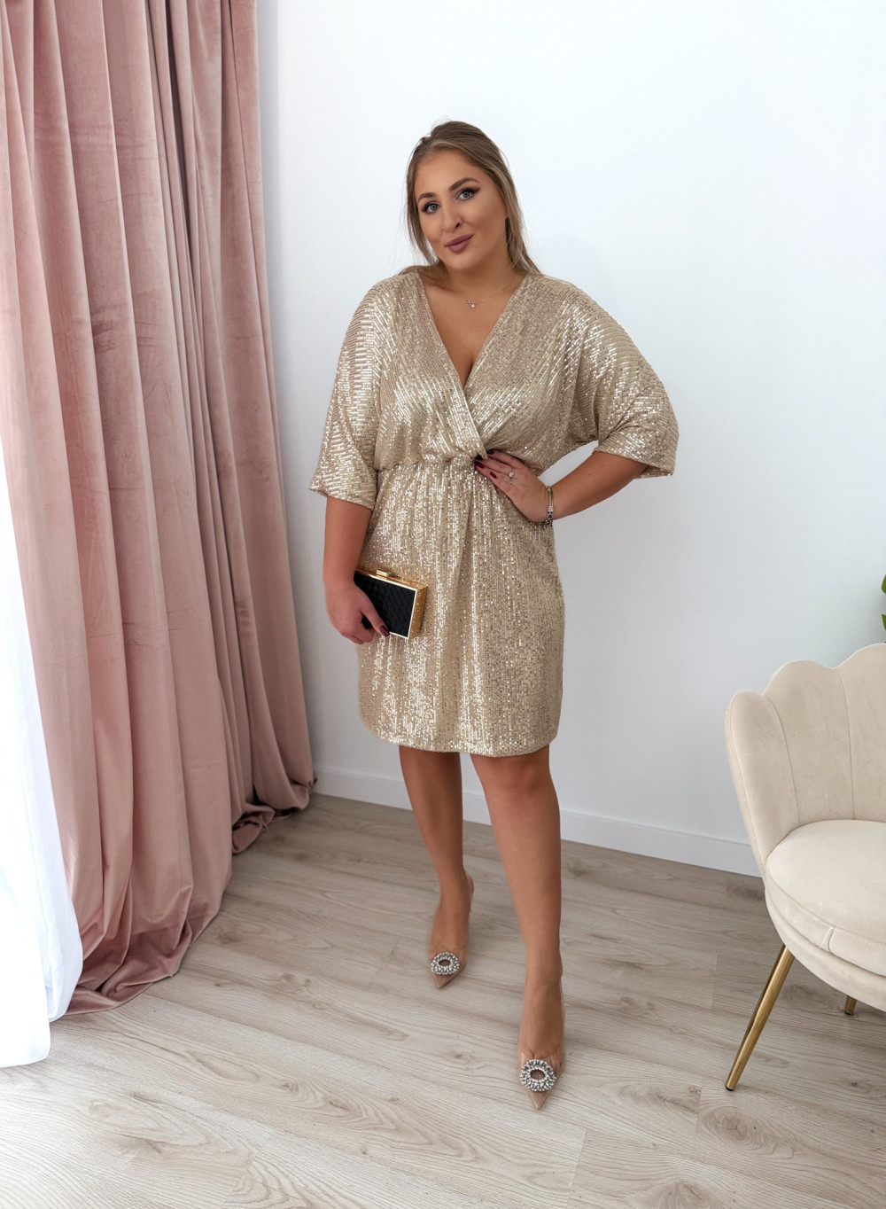 Sukienka cekinowa nietoperzowa Marisela - złota