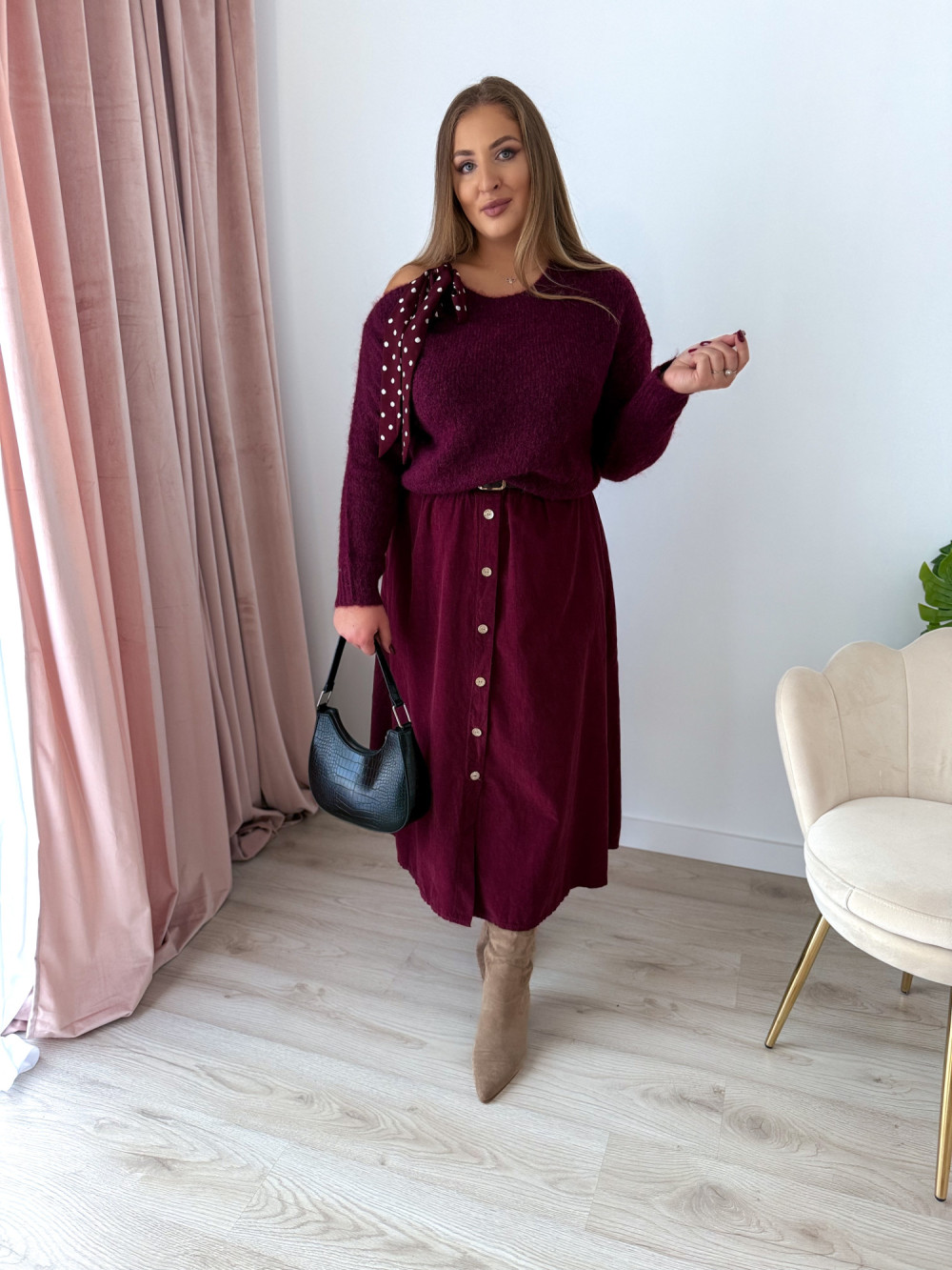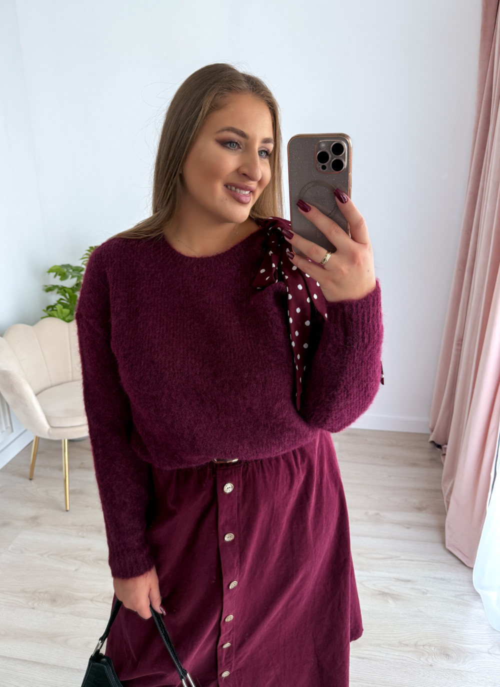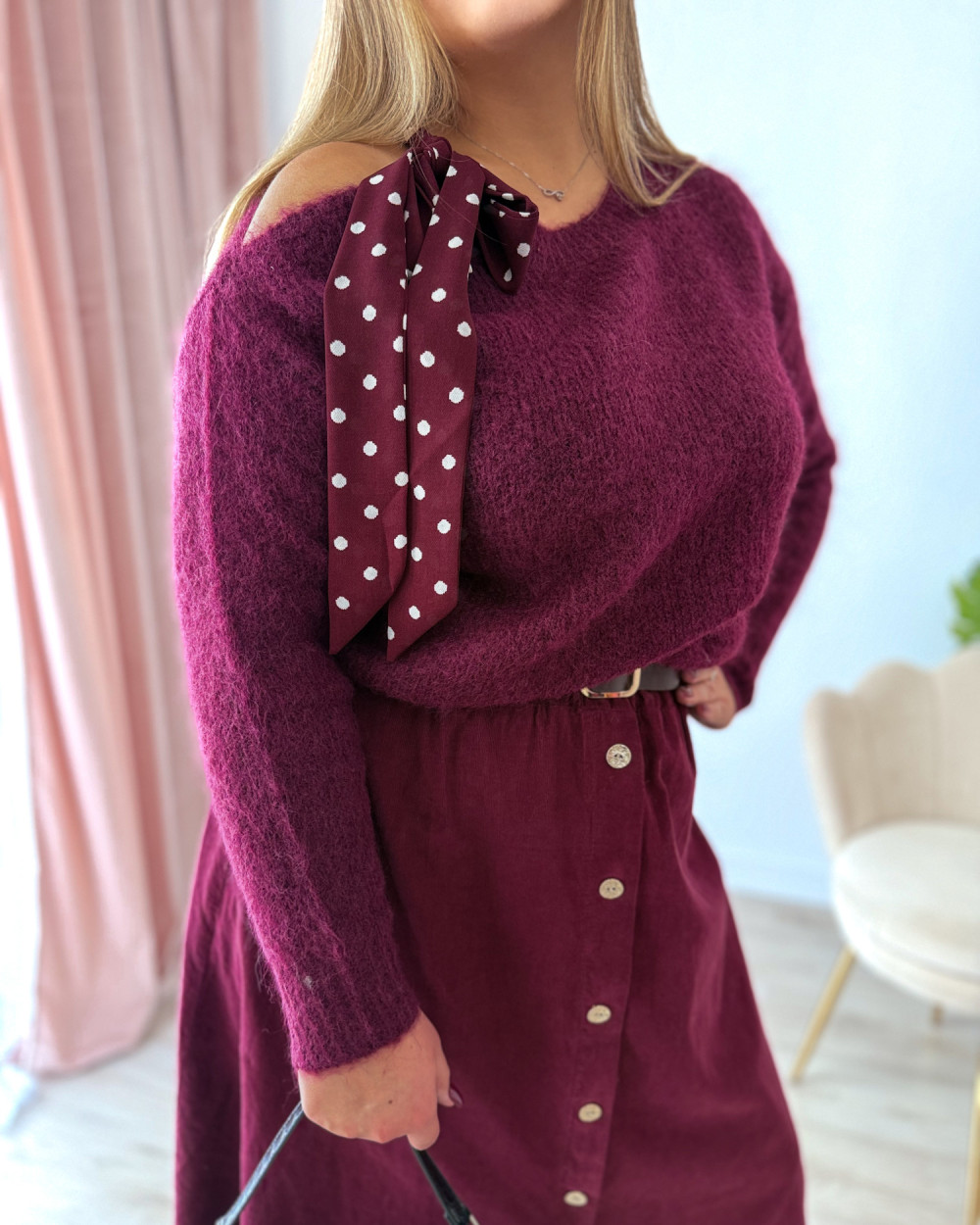 Sweter z wiązaniem na ramieniu Ariande - śliwka