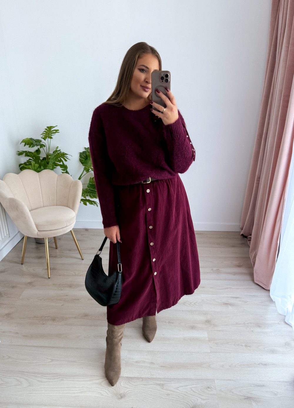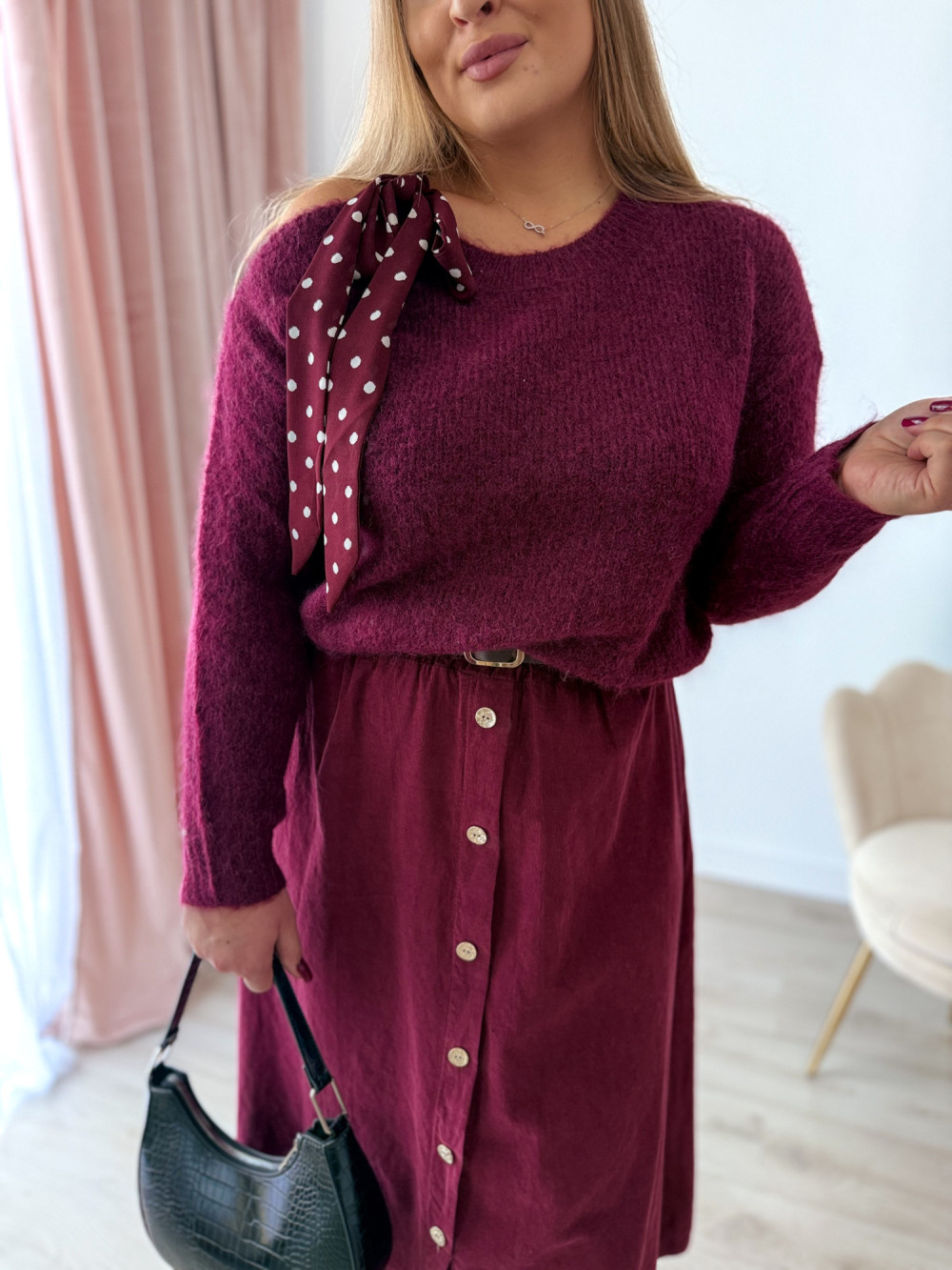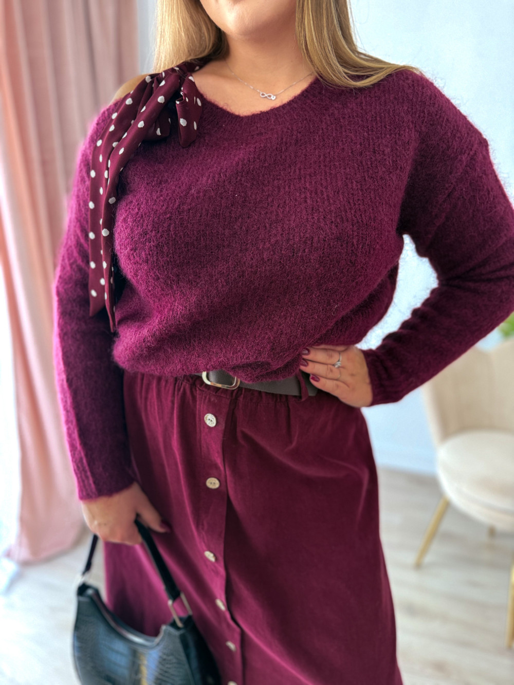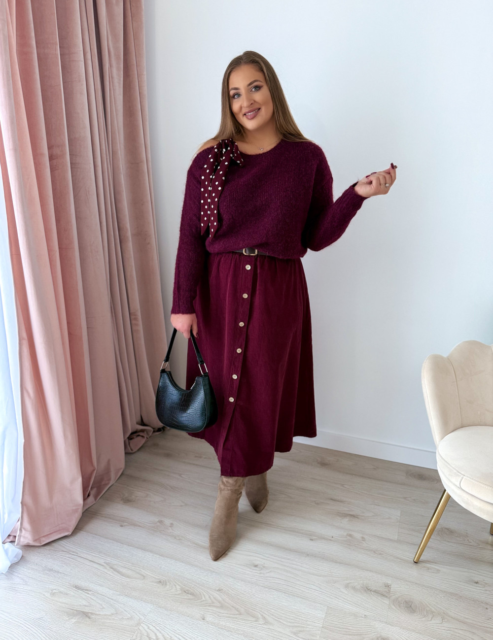 Sweter z wiązaniem na ramieniu Ariande - śliwka