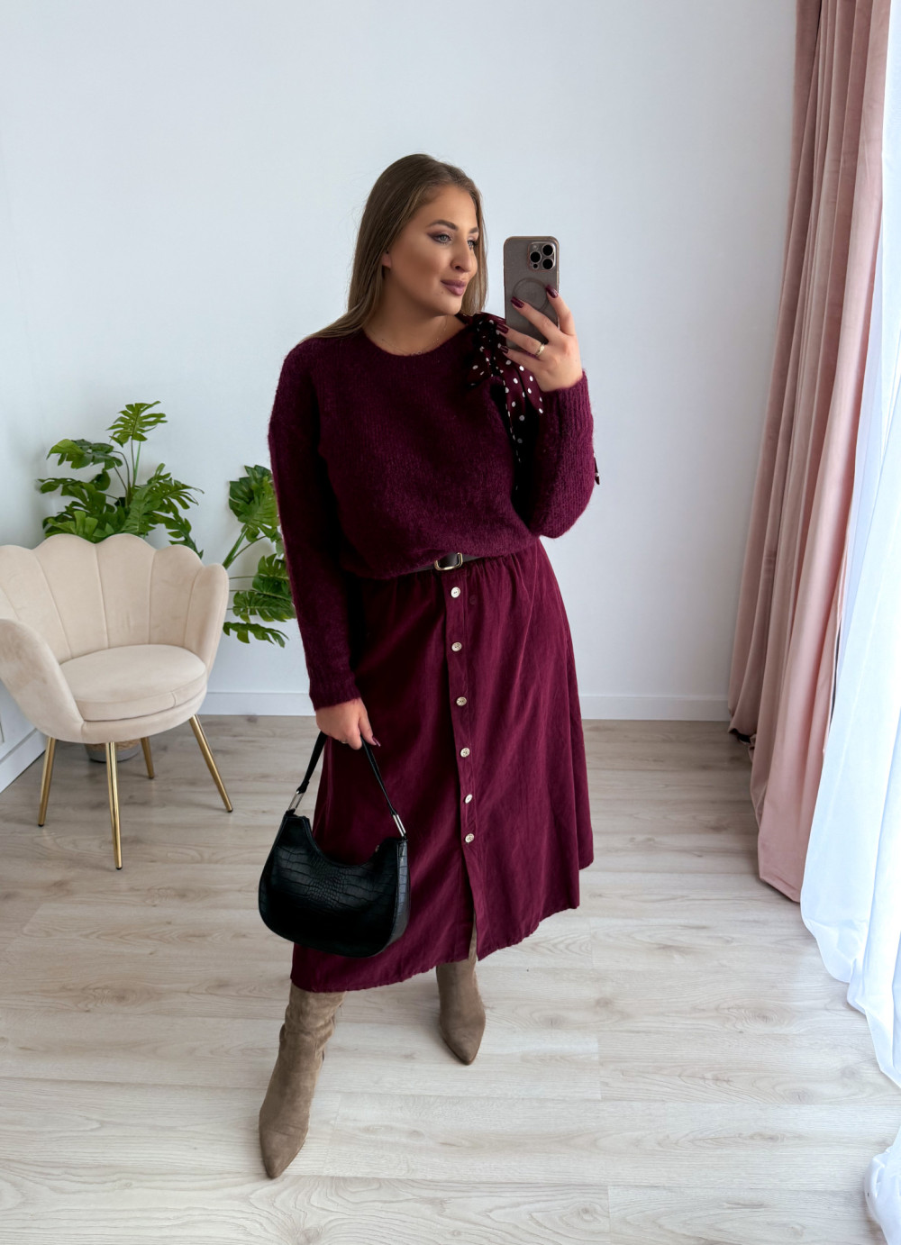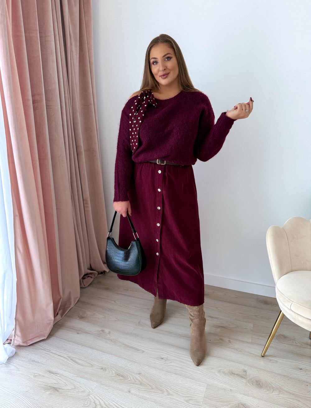 Stylowy i wygodny sweter oversize to propozycja, która łączy komfort z modnym designem. Wykonany z miękkiego, przyjemnego w dotyku materiału, zapewnia swobodę ruchów i ciepło w chłodniejsze dni. Długi rękaw i luźny krój podkreślają casualowy charakter, a oryginalne wiązanie na ramieniu dodaje subtelnej elegancji i unikalnego akcentu w stylizacji. Sweter świetnie komponuje się zarówno z jeansami, jak i spódnicą.