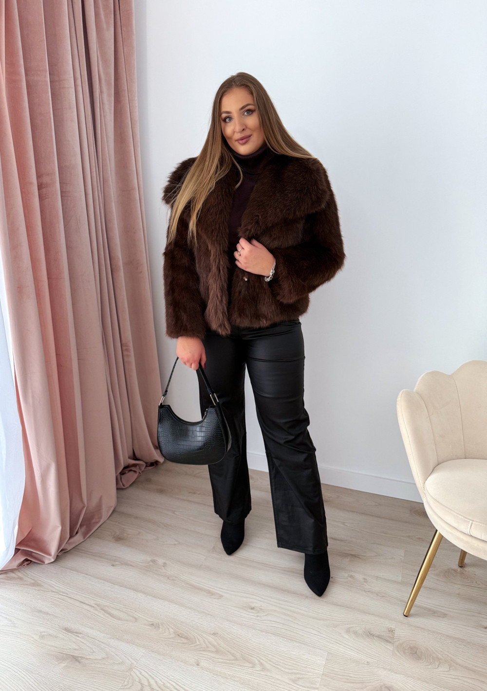 Stylowe i nowoczesne spodnie wide leg wykonane z lekkiego, woskowanego materiału, który nadaje im modny, lekko błyszczący efekt. Luźny fason zapewnia komfort i swobodę ruchów, a praktyczne kieszenie po bokach i z tyłu dodają funkcjonalności i miejskiego charakteru. Spodnie doskonale sprawdzą się zarówno w casualowych, jak i bardziej eleganckich stylizacjach – w połączeniu z sneakersami lub botkami stworzą modne, wygodne looki.modny, luźny fason wide leg – komfort i styl