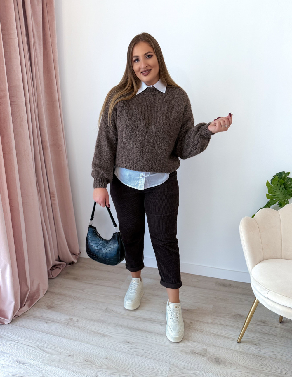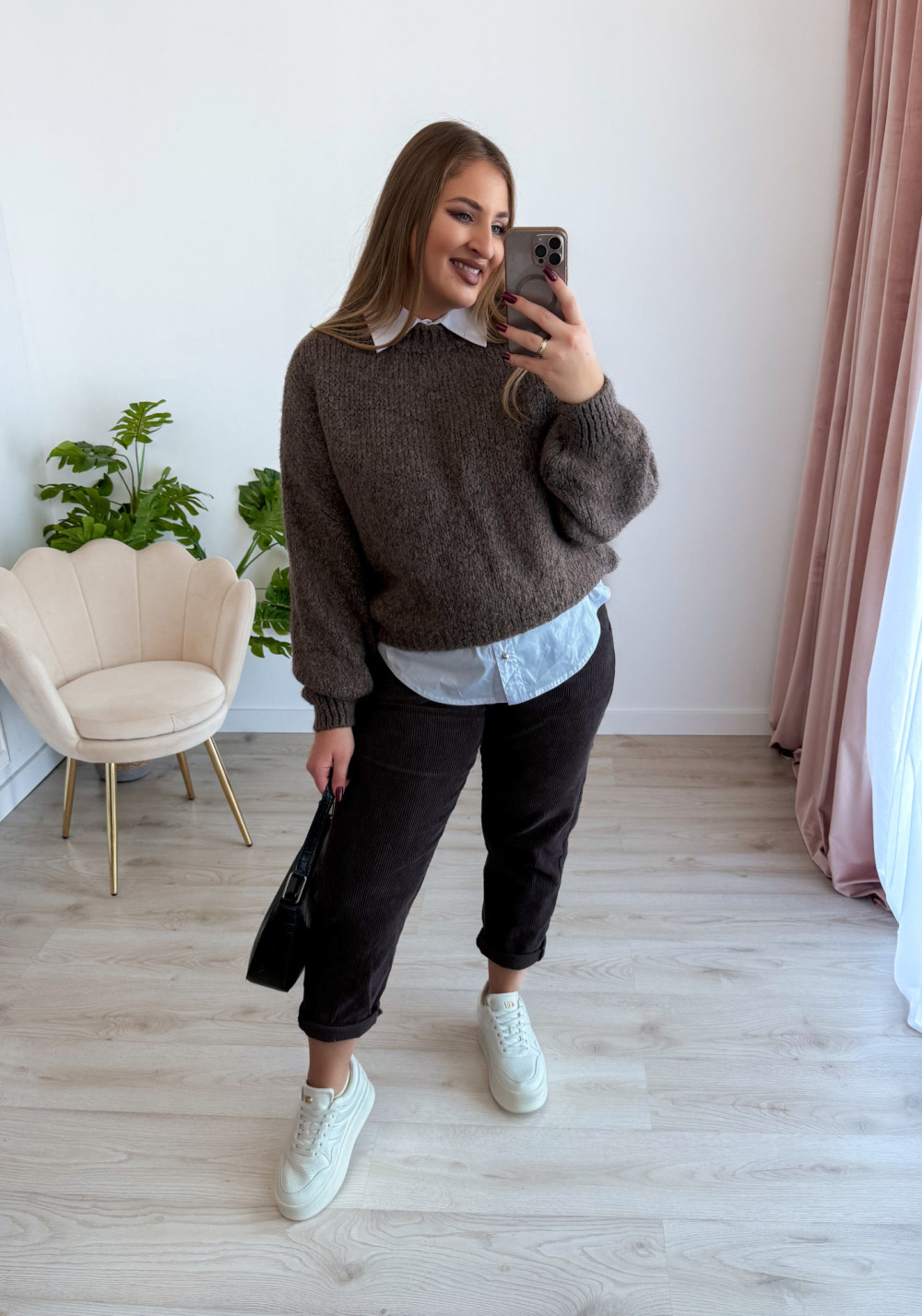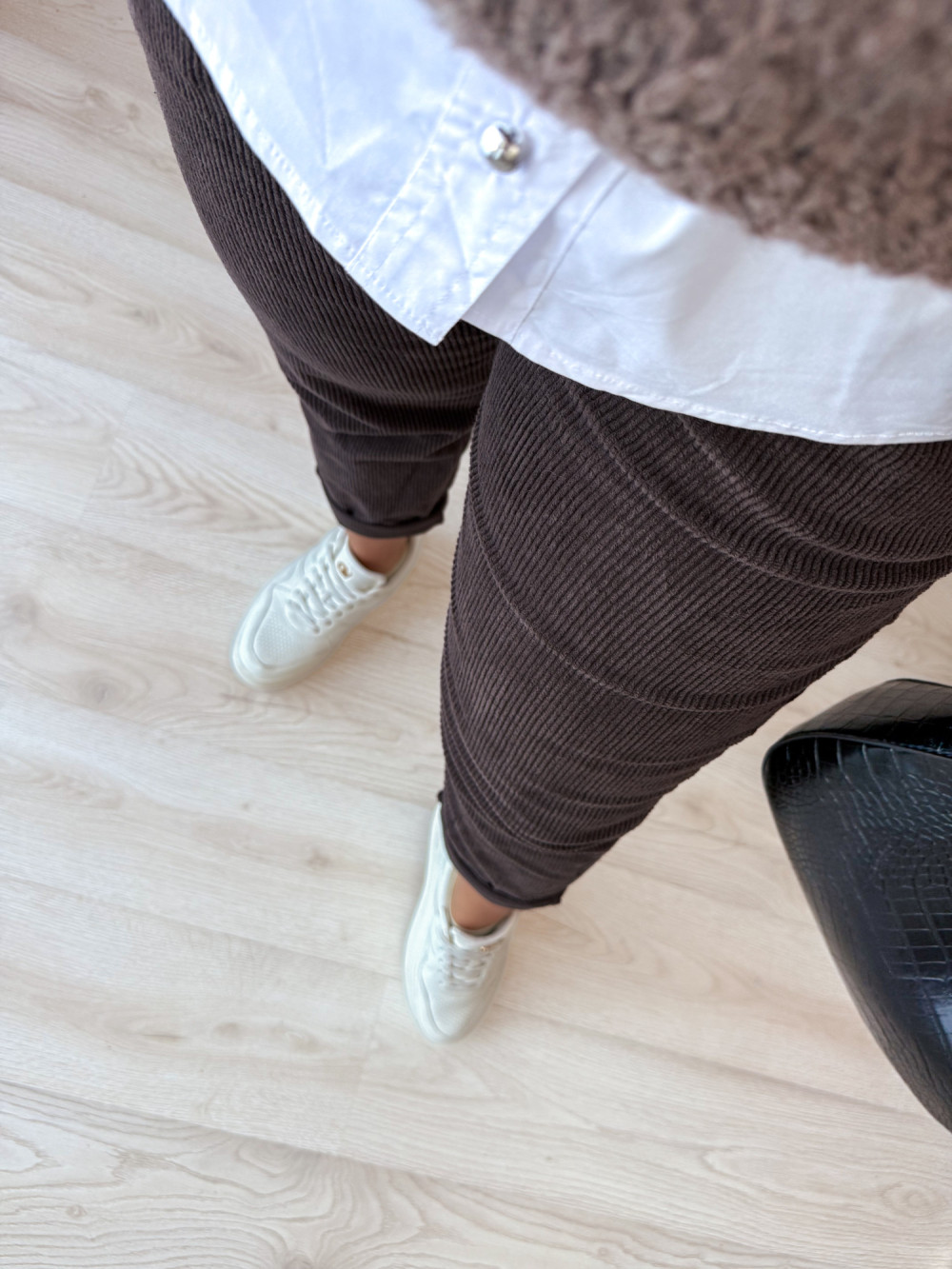 Spodnie sztruksowe mom fit Adelinda - czekolada