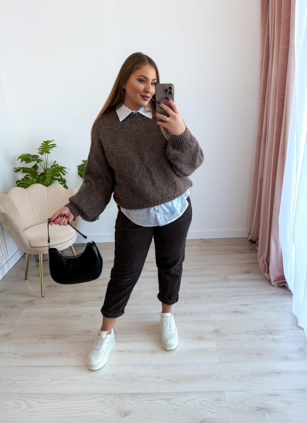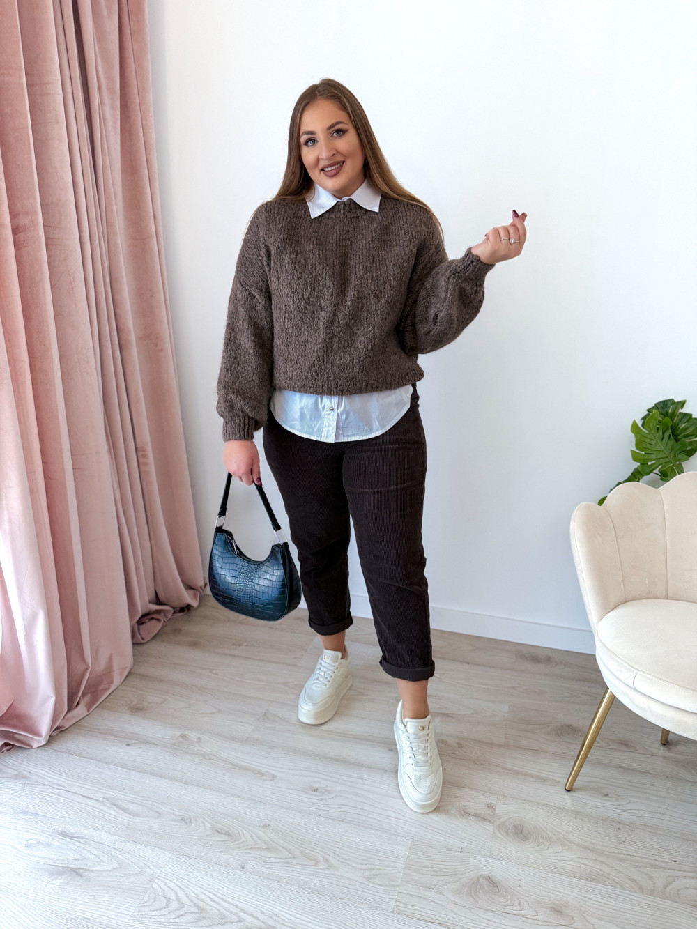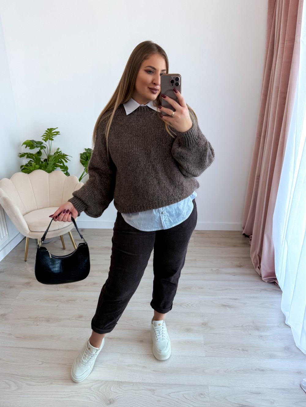 Spodnie sztruksowe mom fit Adelinda - czekolada