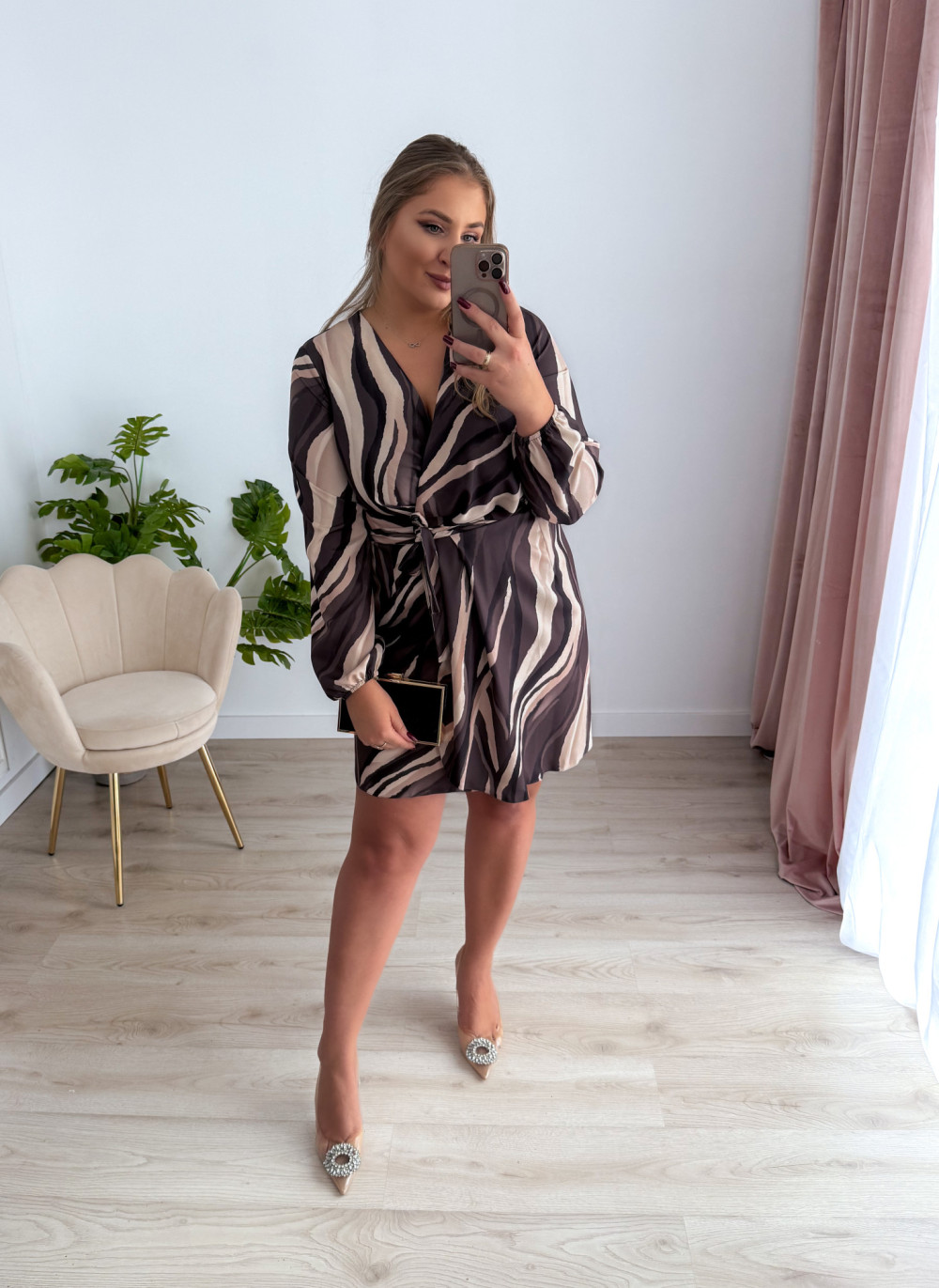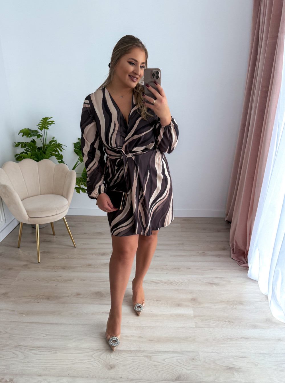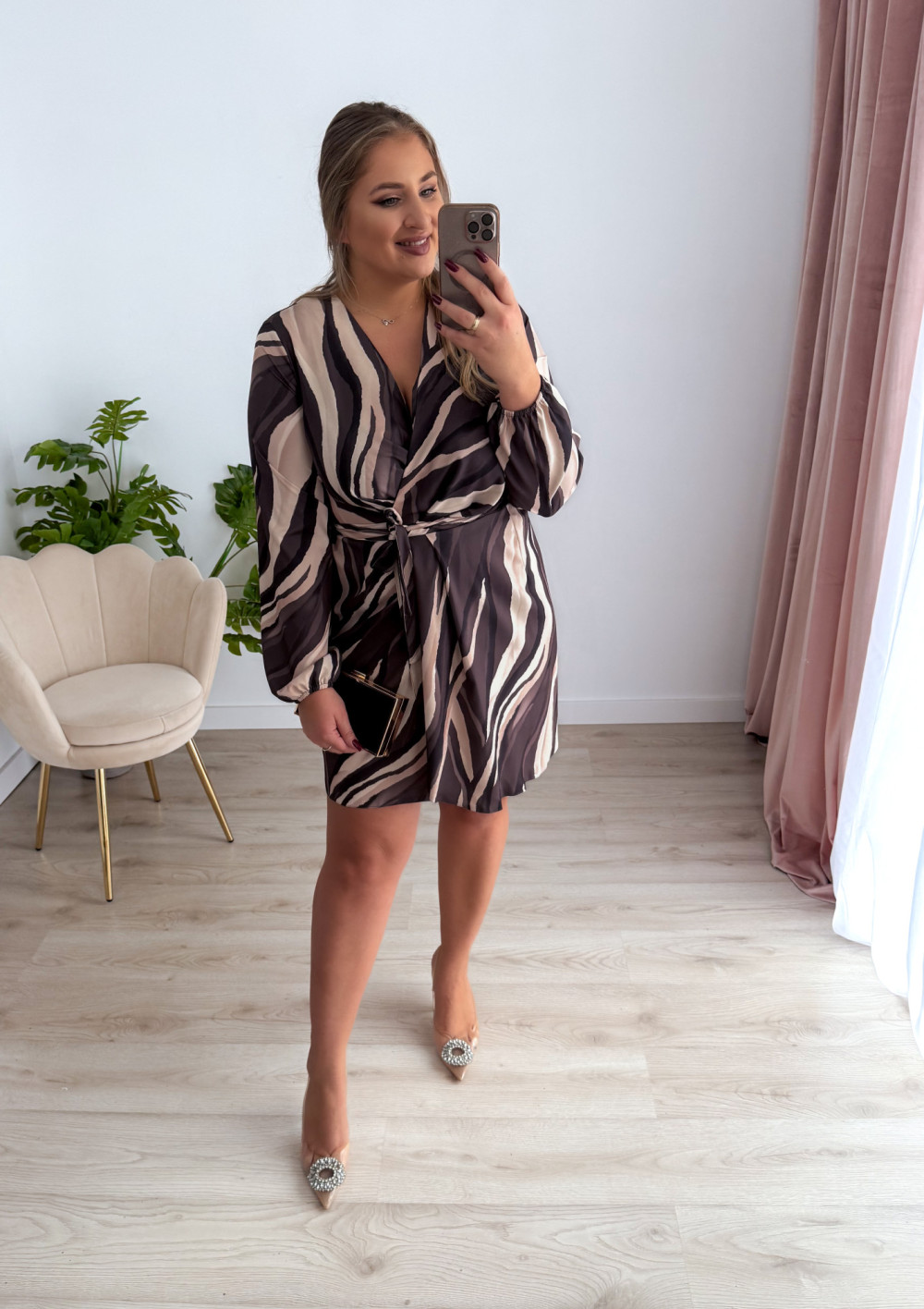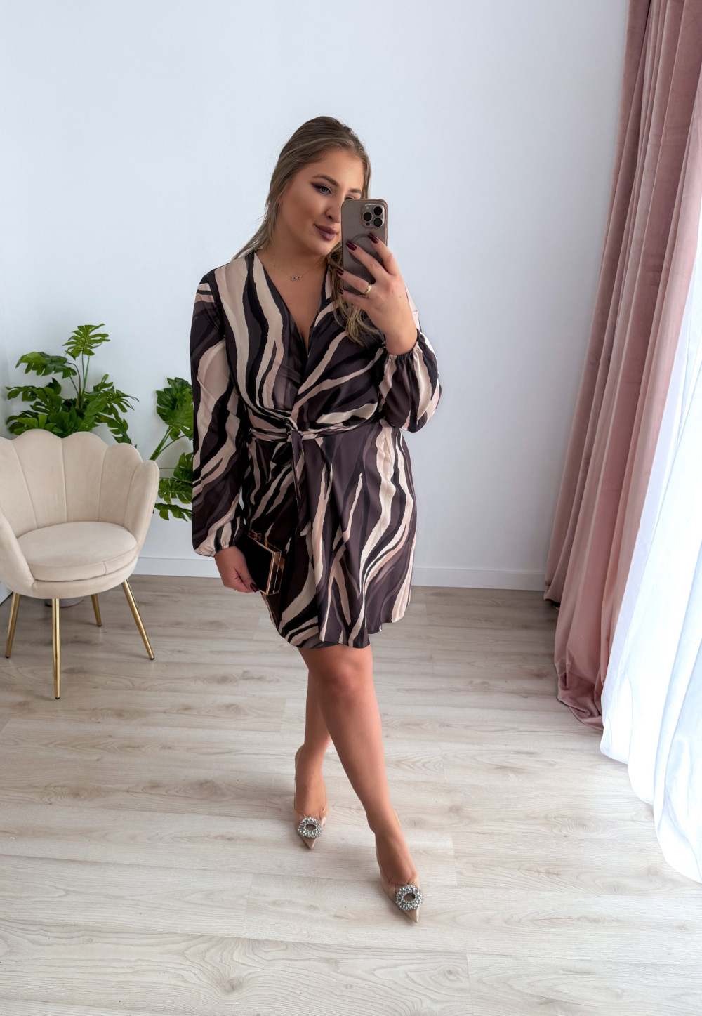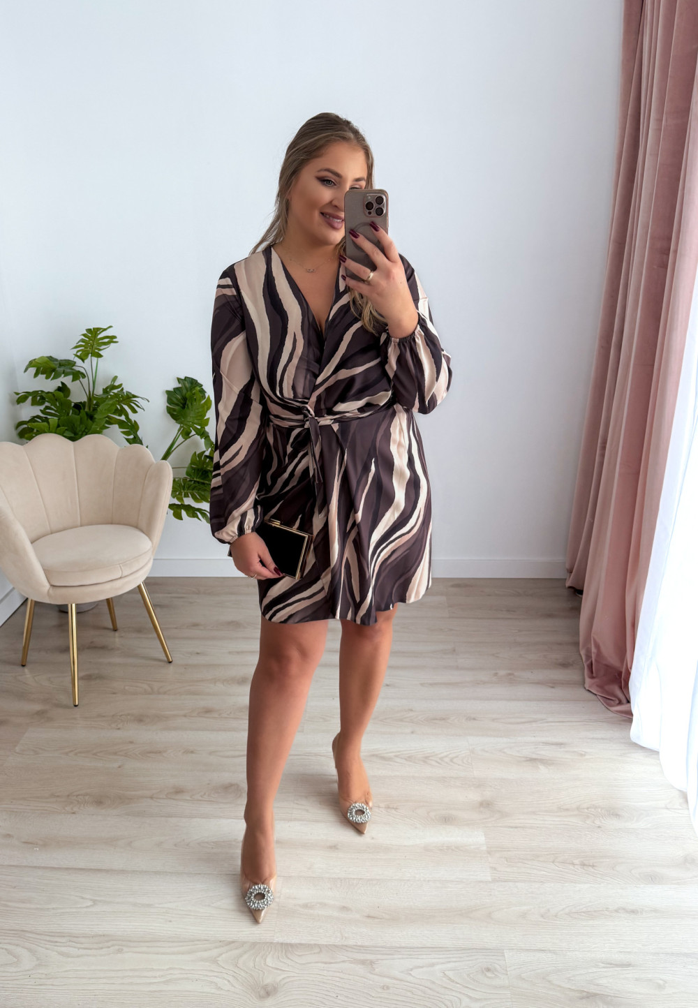 Sukienka wiązana w czekoladowo-beżowe wzory Almeria