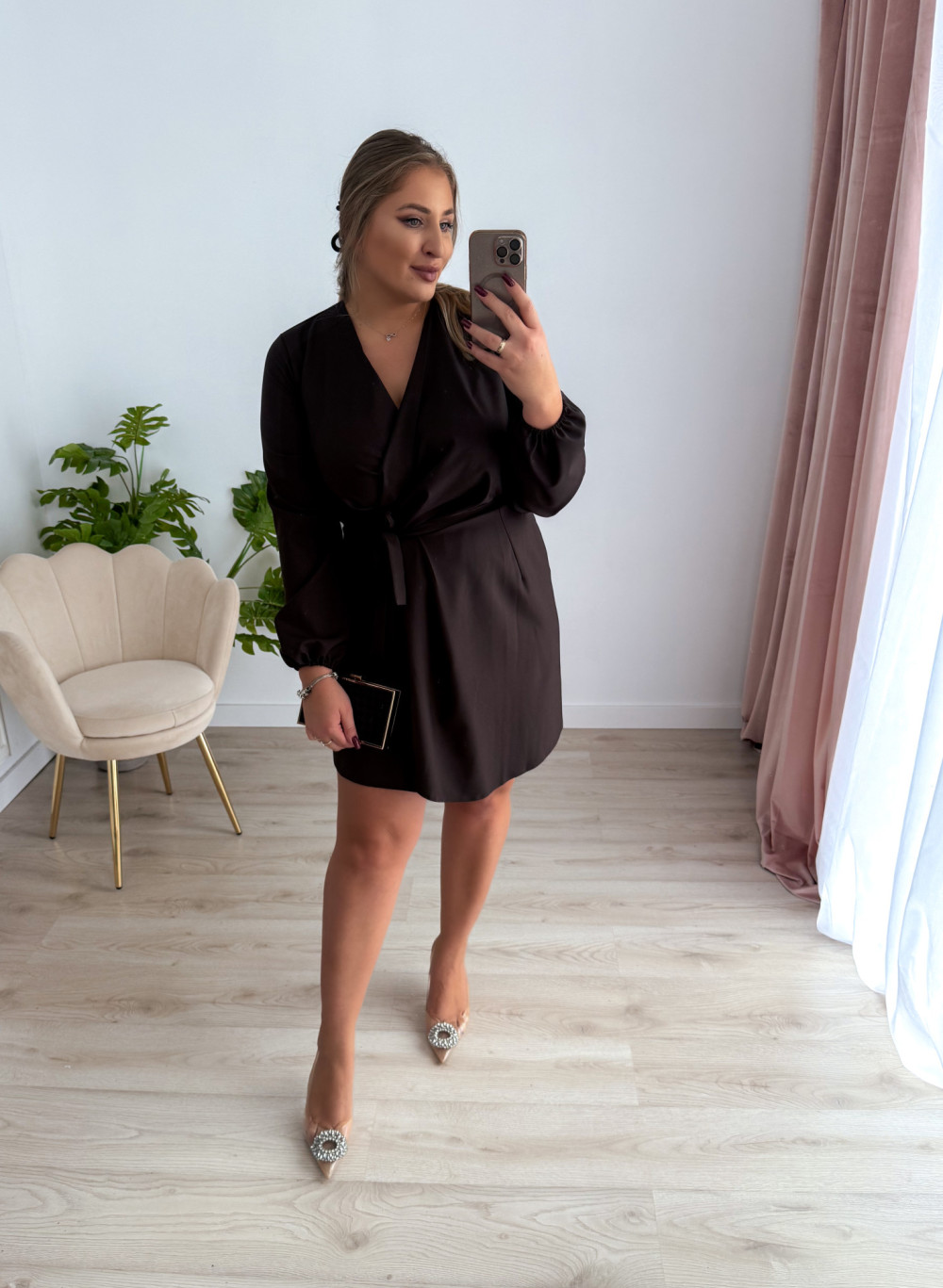- Wiązanie szlafrokowe – dopasujesz sukienkę do swojej figury