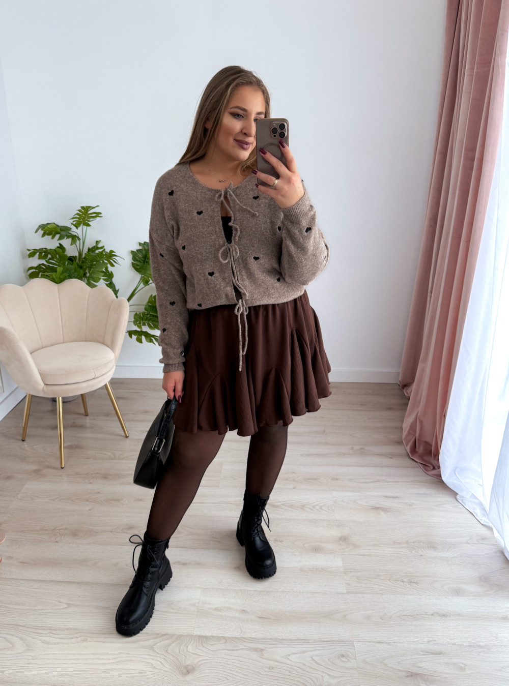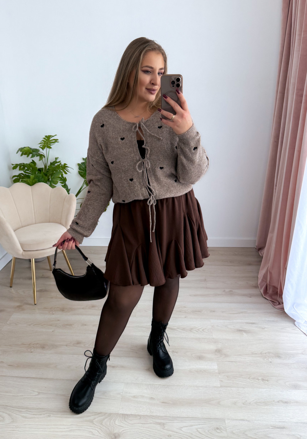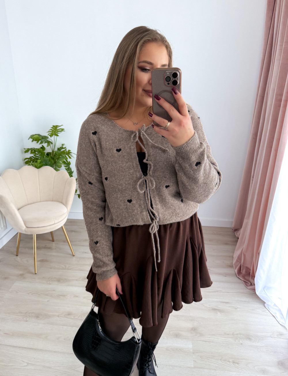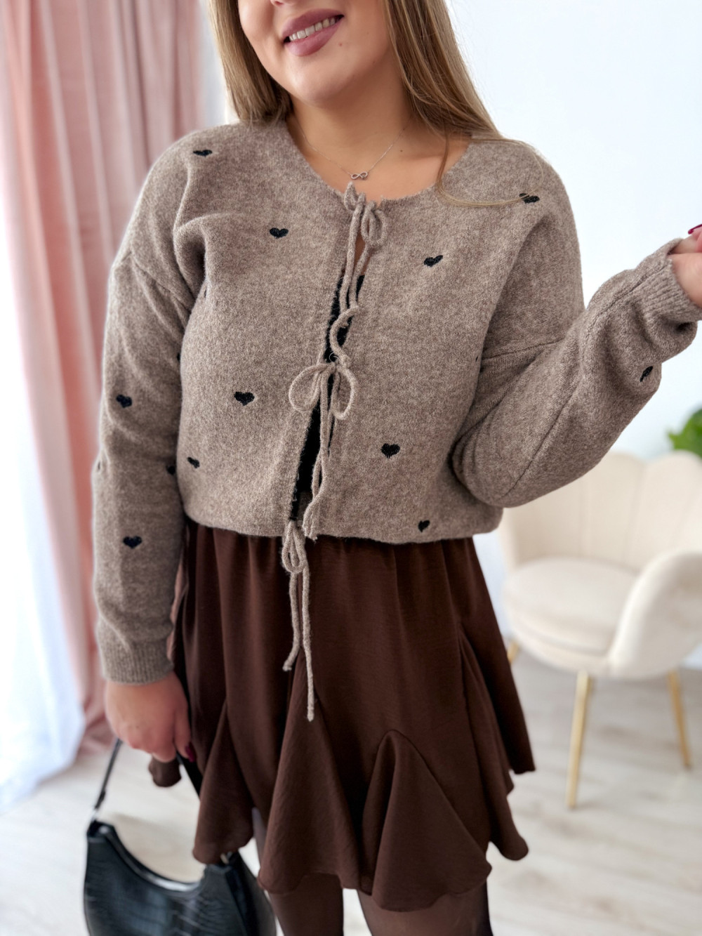 Uroczy sweterek zawiązywany z wyszywanymi serduszkami to idealny wybór dla kobiet, które cenią sobie subtelne detale i romantyczny styl. Miękki, przyjemny w dotyku materiał otula ciało, zapewniając ciepło i wygodę przez cały dzień. Model z wiązaniem pozwala dopasować sweterek do sylwetki, a delikatne wyszywane serduszka dodają mu dziewczęcego uroku. Doskonale sprawdzi się zarówno w codziennych stylizacjach, jak i w bardziej eleganckich zestawach.