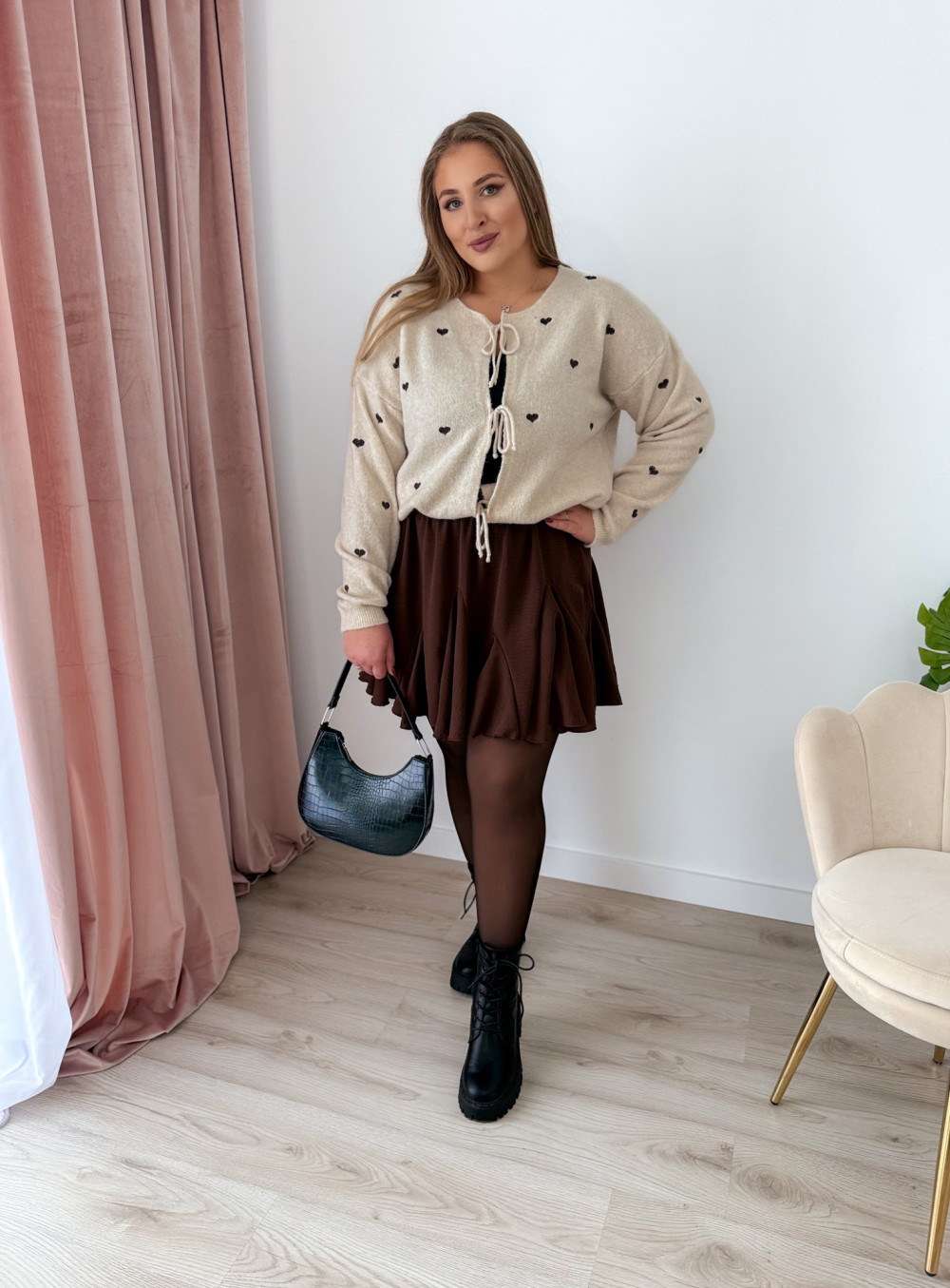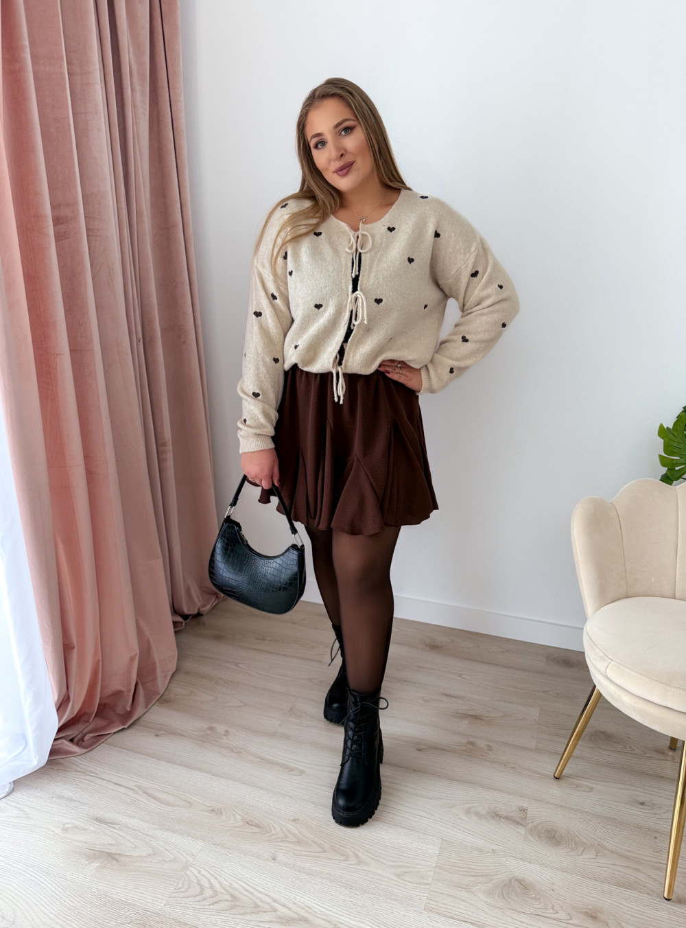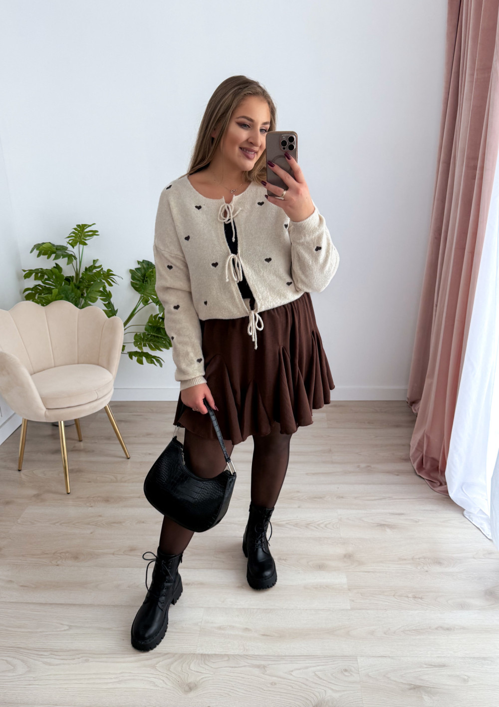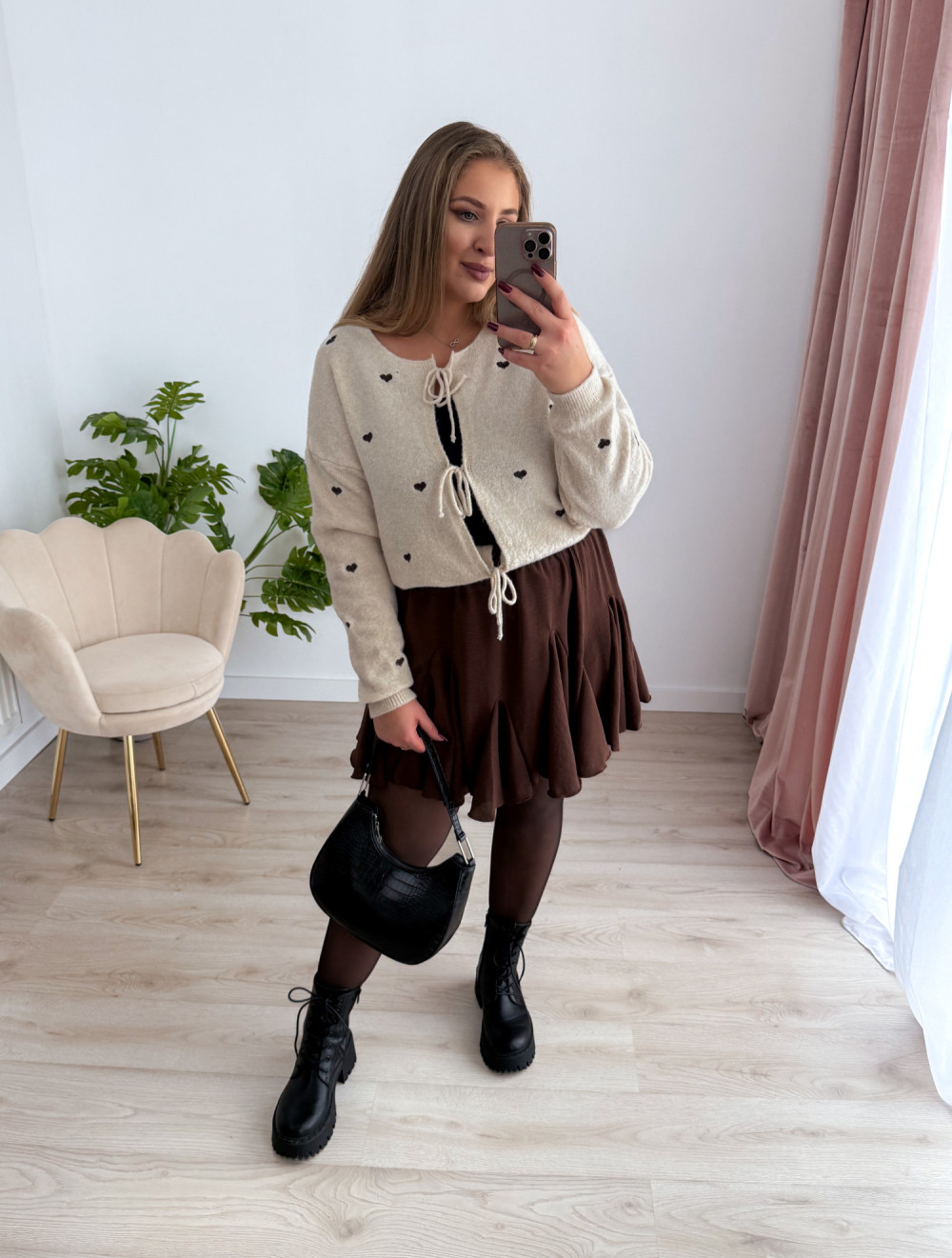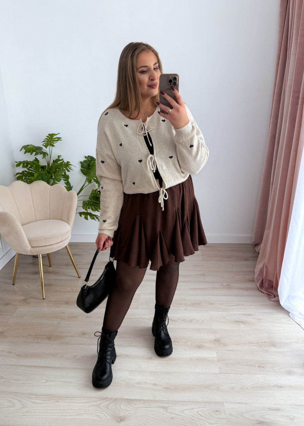 Uroczy sweterek zawiązywany z wyszywanymi serduszkami to idealny wybór dla kobiet, które cenią sobie subtelne detale i romantyczny styl. Miękki, przyjemny w dotyku materiał otula ciało, zapewniając ciepło i wygodę przez cały dzień. Model z wiązaniem pozwala dopasować sweterek do sylwetki, a delikatne wyszywane serduszka dodają mu dziewczęcego uroku. Doskonale sprawdzi się zarówno w codziennych stylizacjach, jak i w bardziej eleganckich zestawach.