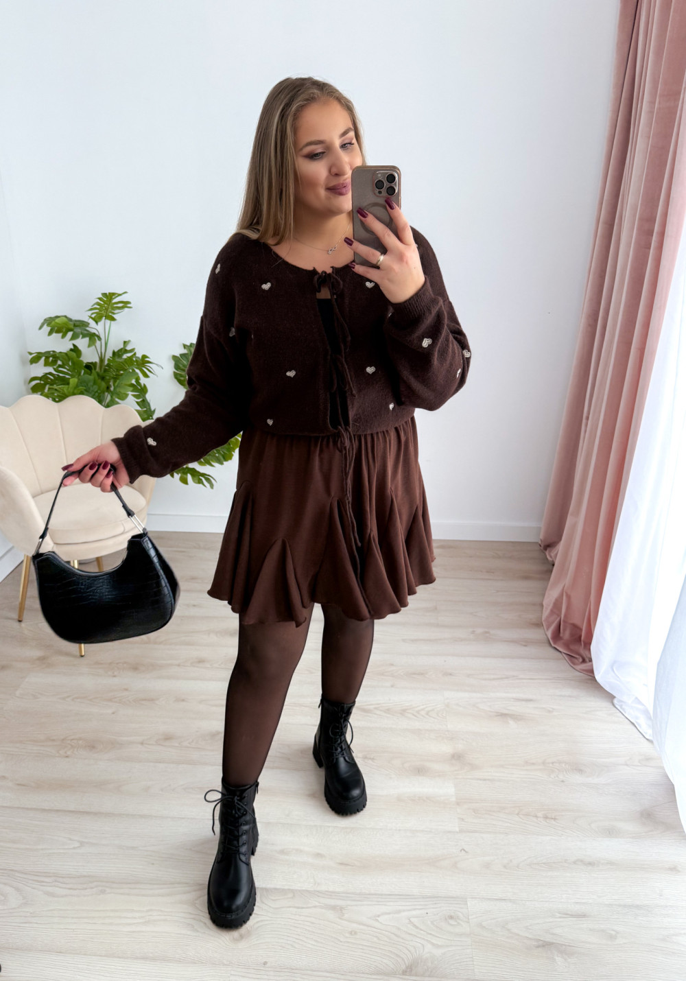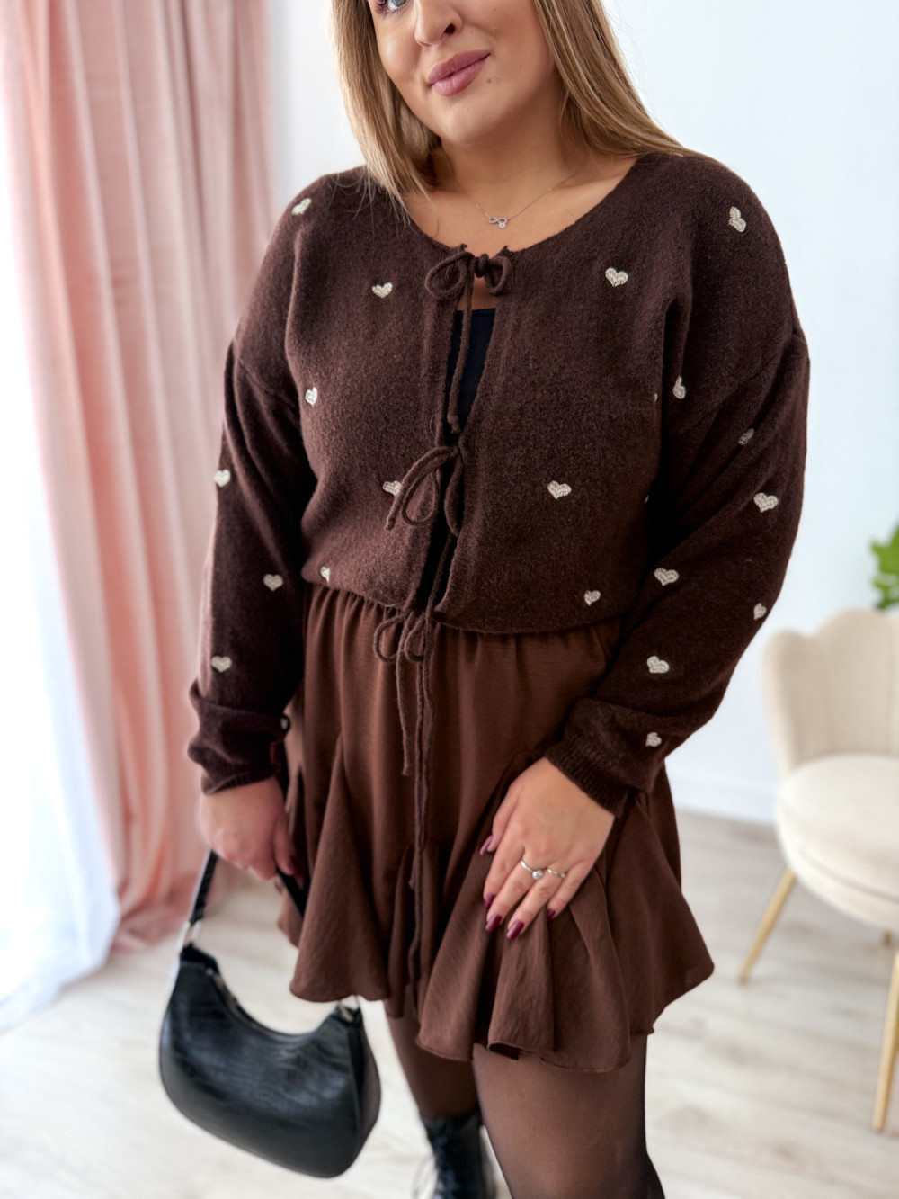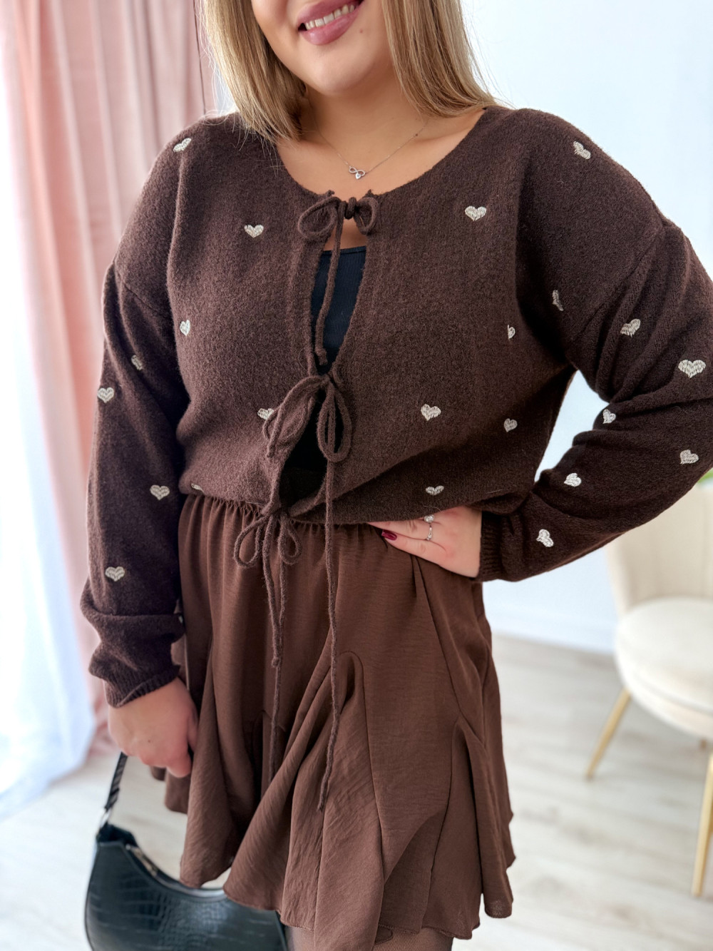 Sweterek wiązywany w serduszka Lovella - czekolada