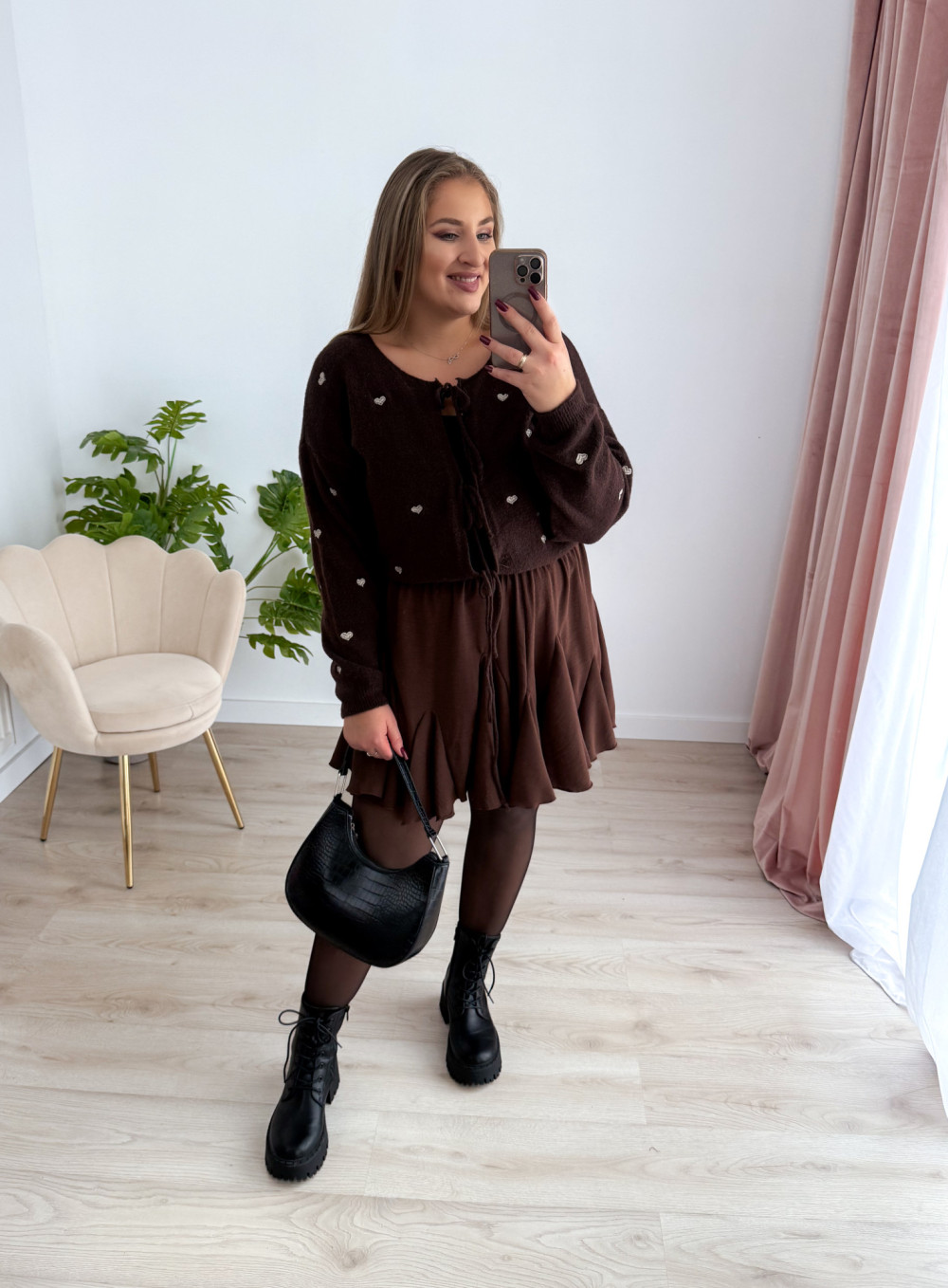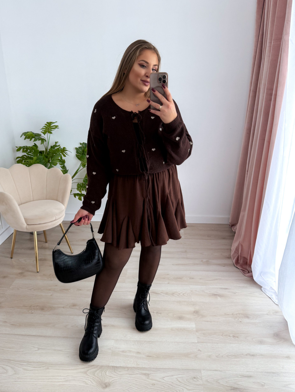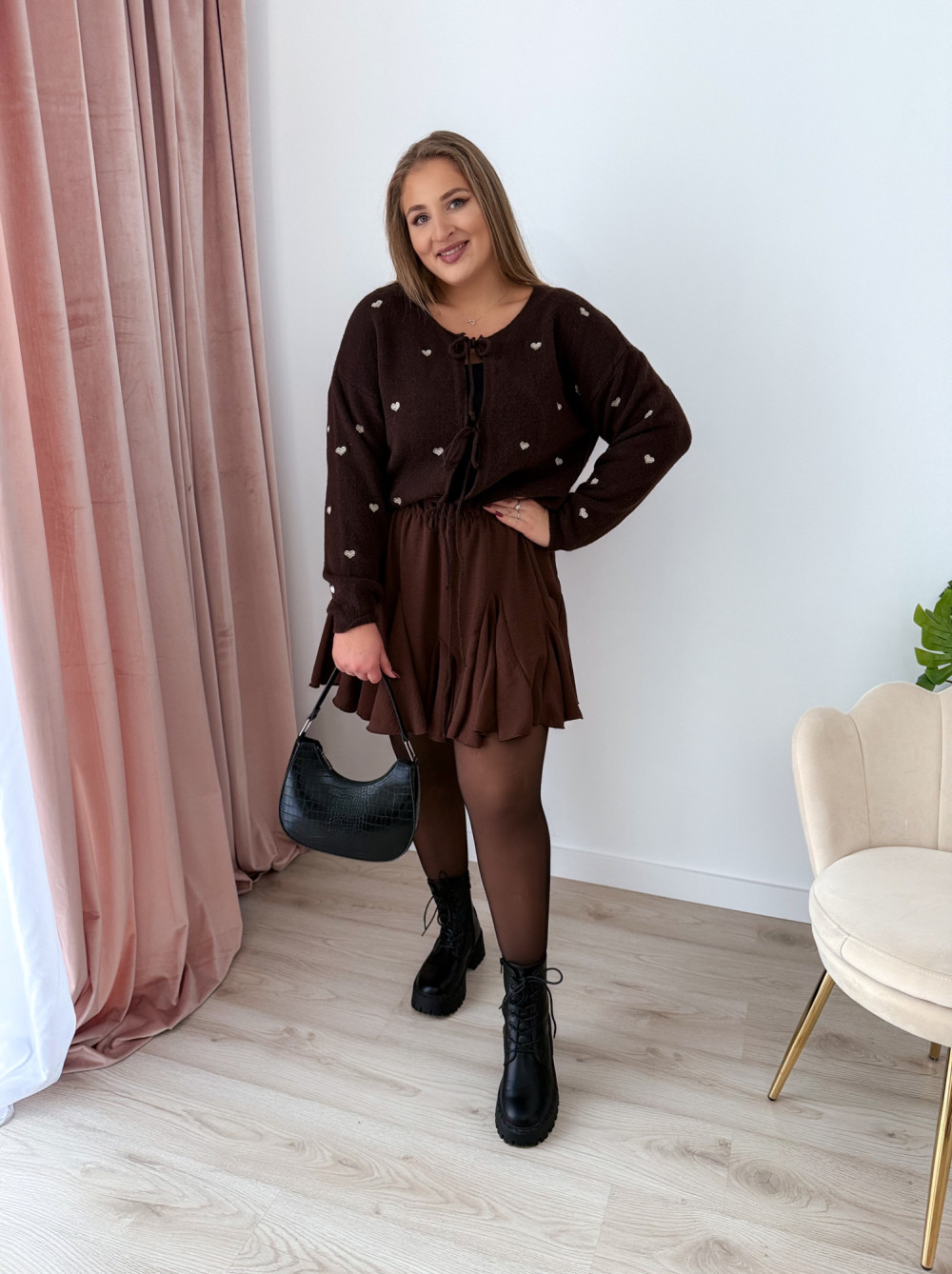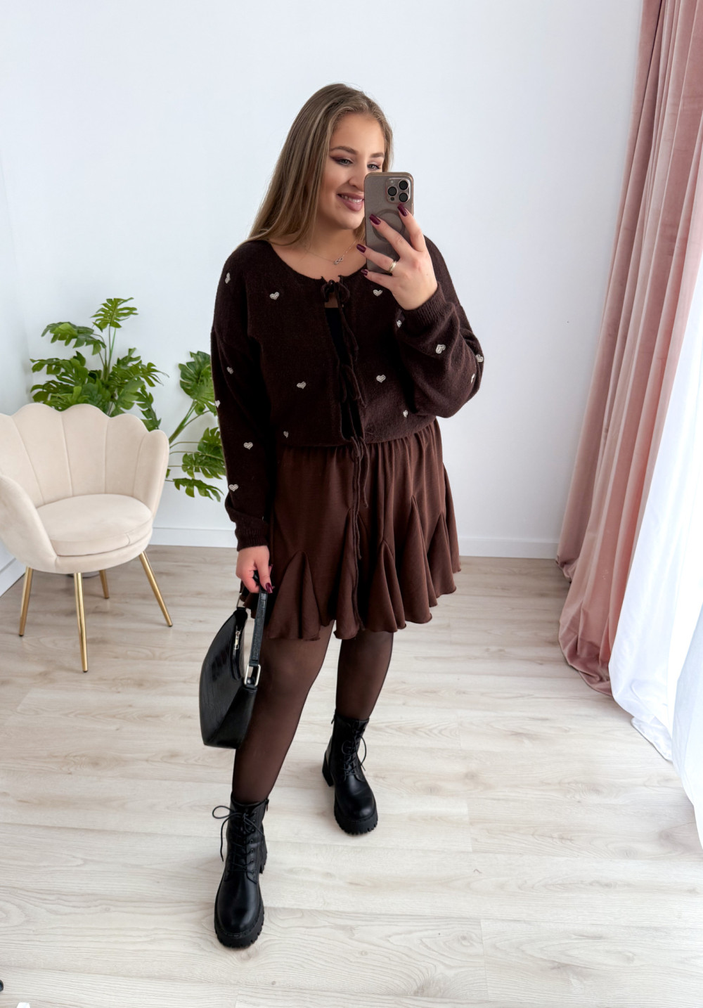 Sweterek wiązywany w serduszka Lovella - czekolada