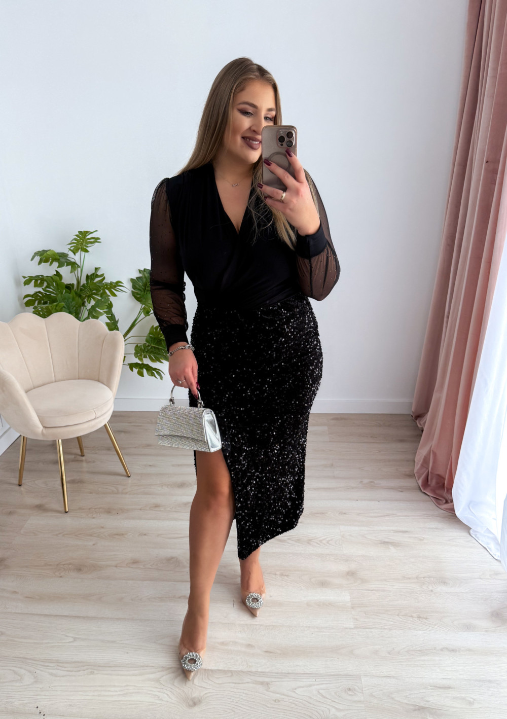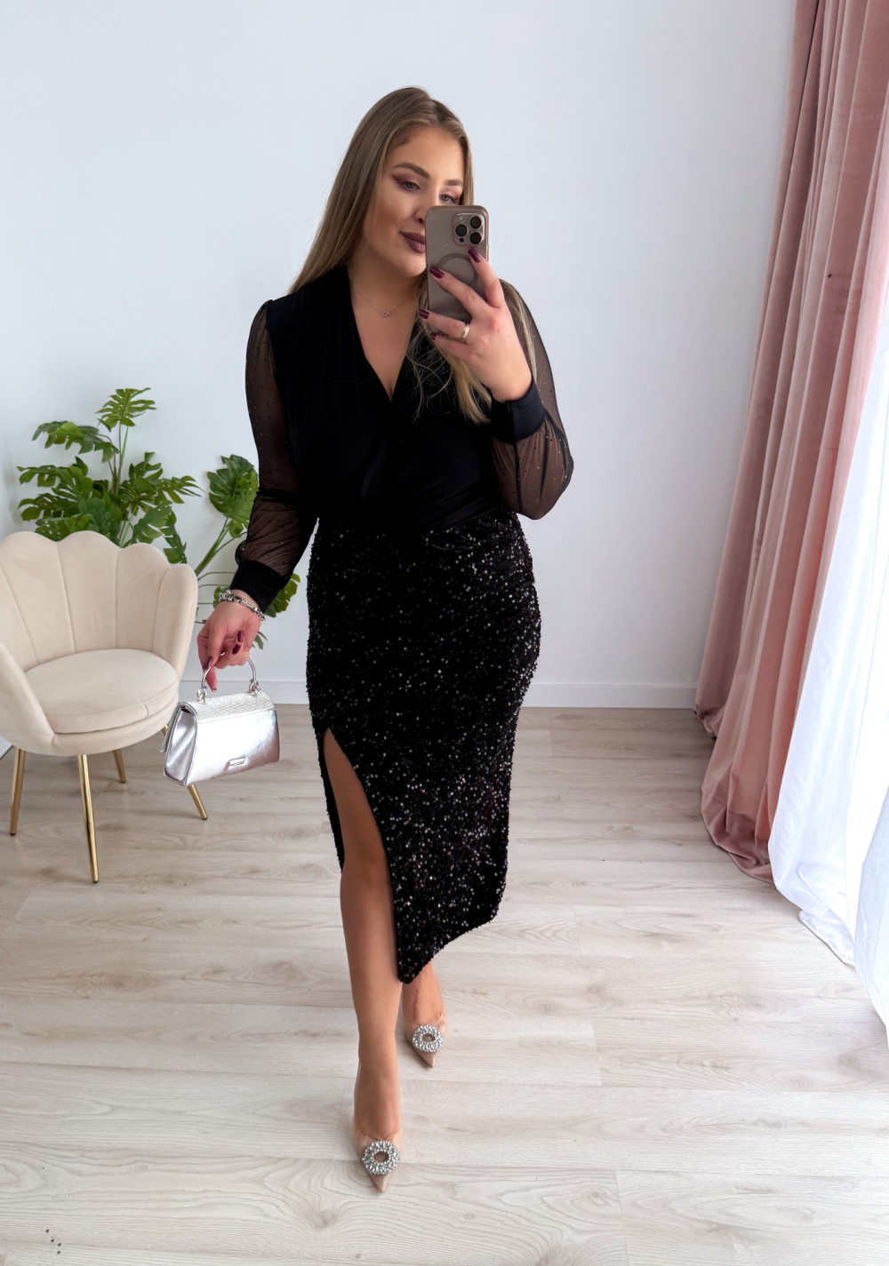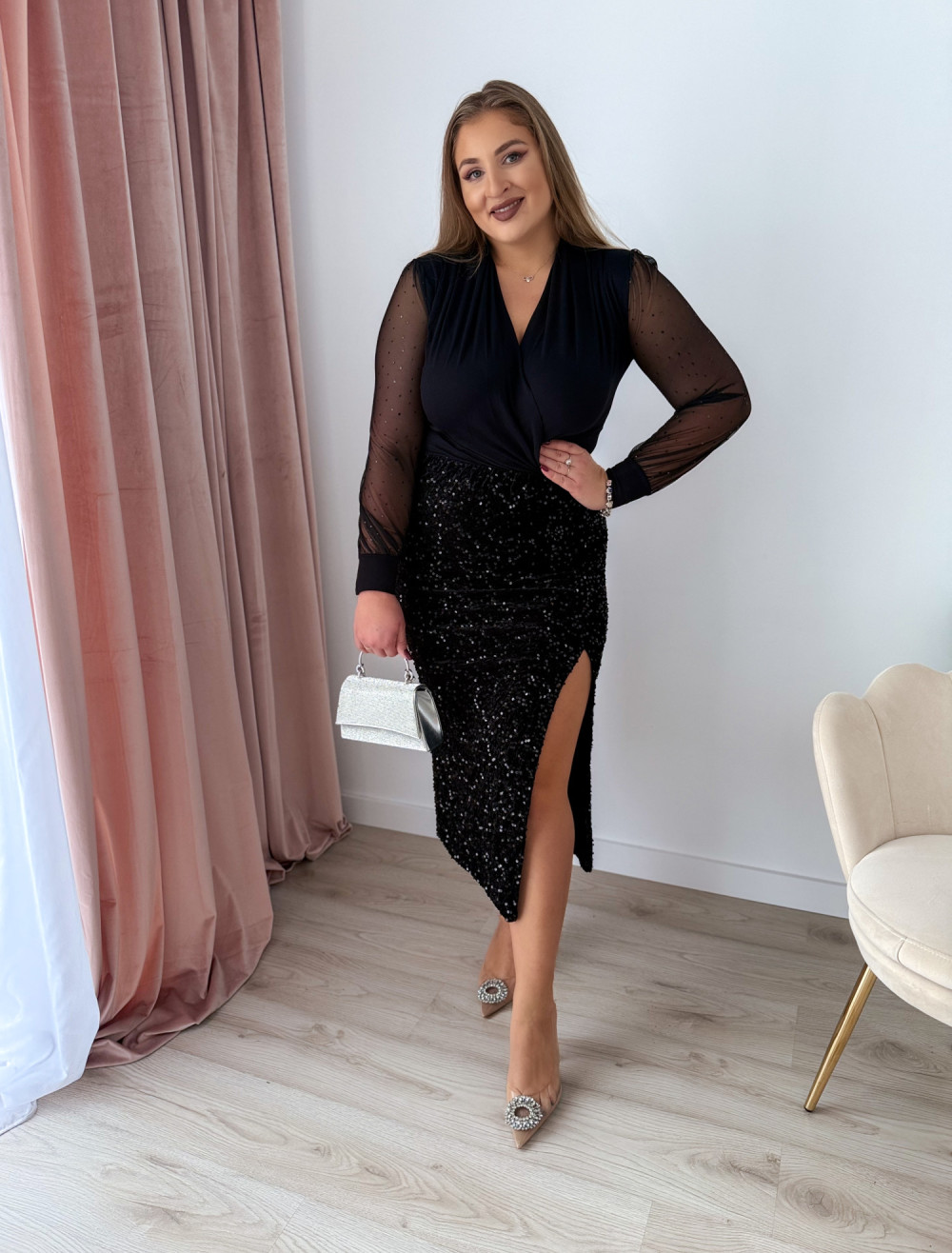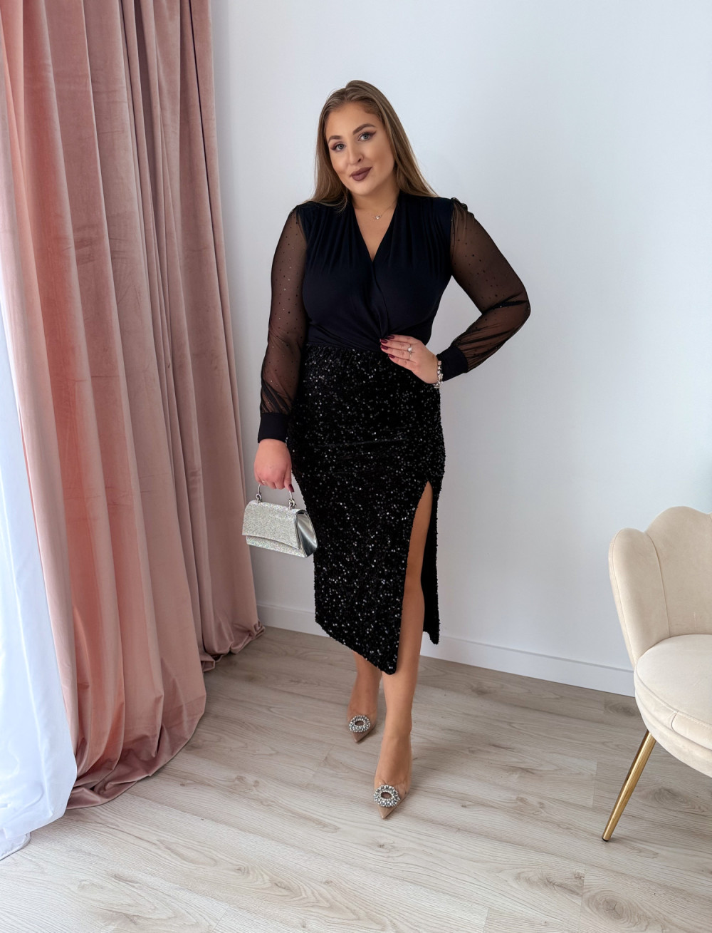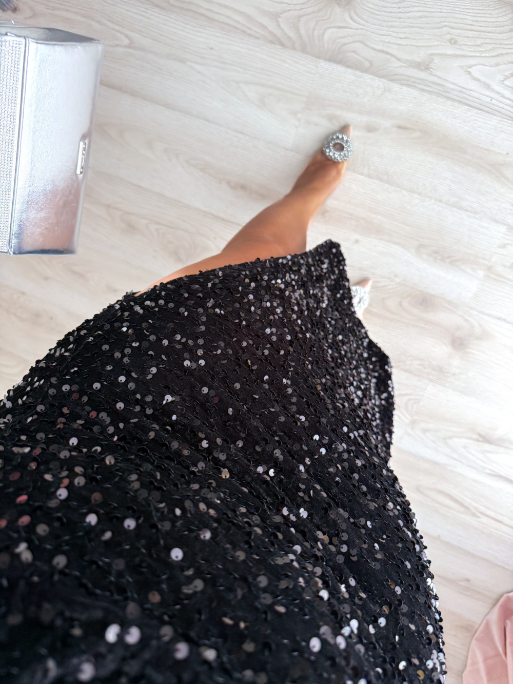 Spódnica midi cekinowa Bling - czarna
