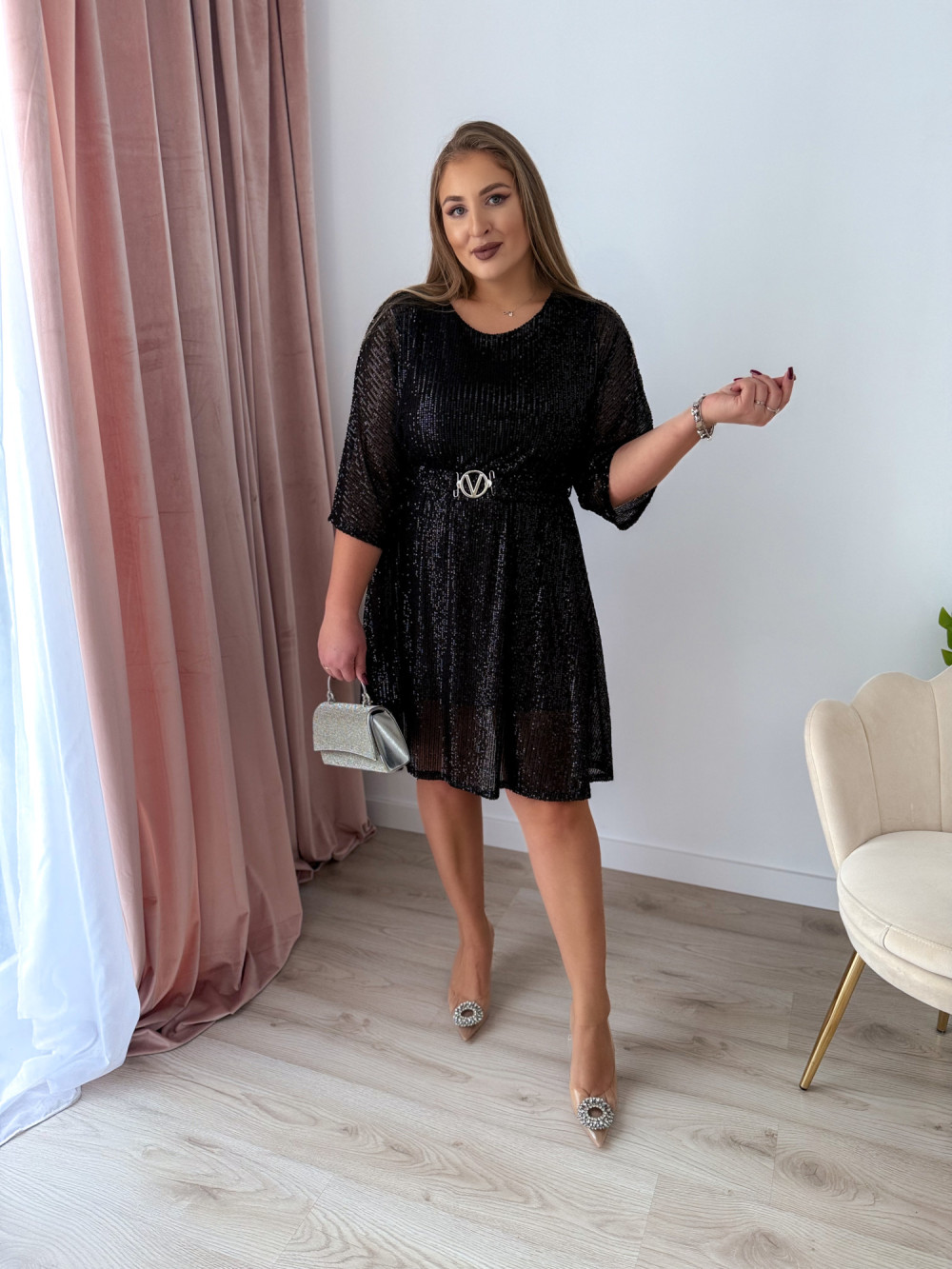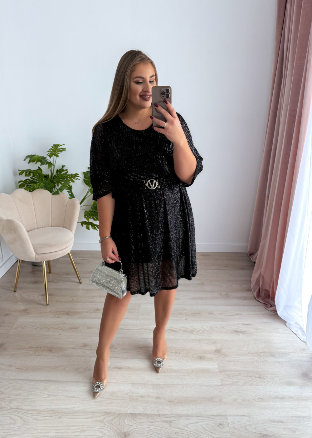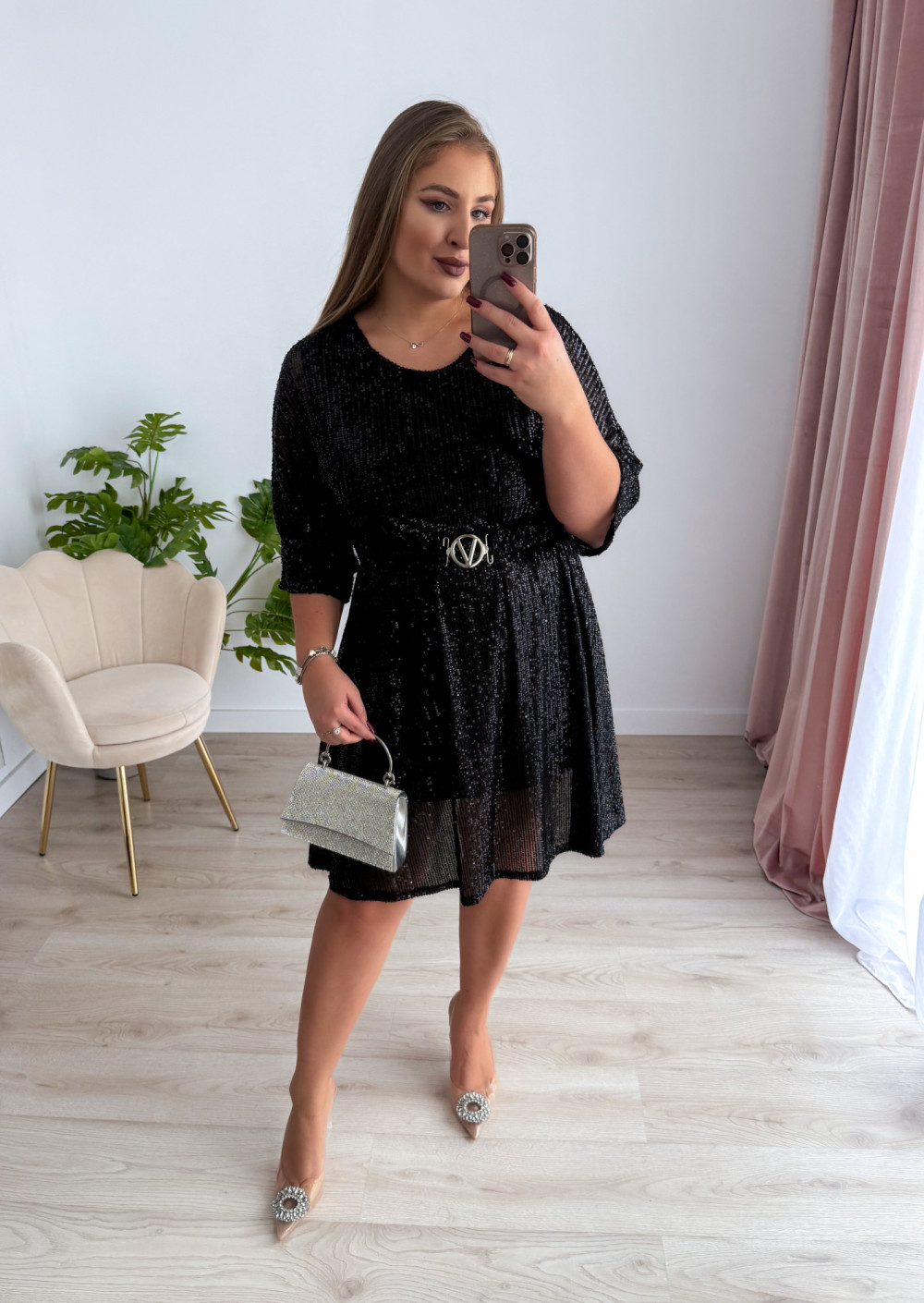 Sukienka cekiny z paskiem w talii Midnight Glow - czarna
