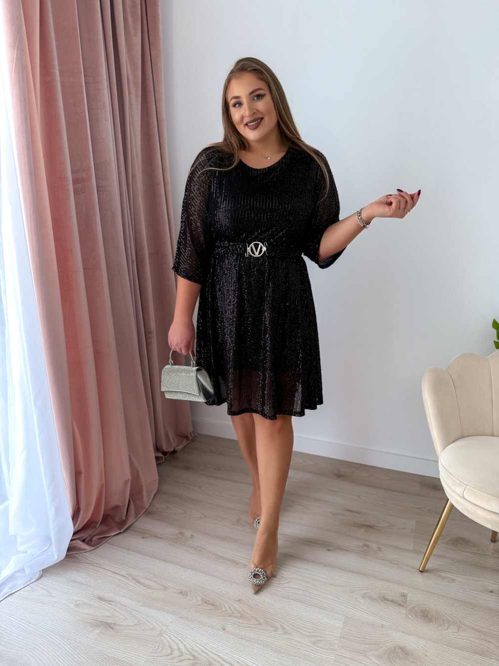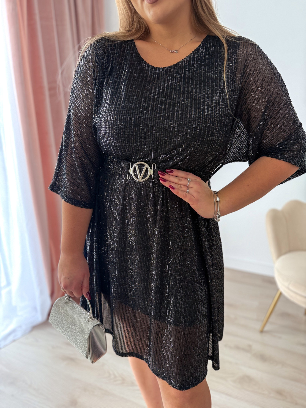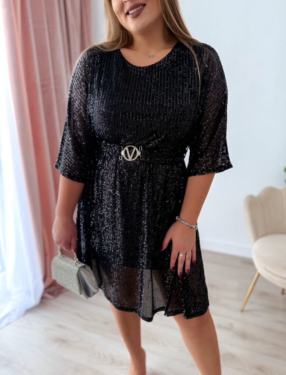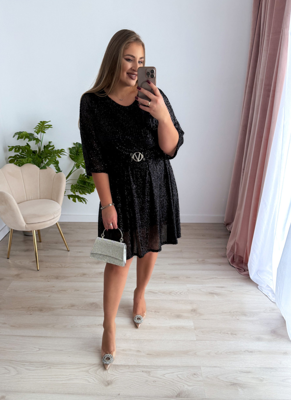 Sukienka cekiny z paskiem w talii Midnight Glow - czarna