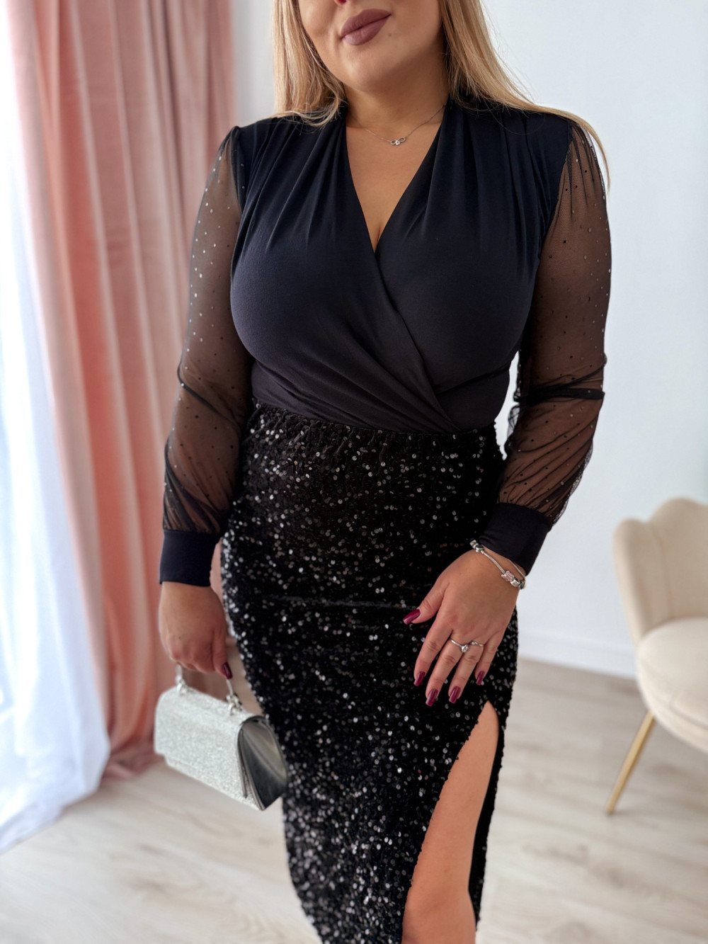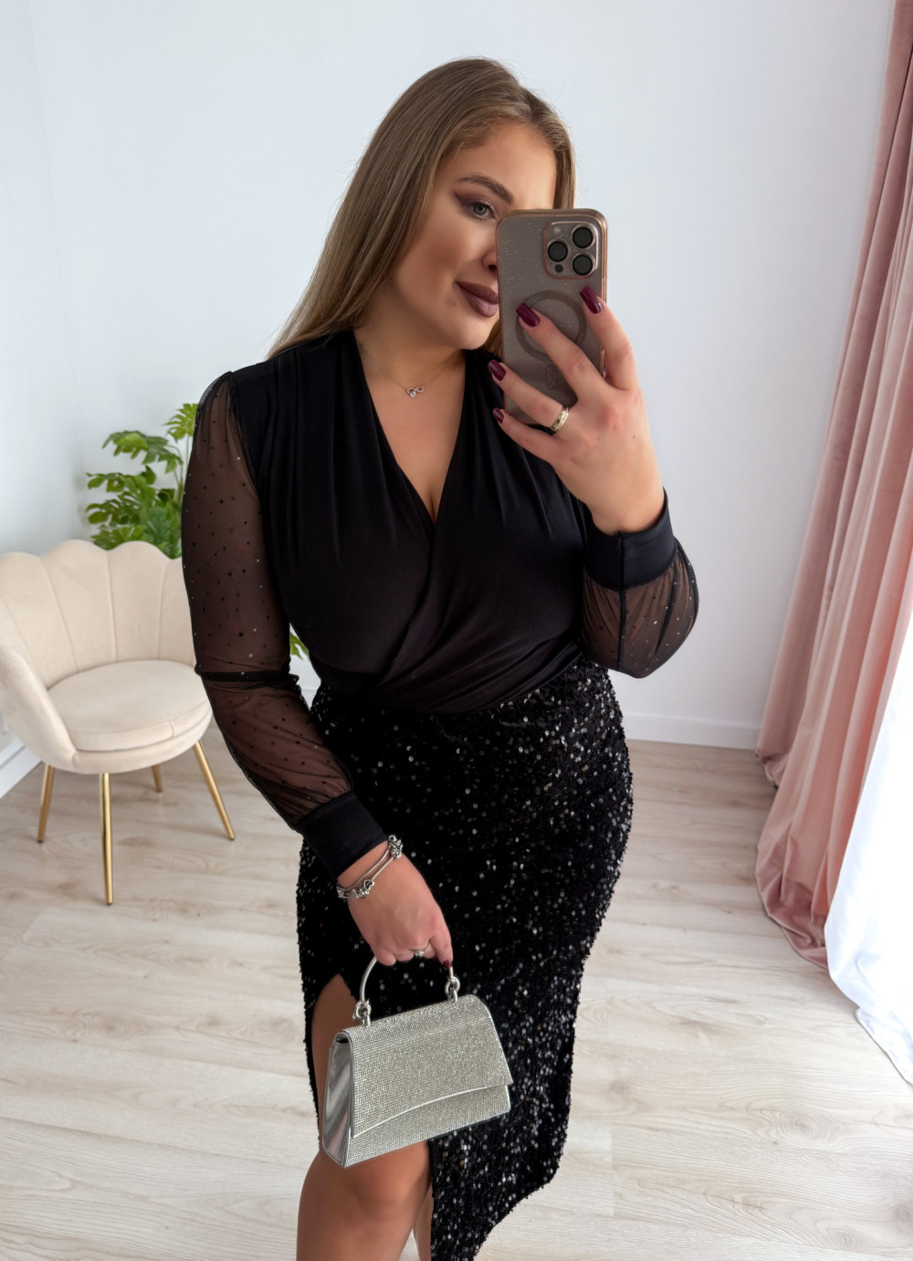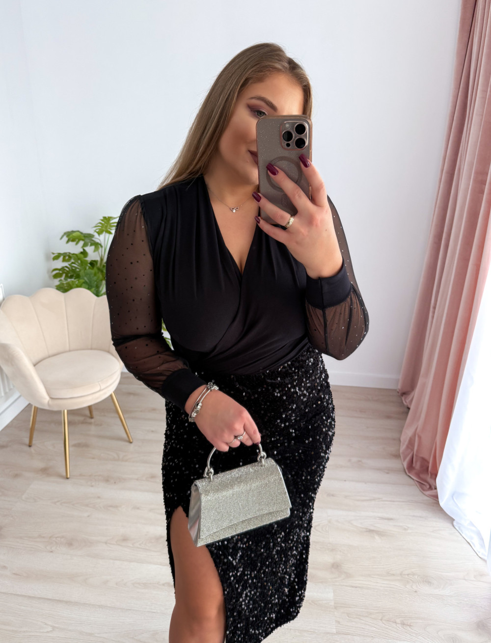 Body z siatkowanymi rękawami Champagne Moment - czarne