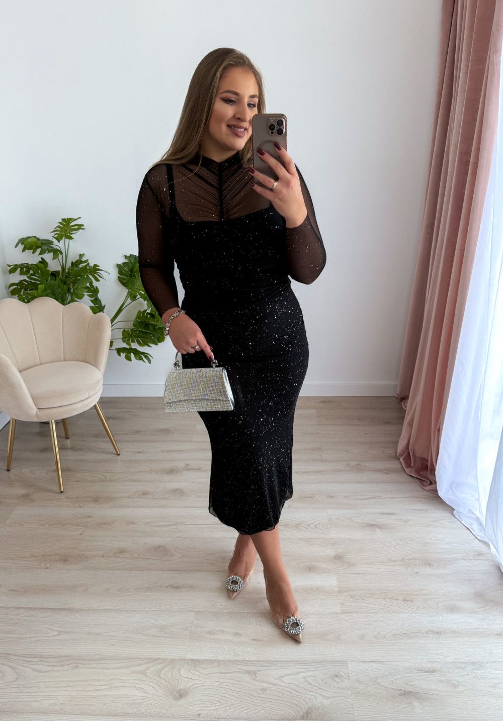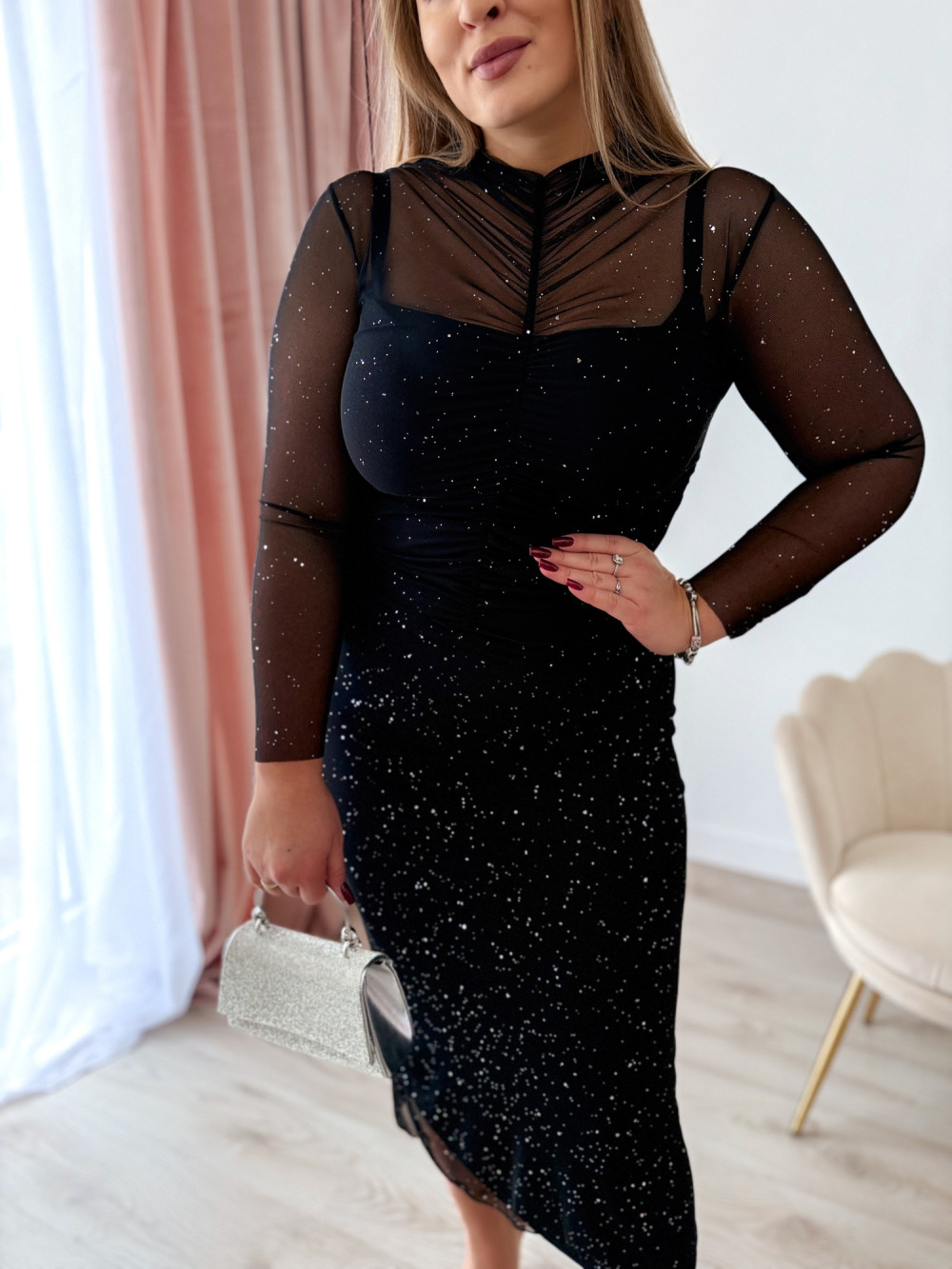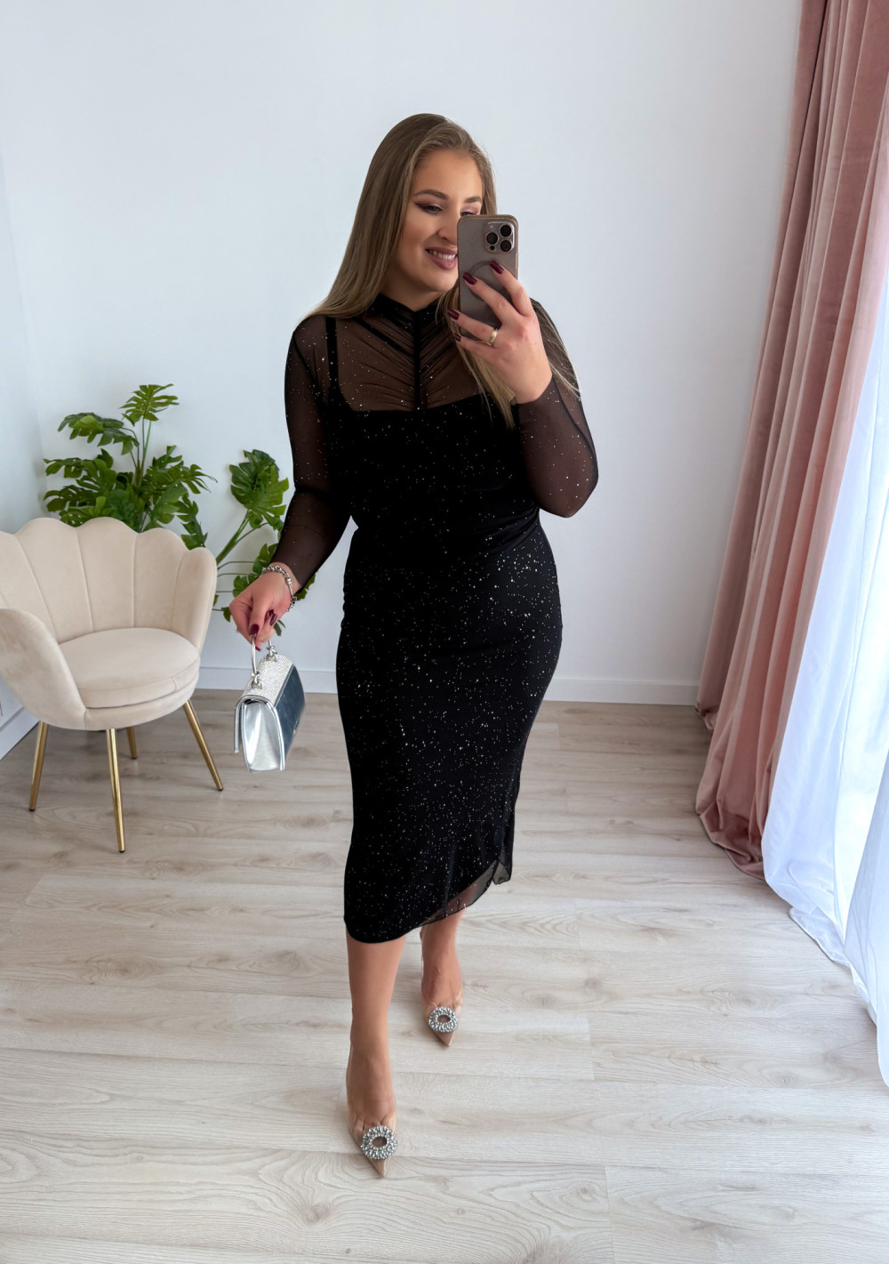Komplet bluzka+spódnica mmidi ze srebrnymi drobinkami Hot Scene - czarny