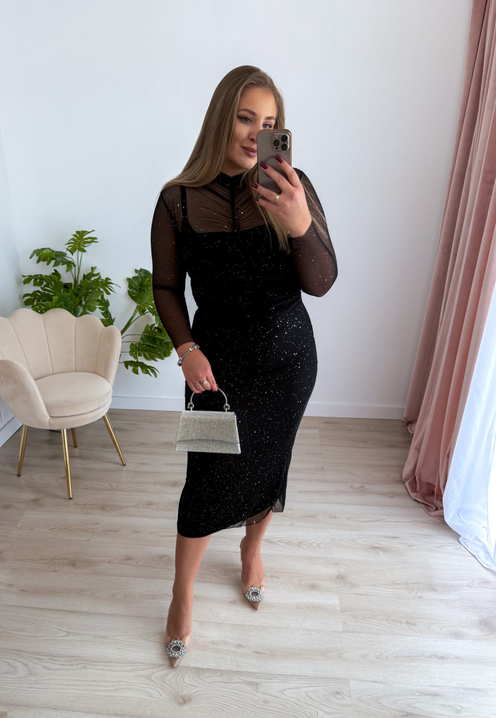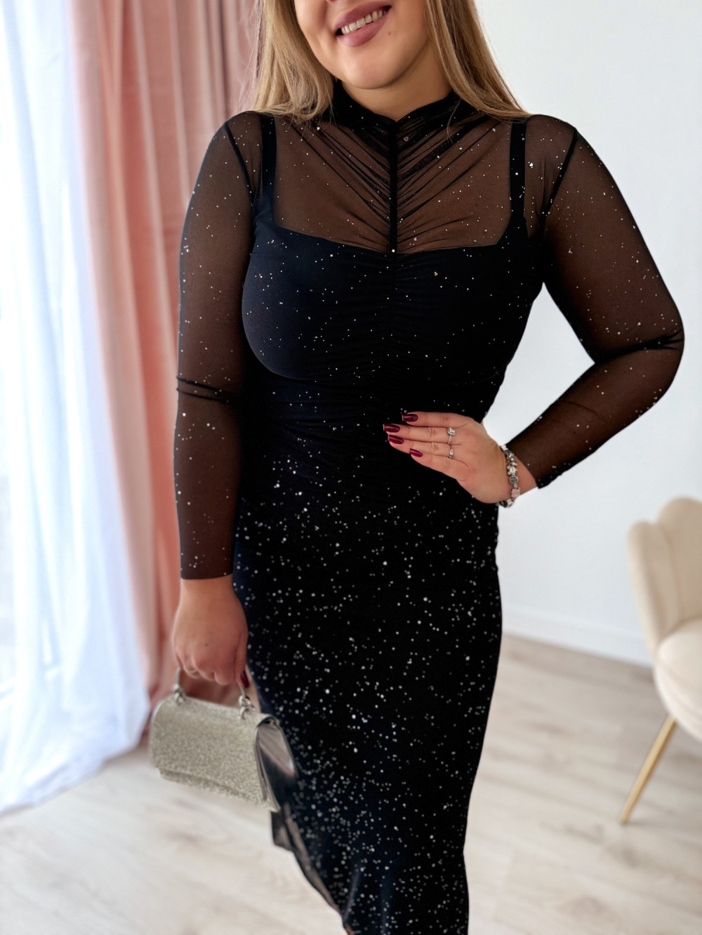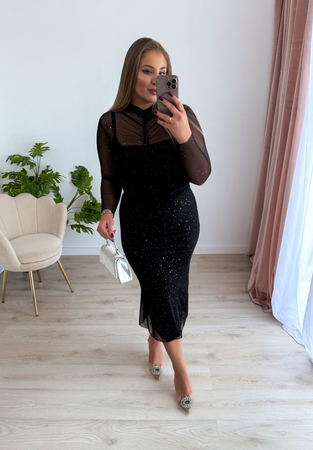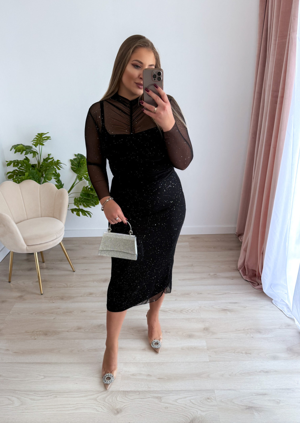 Komplet bluzka+spódnica mmidi ze srebrnymi drobinkami Hot Scene - czarny