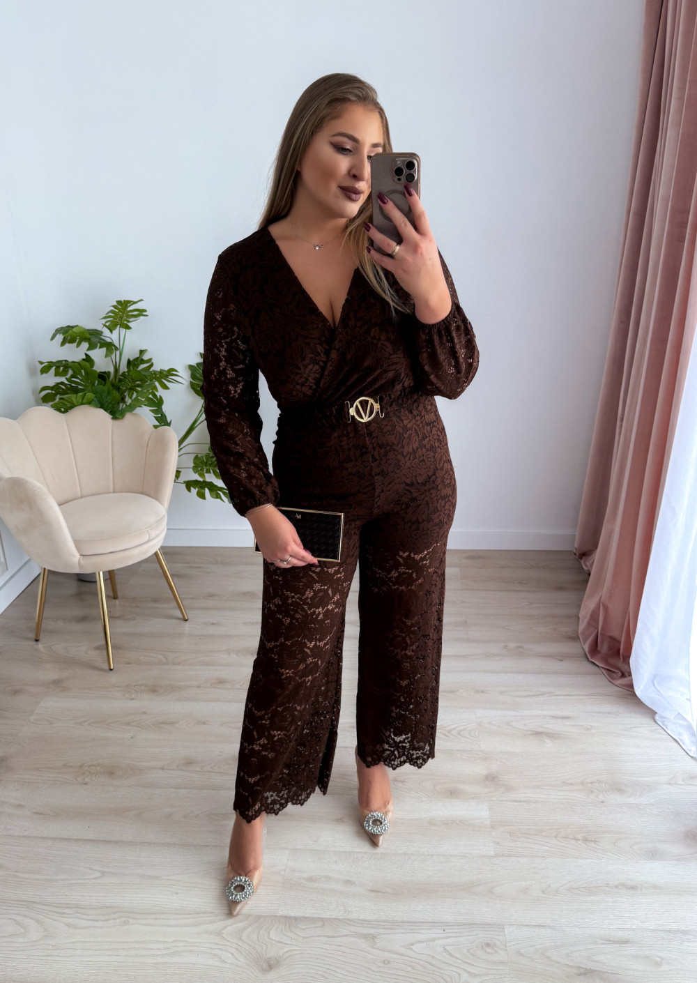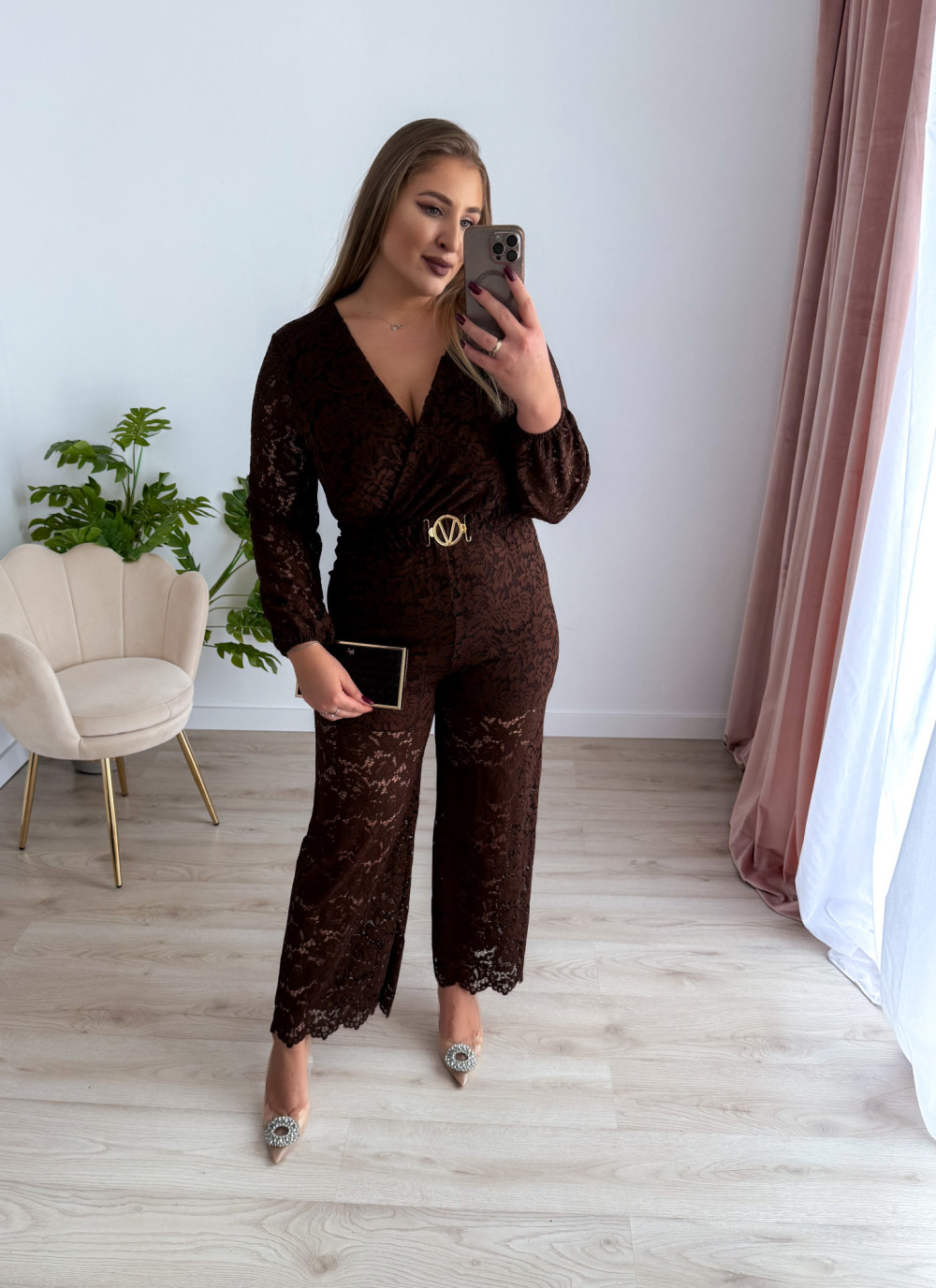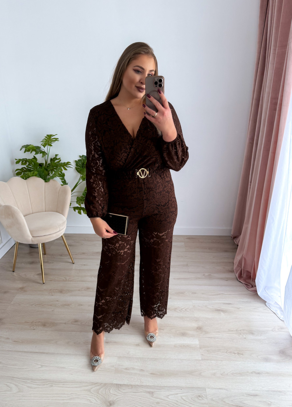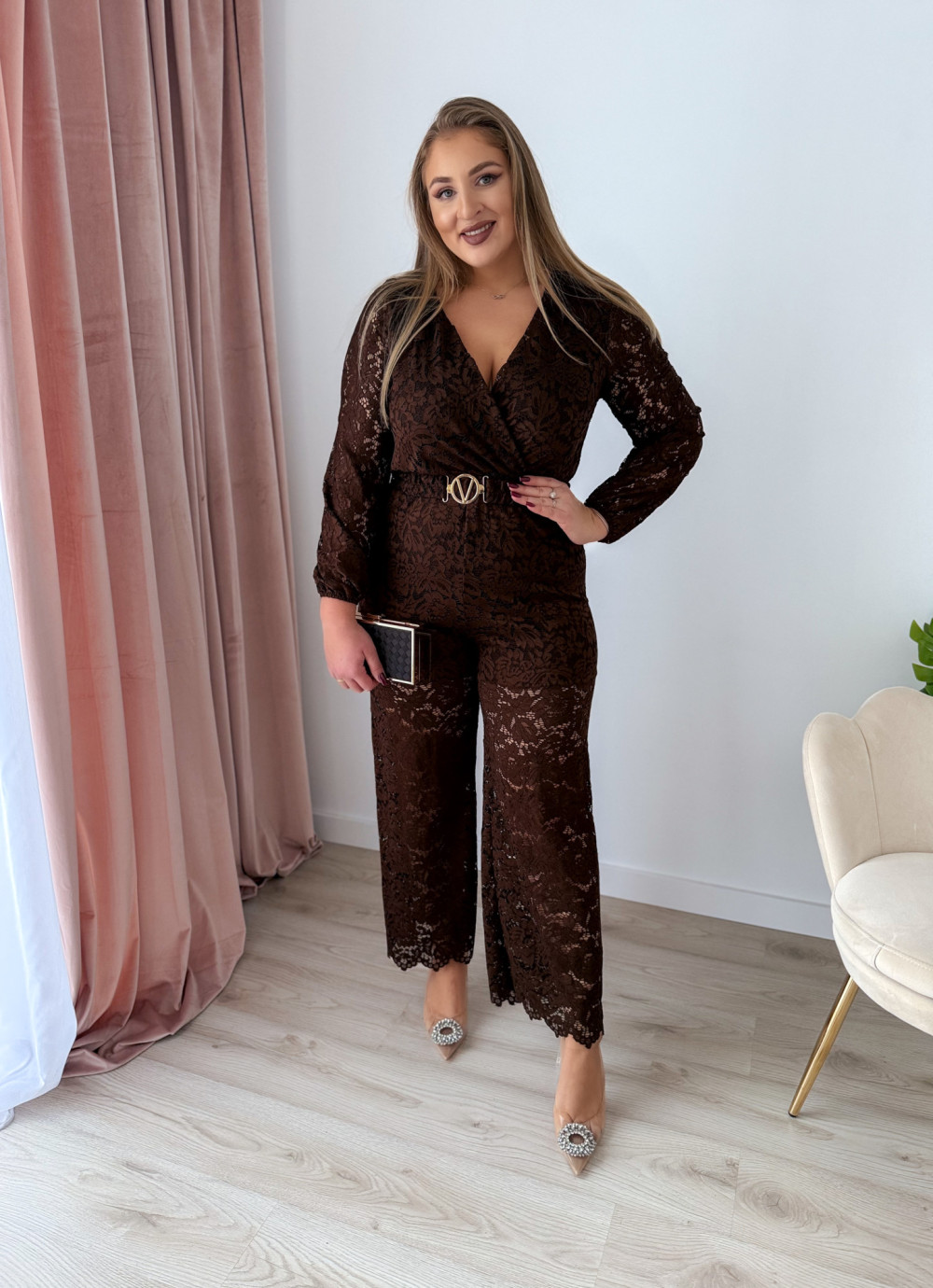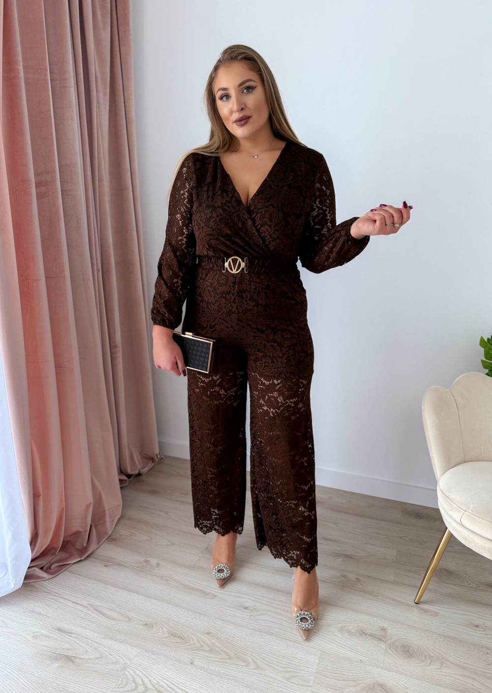 Kombinezon, który łączy elegancję i zmysłowość w perfekcyjnych proporcjach. Idealny na wyjątkowe okazje, wieczorne wyjścia czy uroczystości. Kobieca koronka i dopasowany krój sprawią, że poczujesz się wyjątkowo i pełna klasy.