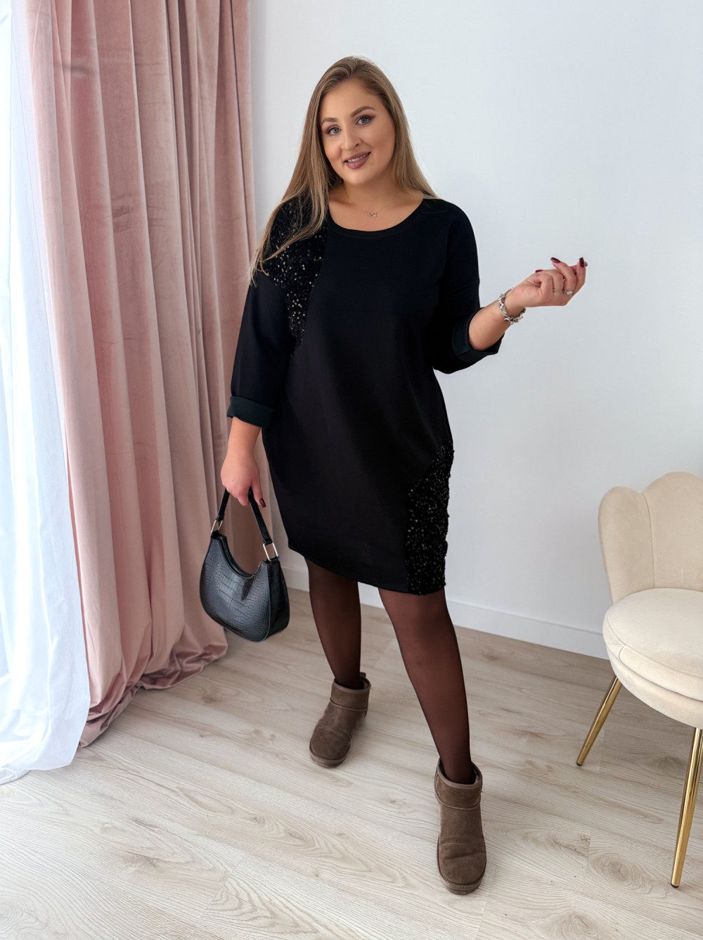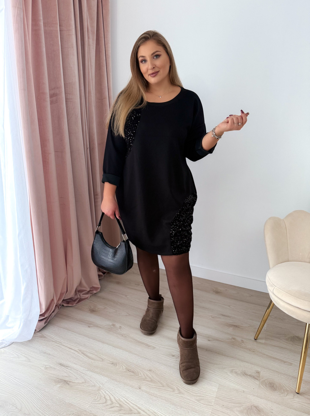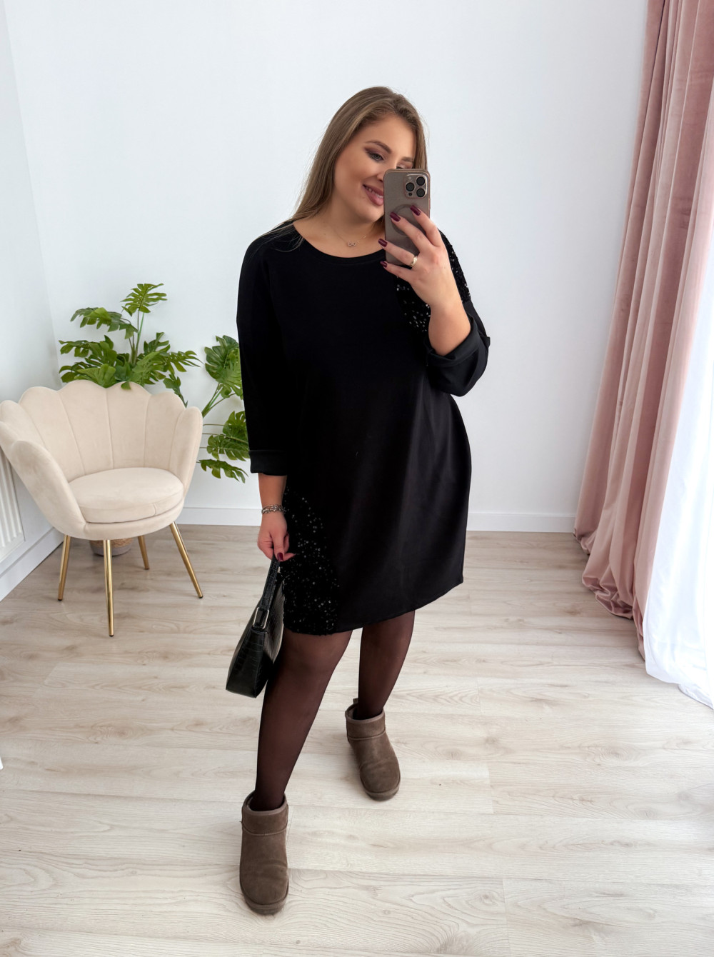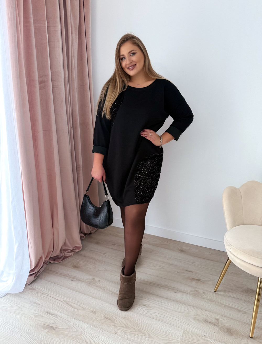 Sukienka ze wstawkami cekinowymi Chill Babe - czarna