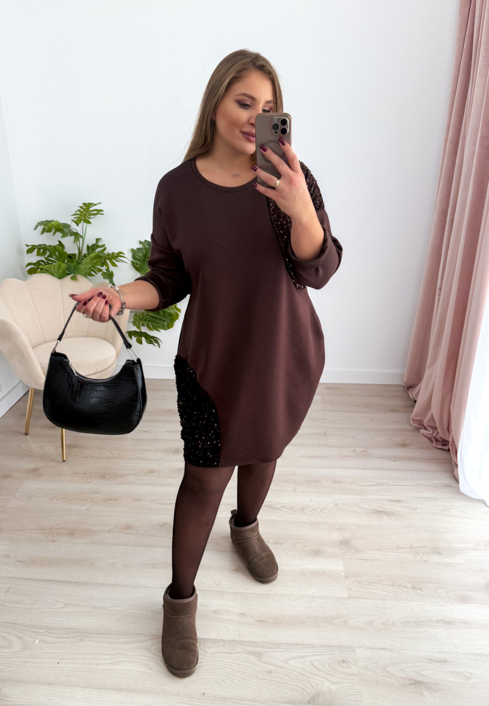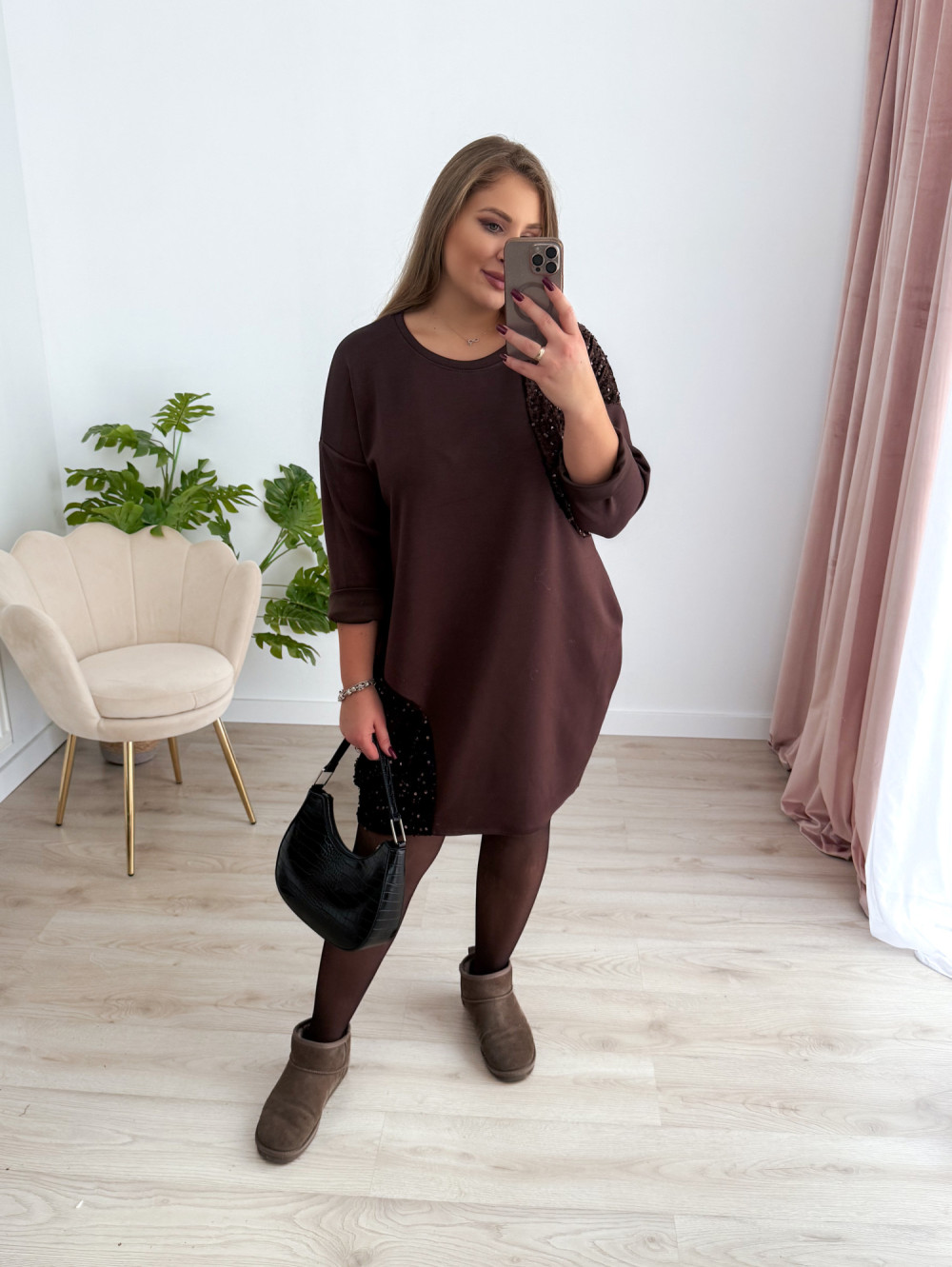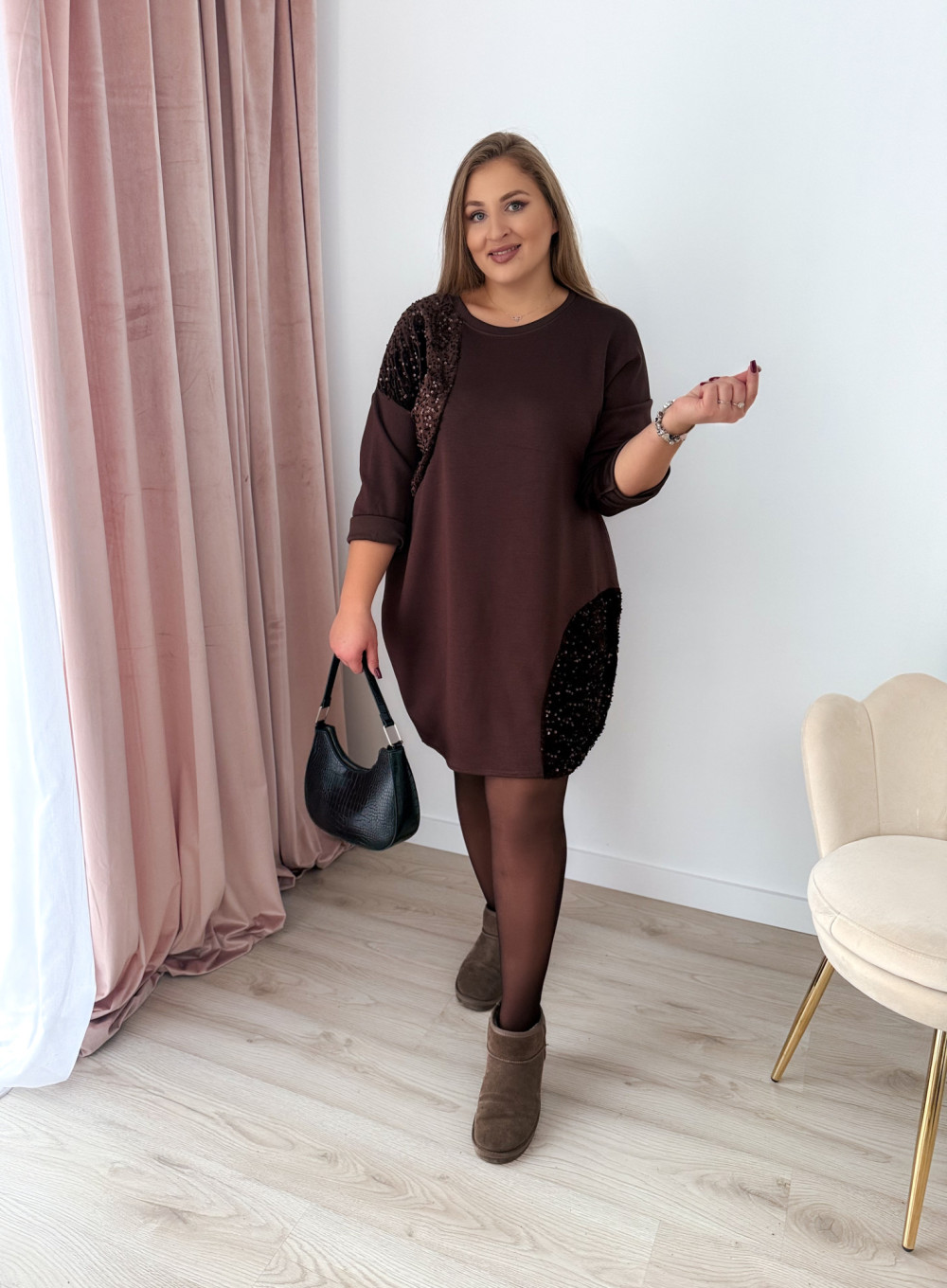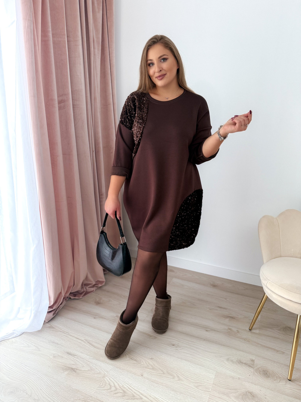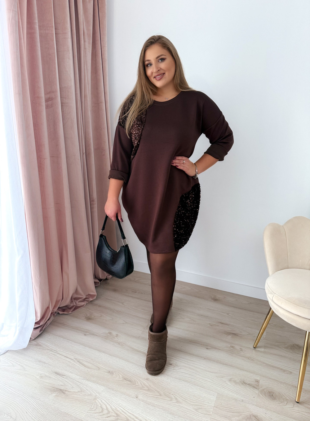 Sukienka ze wstawkami cekinowymi Chill Babe - czekolada