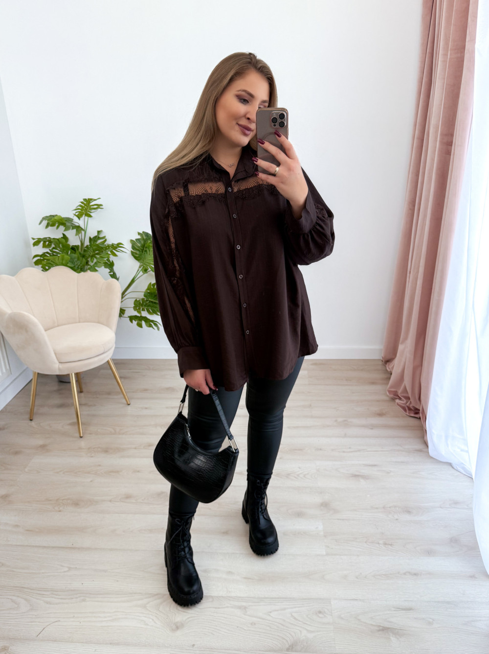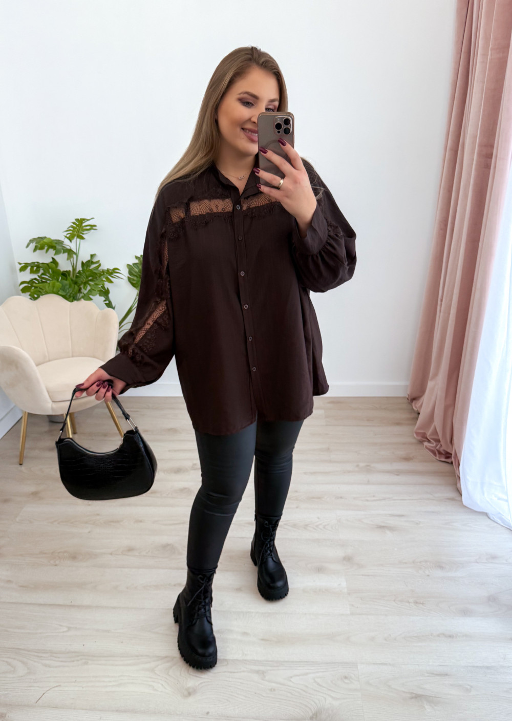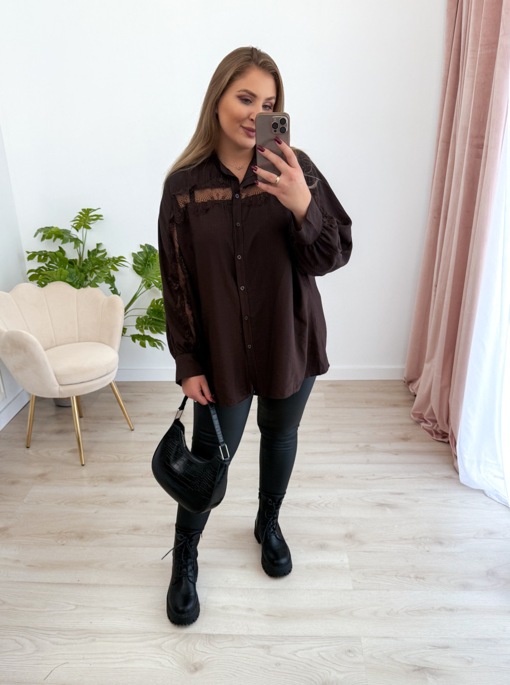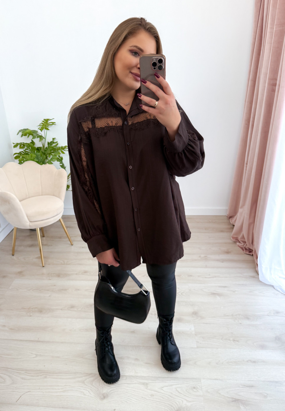 PREORDER Koszula oversize z koronką Lace Dream - czekolada (dostawa 29.10.)
