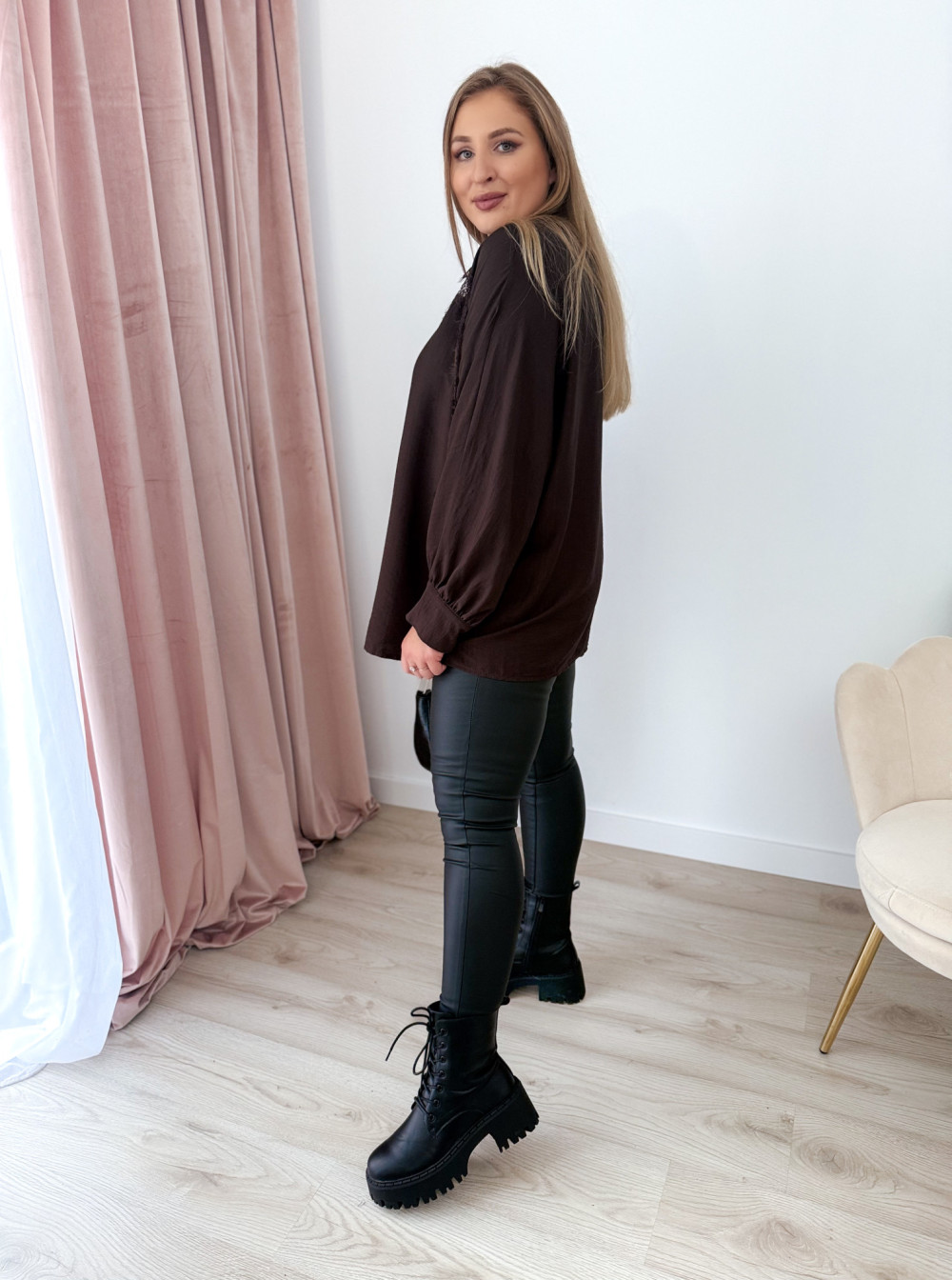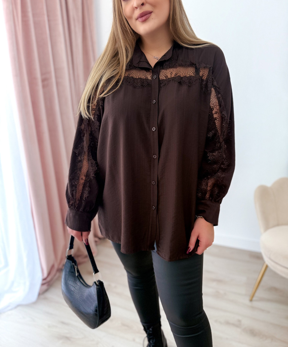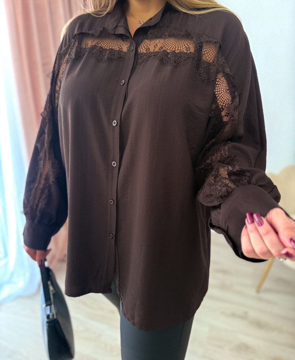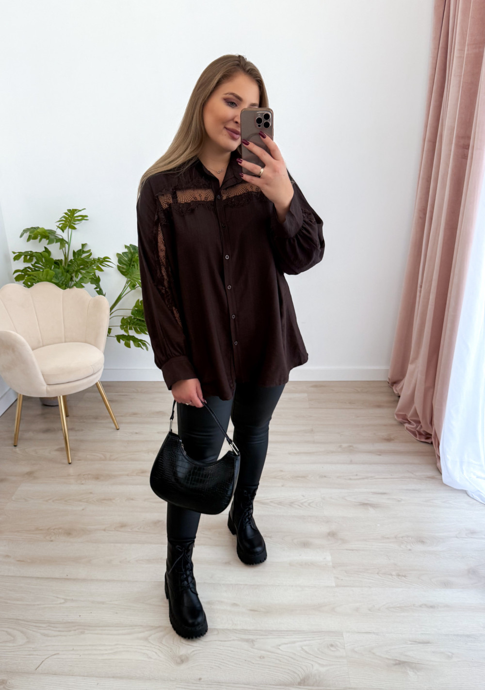 PREORDER Koszula oversize z koronką Lace Dream - czekolada (dostawa 29.10.)